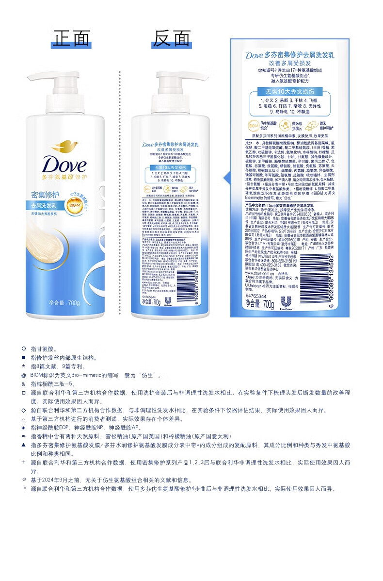 多芬密集修护氨基酸洗发乳700g【临期清仓】