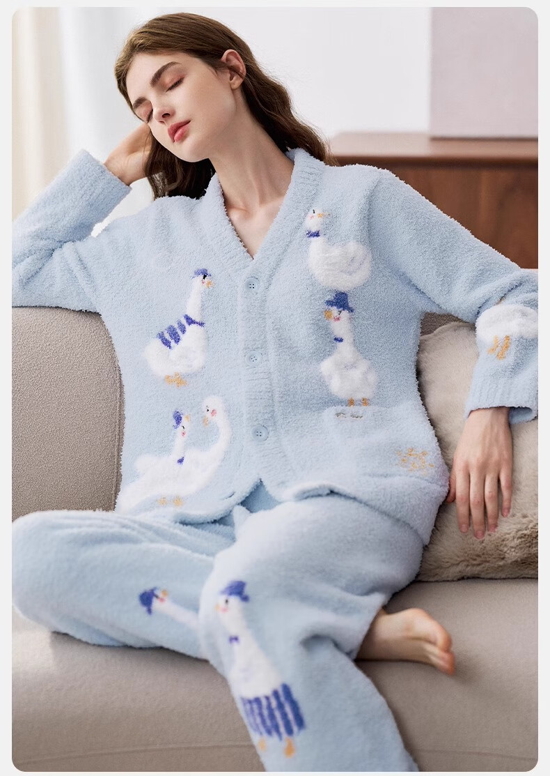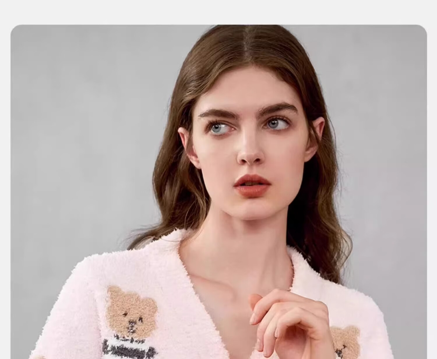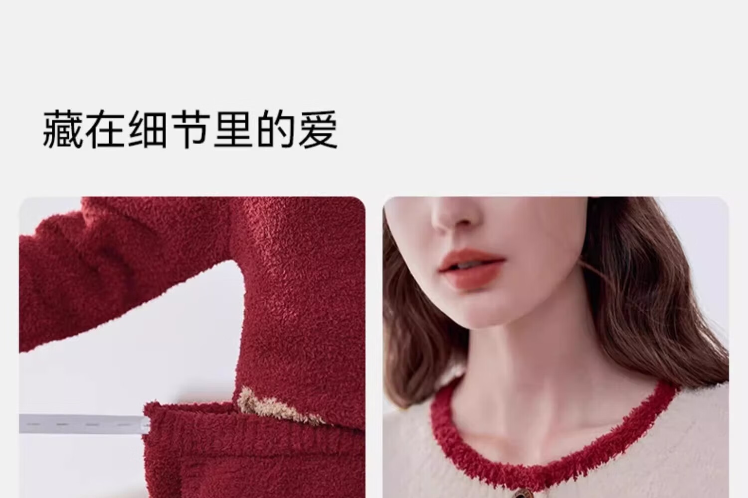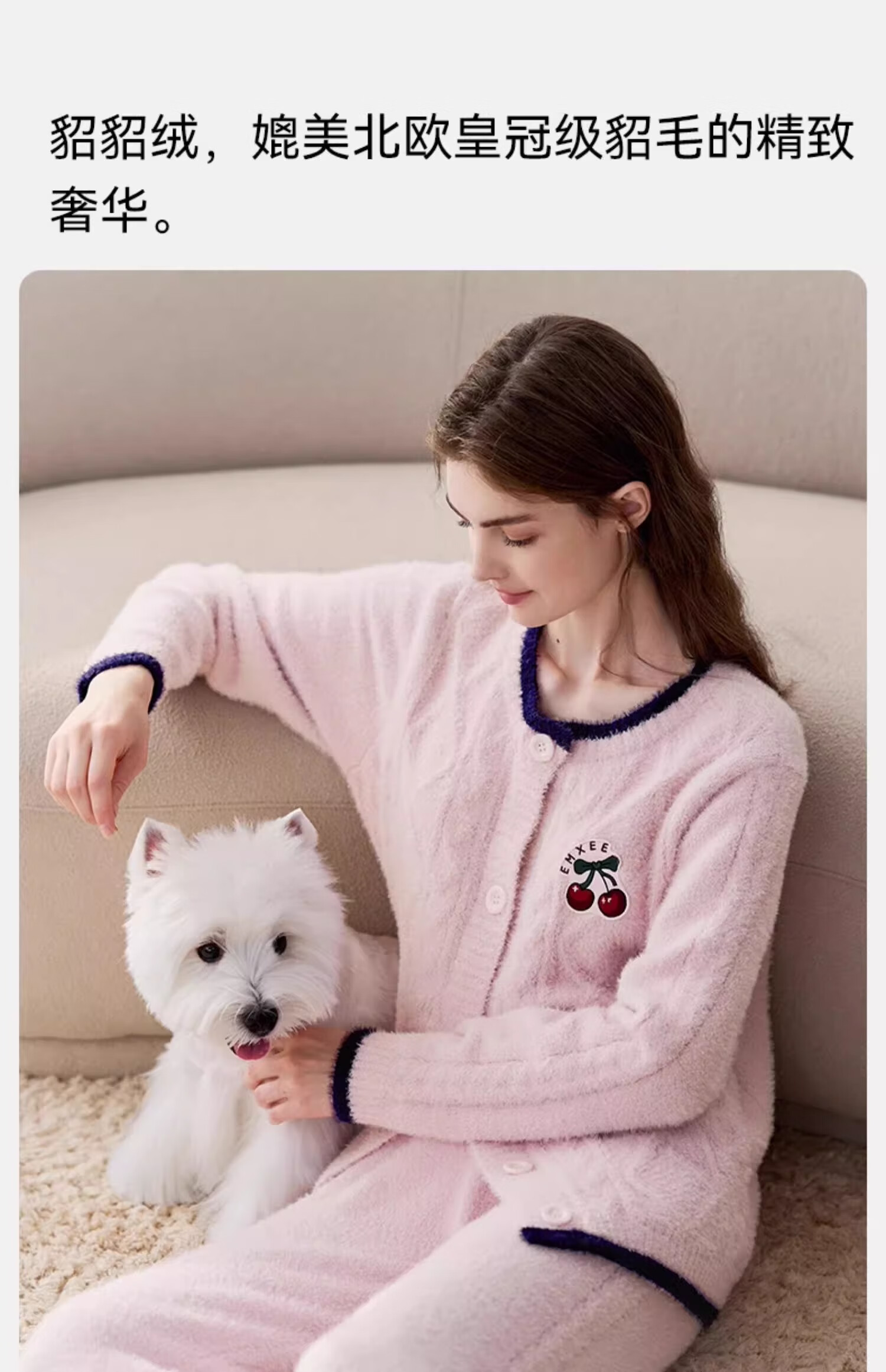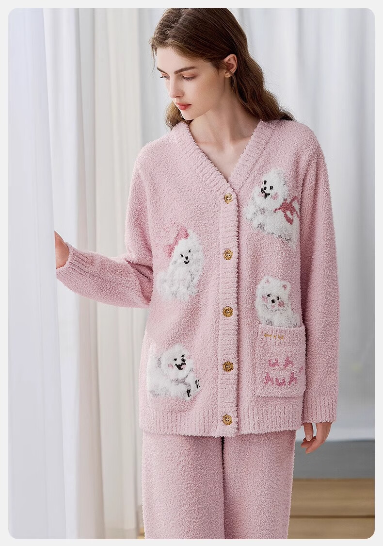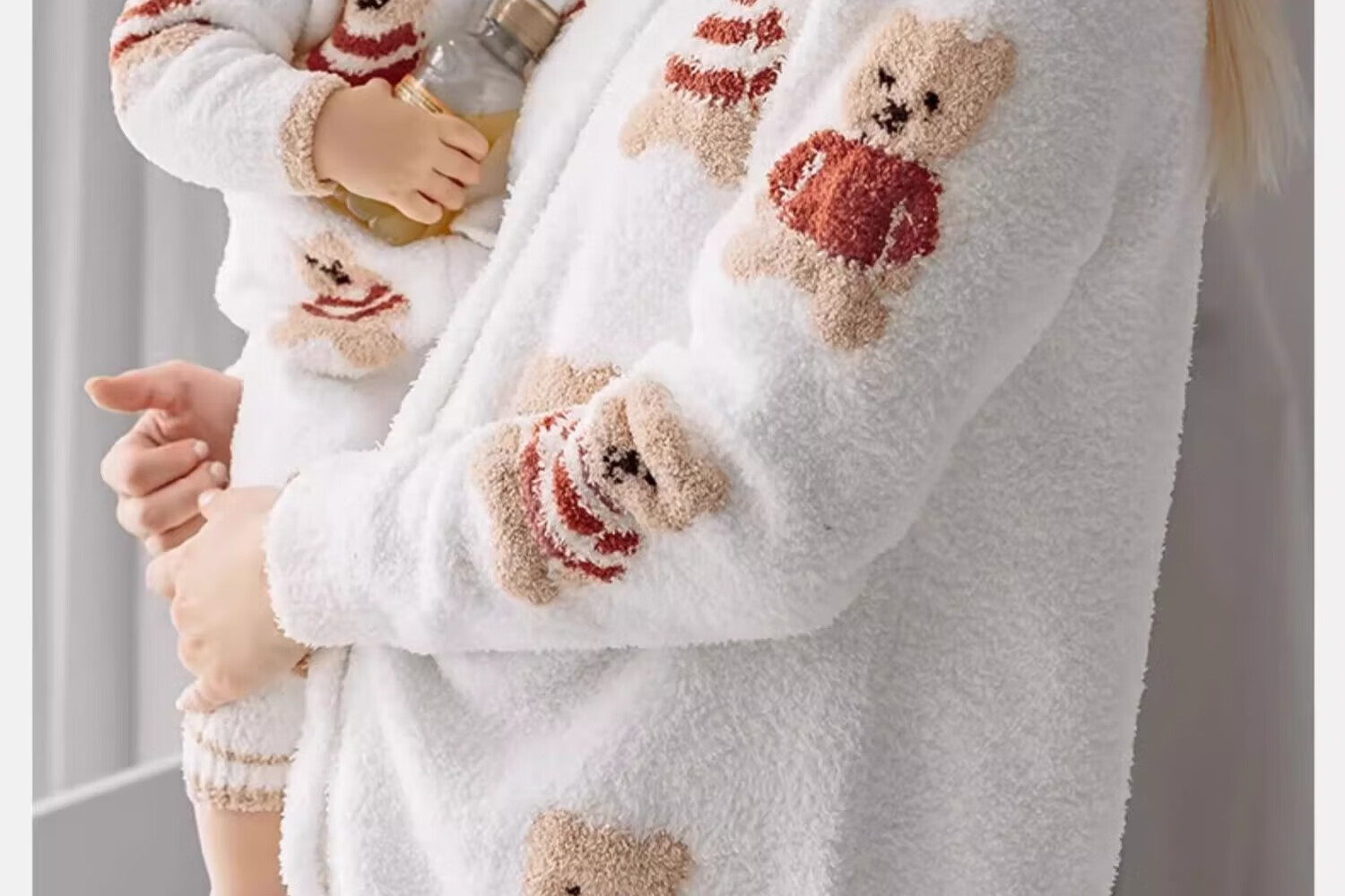 嫚熙(EMXEE)秋冬季小熊半边绒孕妇睡衣哺乳产妇加绒月子服产后家居服套装 经典熊-粉色【小羊绒】 XL
