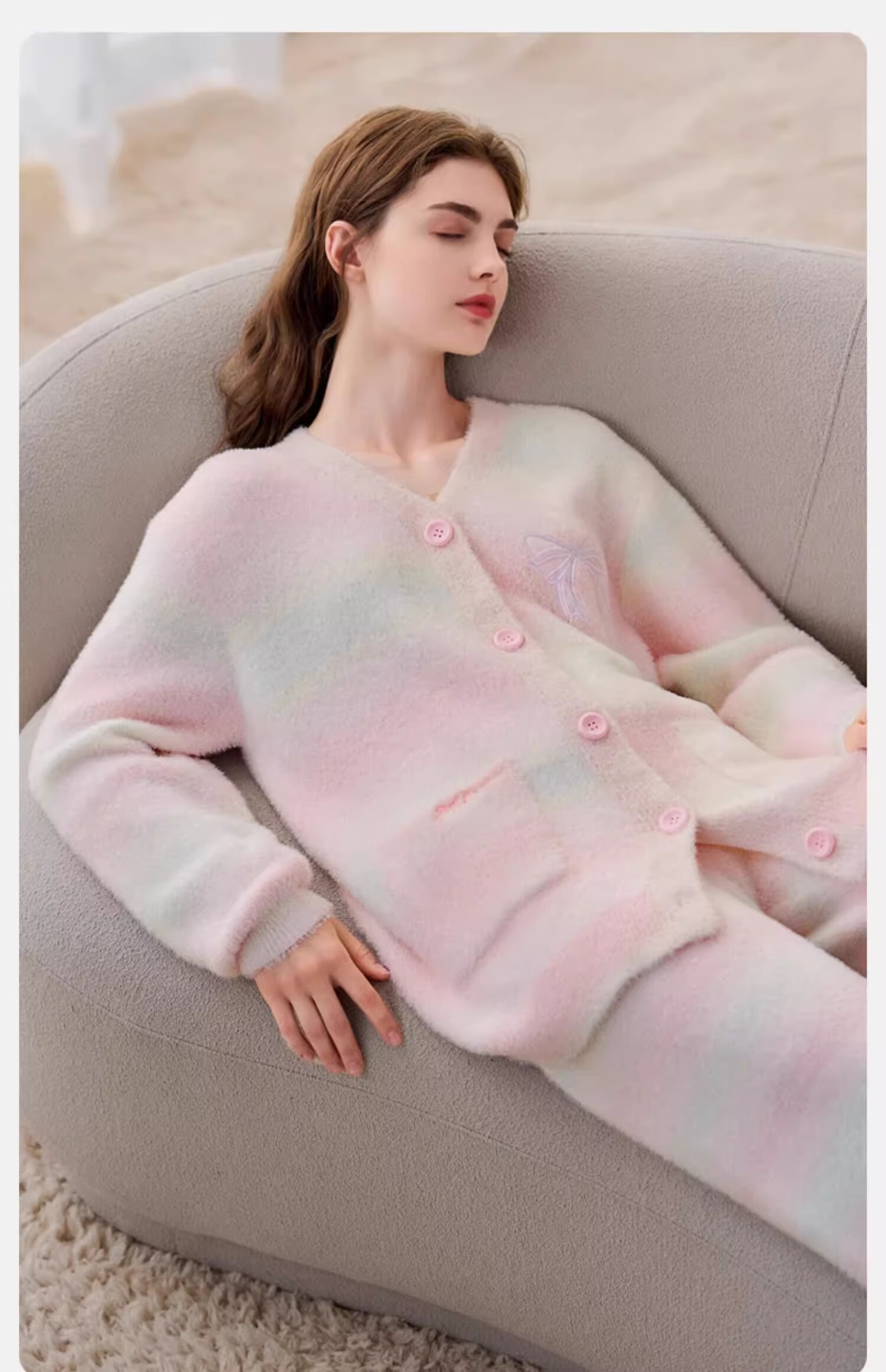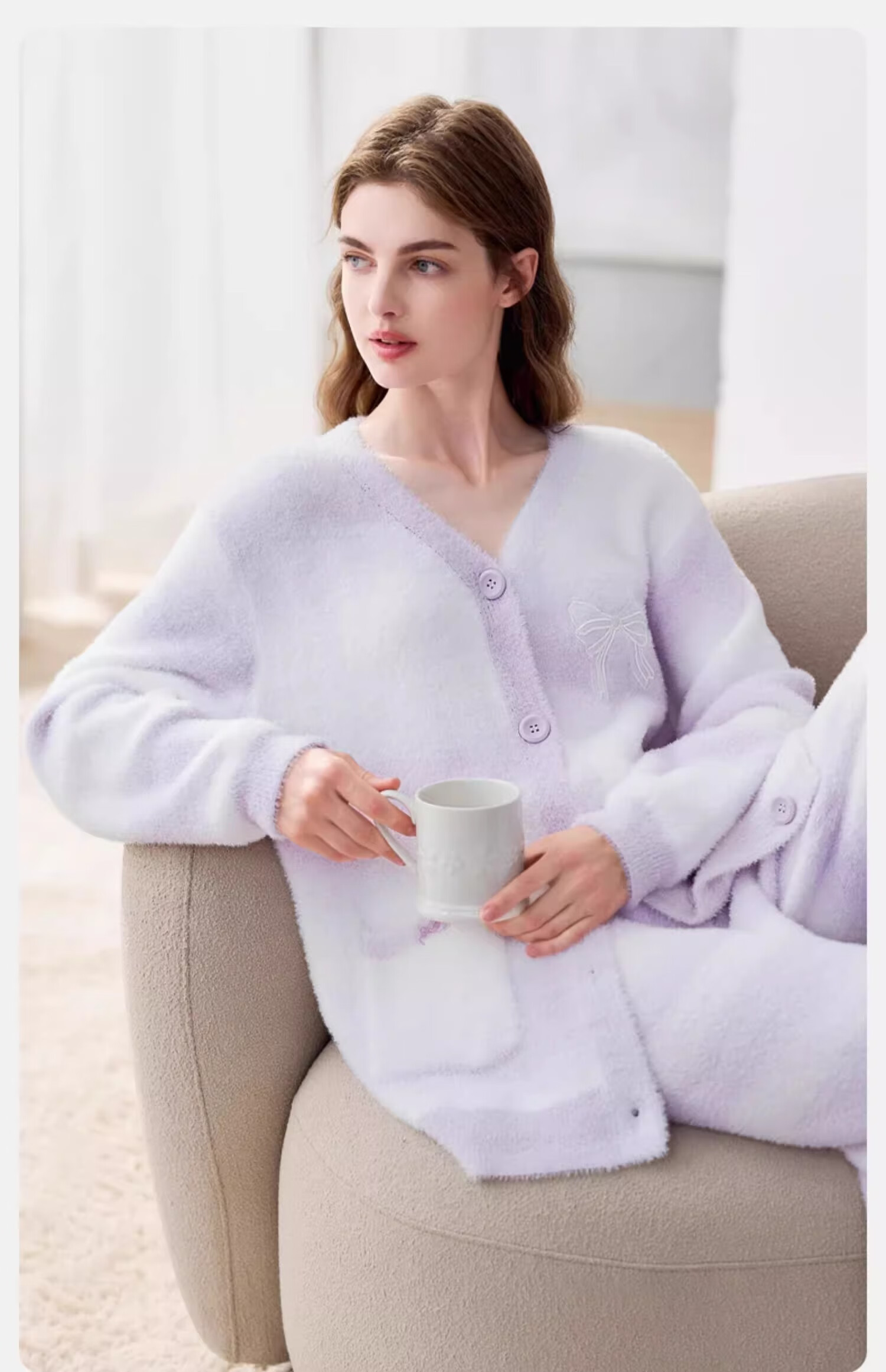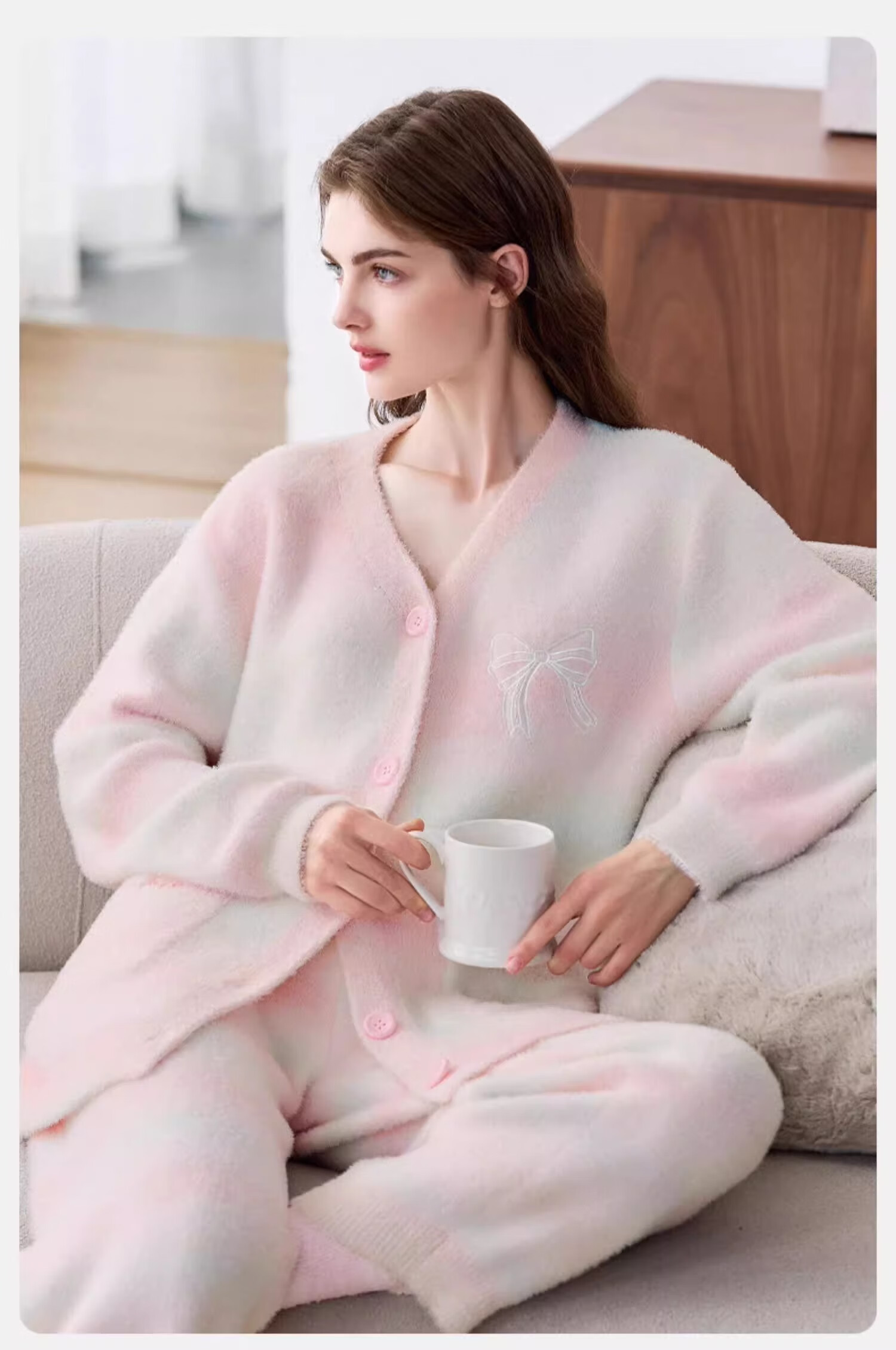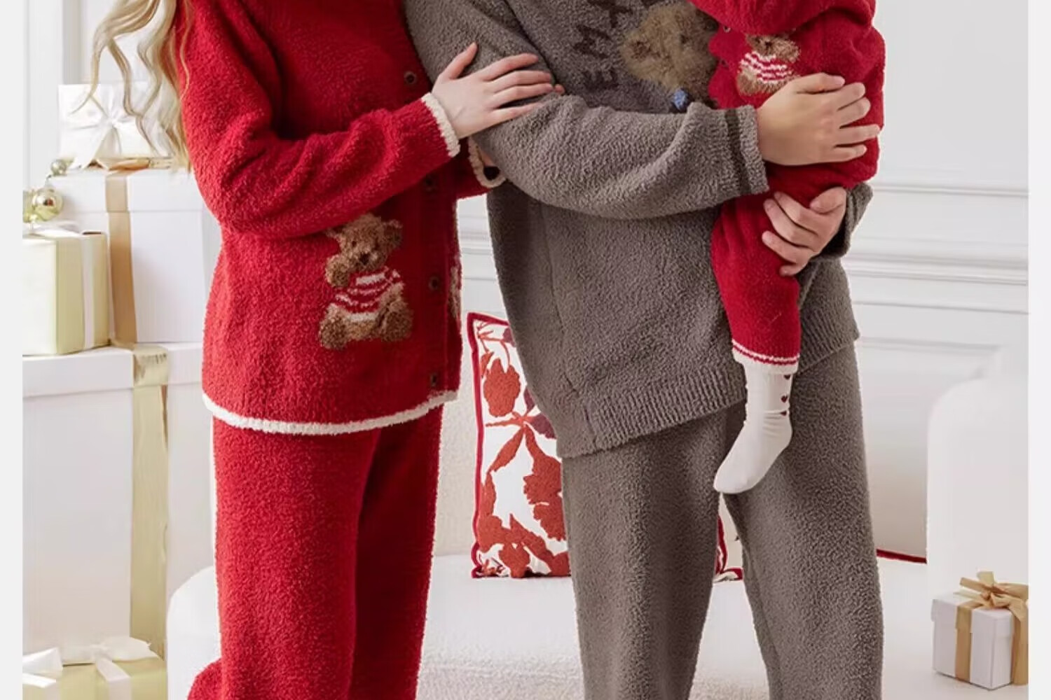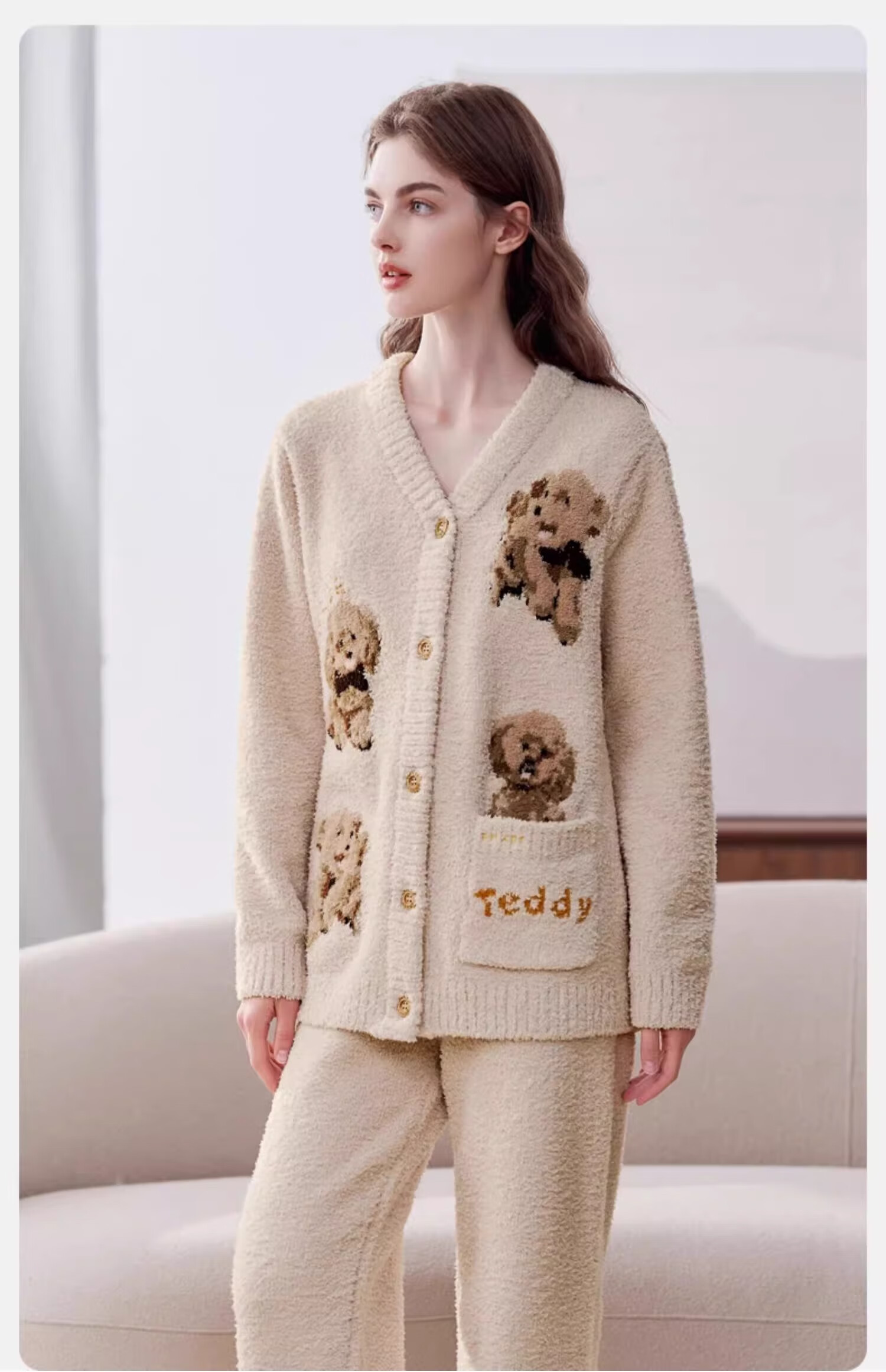 嫚熙(EMXEE)秋冬季小熊半边绒孕妇睡衣哺乳产妇加绒月子服产后家居服套装 经典熊-粉色【小羊绒】 XL