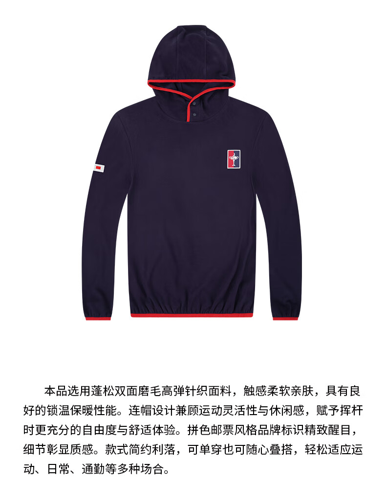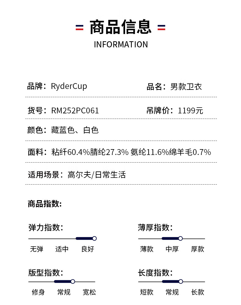 RYDER CUP莱德杯高尔夫服装男装卫衣25秋冬高弹针织御寒锁温连帽运动卫衣男 白色 XL