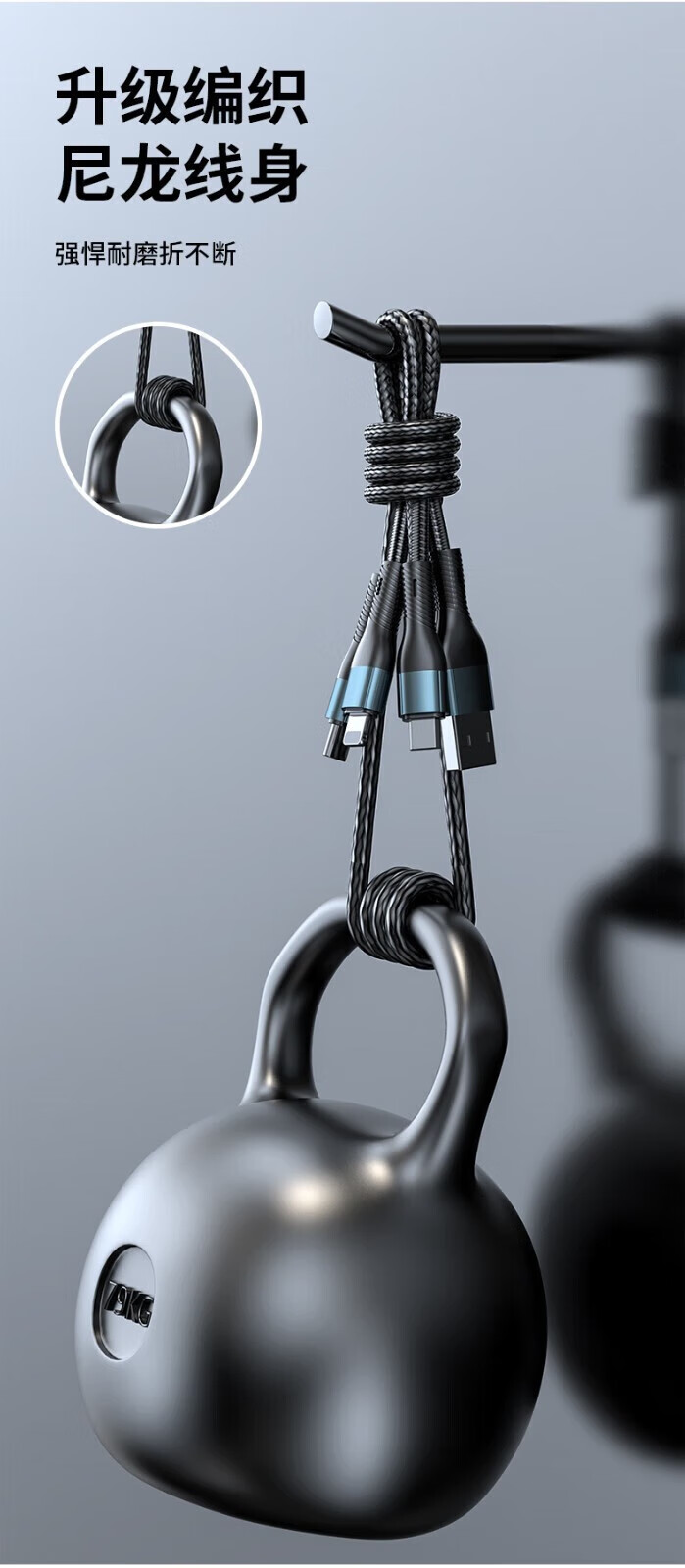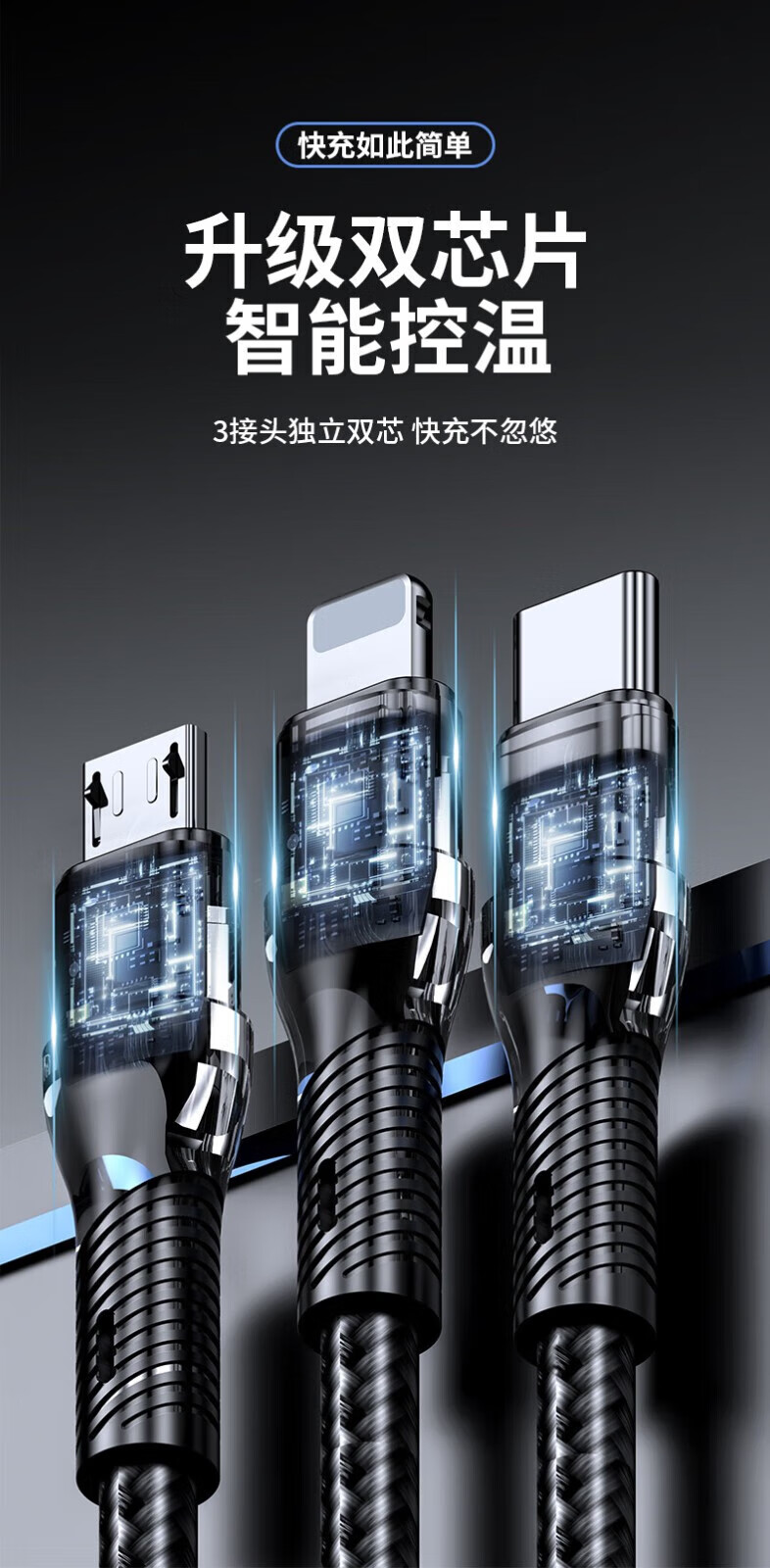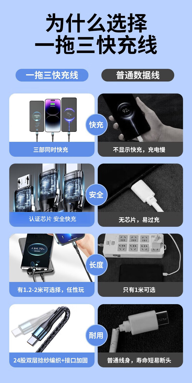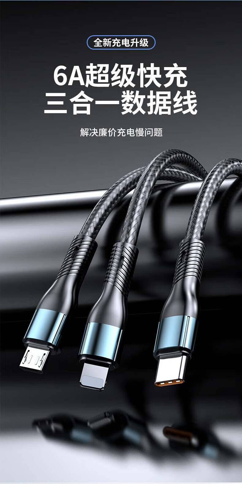 drop dot【66W超级快充丨线加粗80%】数据线三合一6A苹果安卓充电器线Type-C一拖三多合一华为小米手机车载 1.2米【编织线】黑色