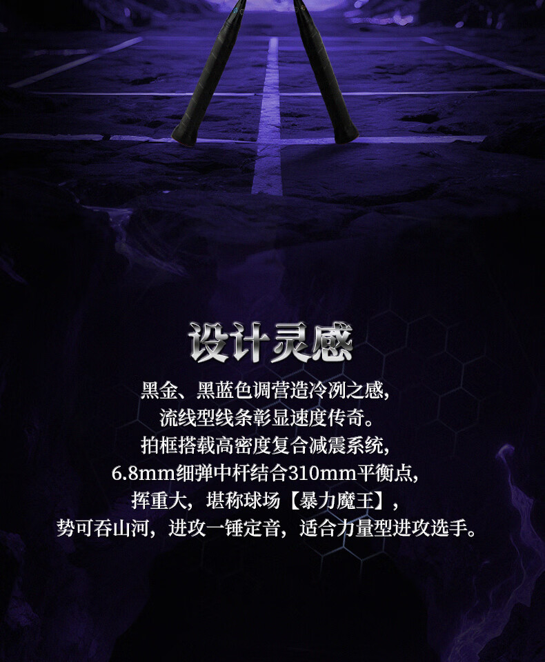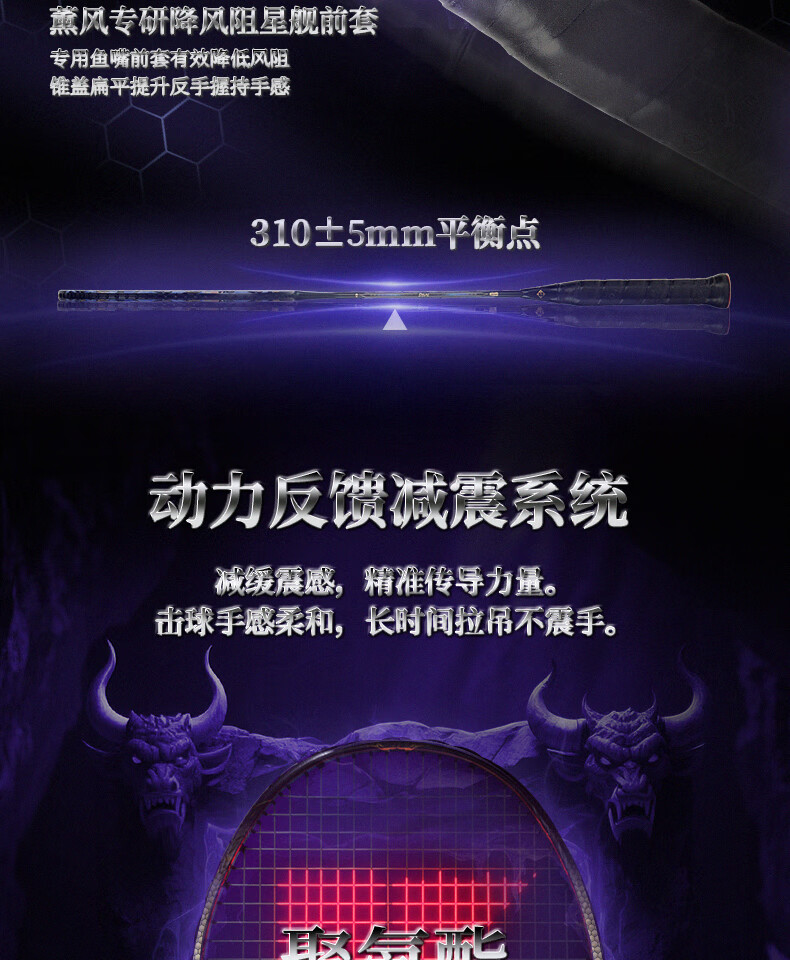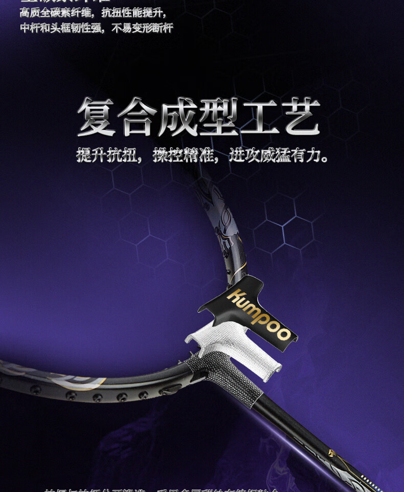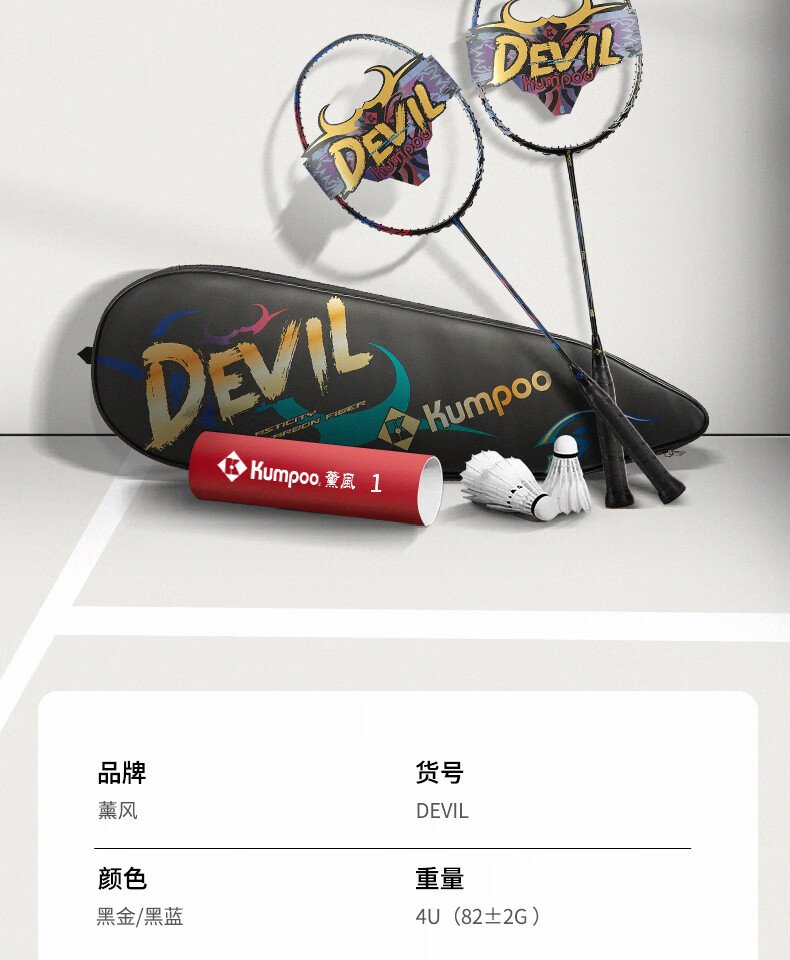 薰风(KUMPOO)魔王羽毛球拍全碳素超轻4U男女专业高磅耐打进攻型球拍熏风DEVIL 黑蓝色 成品拍