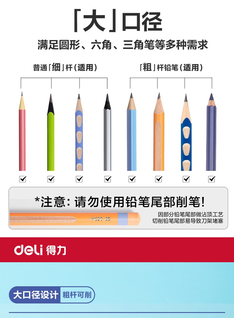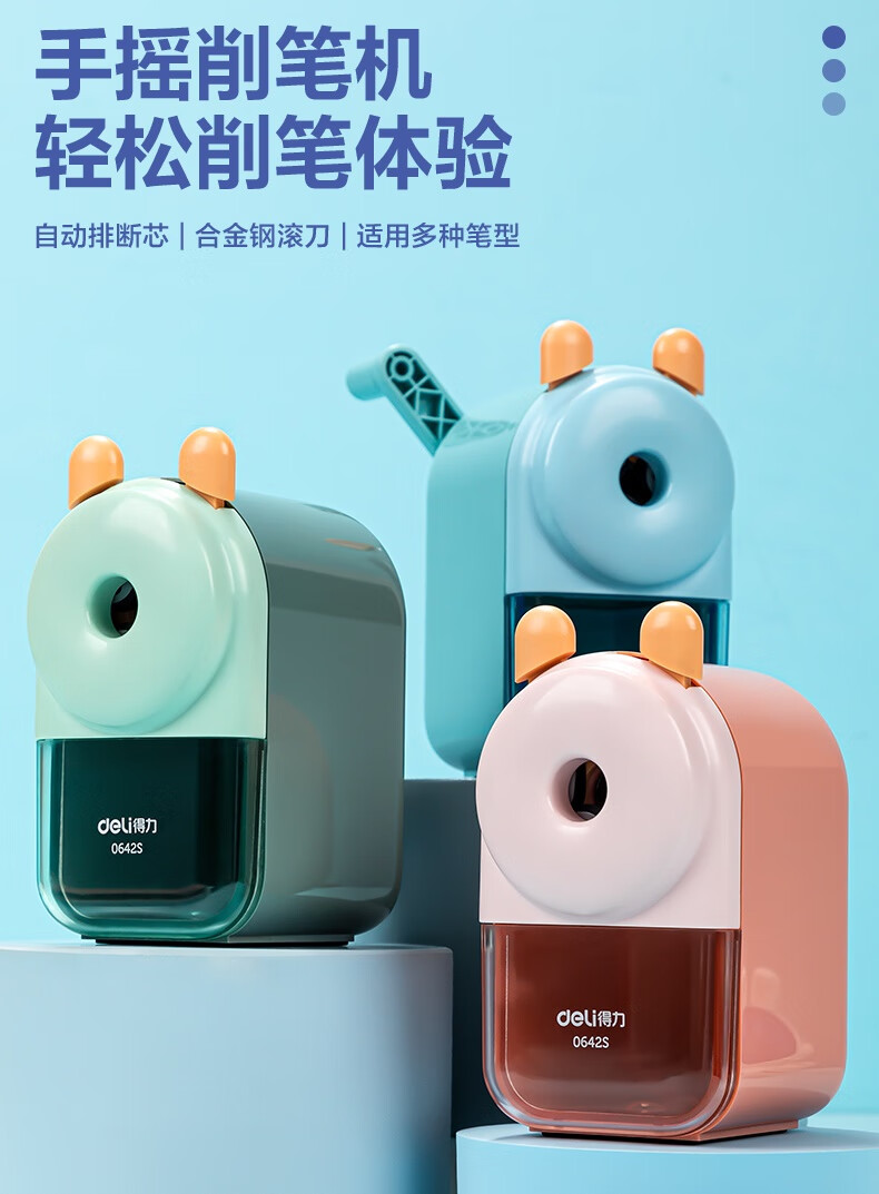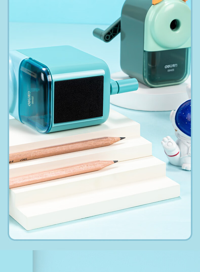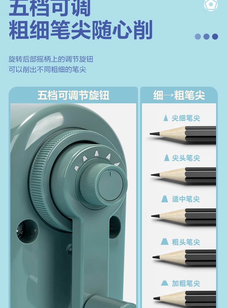 得力(deli)大口径手摇削笔机5档粗细调节粗笔杆卷笔刀12mm大三角铅笔转笔刀削笔刀文具开学考试生日礼物蓝