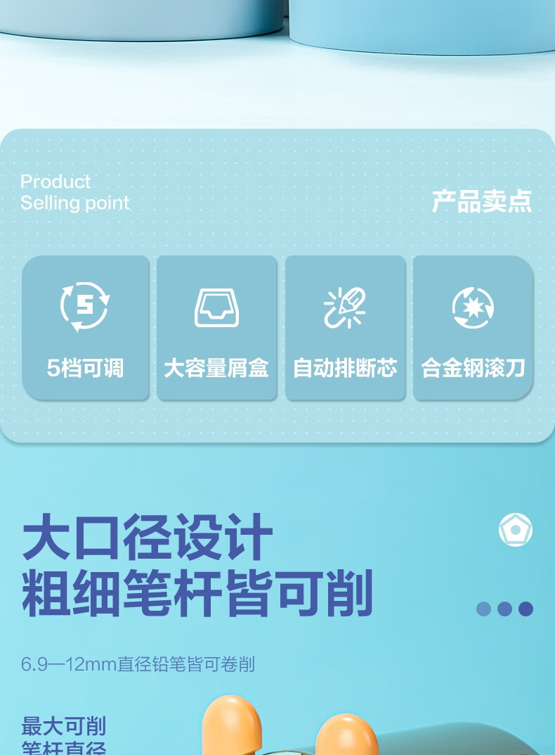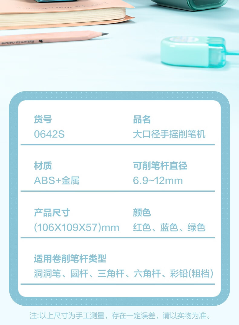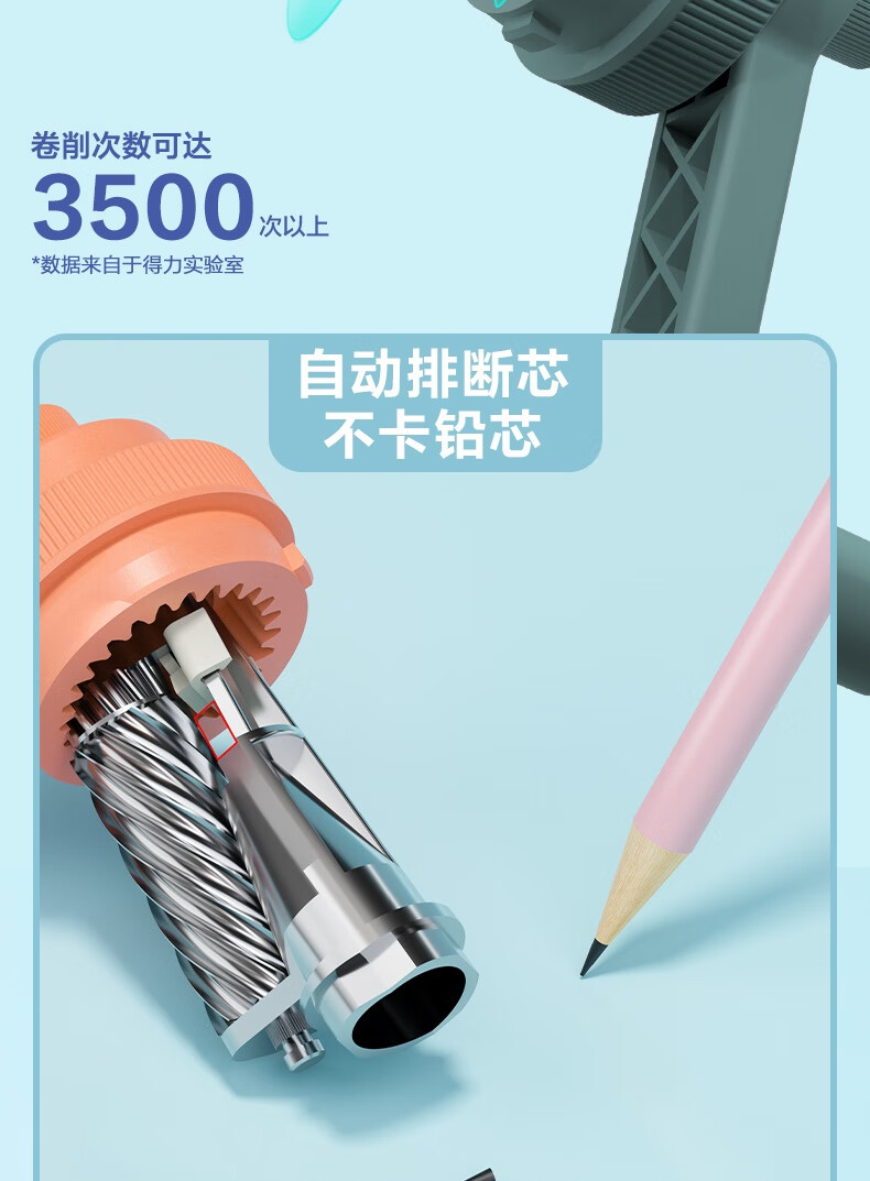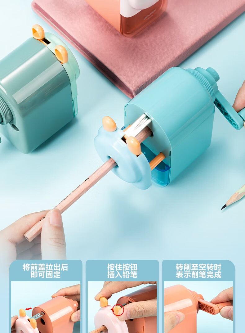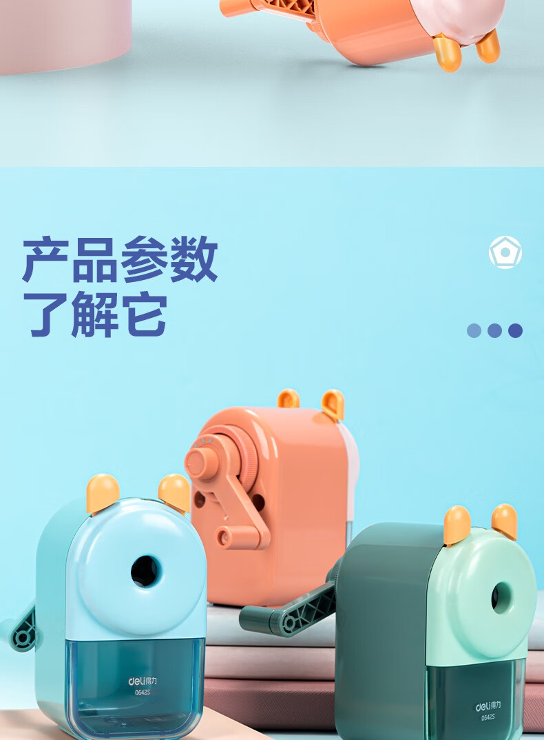 得力(deli)大口径手摇削笔机5档粗细调节粗笔杆卷笔刀12mm大三角铅笔转笔刀削笔刀文具开学考试生日礼物蓝