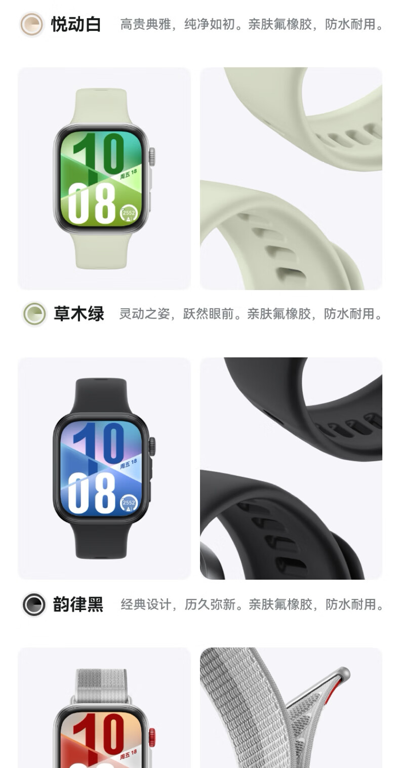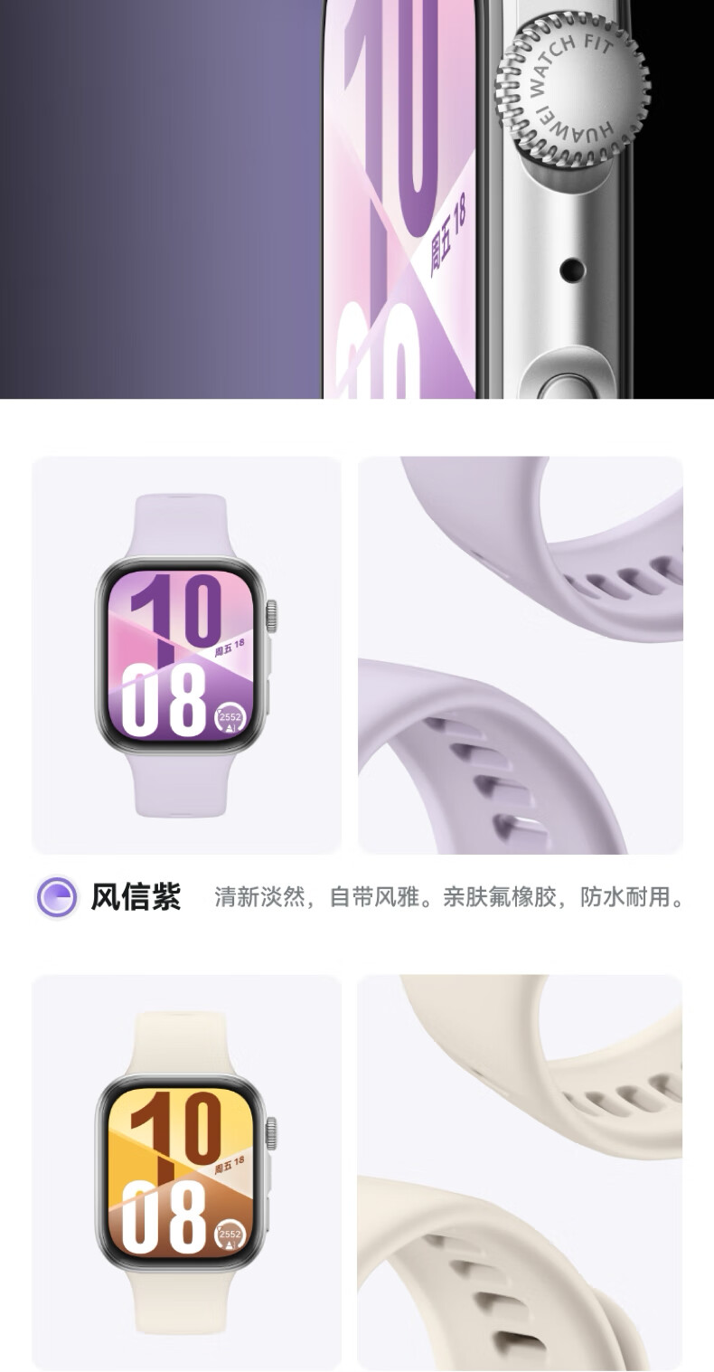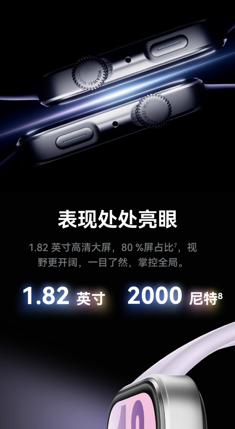 华为HUAWEI WATCH FIT 4 韵律黑氟橡胶表带 华为运动智能手表超轻薄大屏潮流运动蓝牙通话睡眠监测fit4