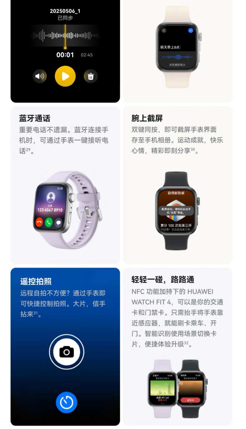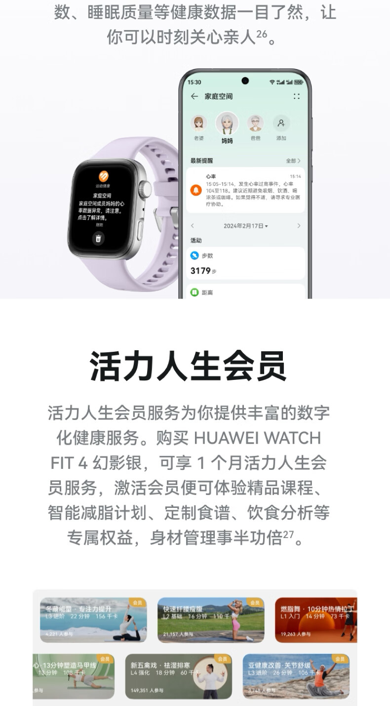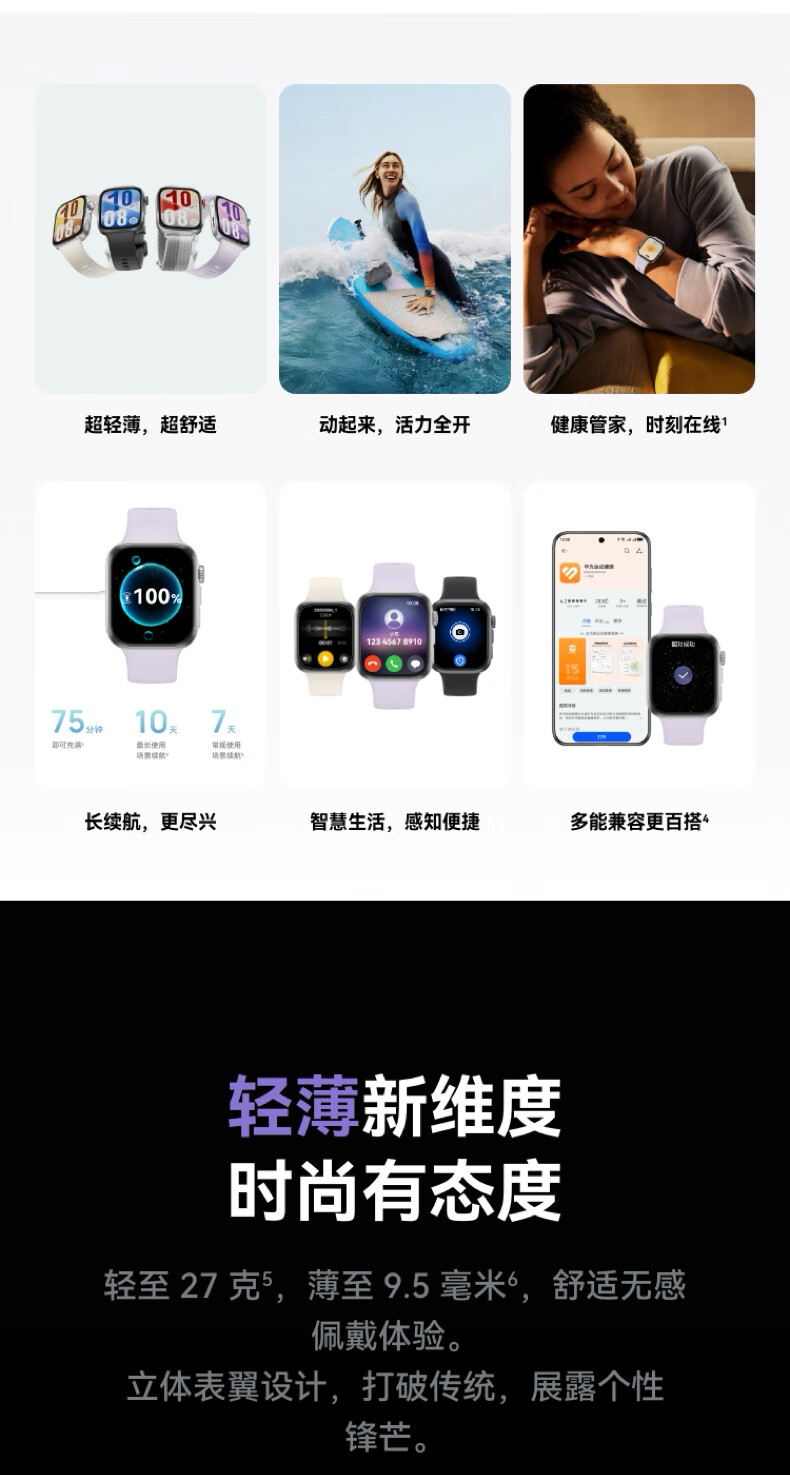 华为HUAWEI WATCH FIT 4 韵律黑氟橡胶表带 华为运动智能手表超轻薄大屏潮流运动蓝牙通话睡眠监测fit4