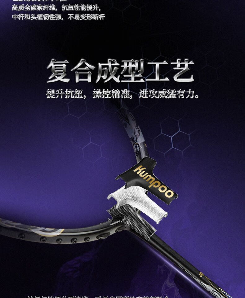 薰风(KUMPOO)魔王羽毛球拍全碳素超轻4U男女专业高磅耐打进攻型球拍熏风DEVIL 黑蓝色 成品拍