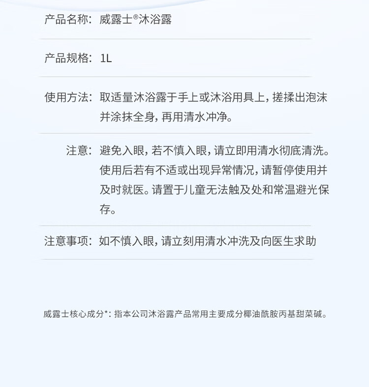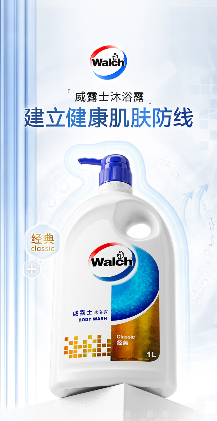 威露士(Walch)经典款沐浴露1L大瓶家庭装 保湿沐浴乳液洗澡清洁 男女士通用洗护