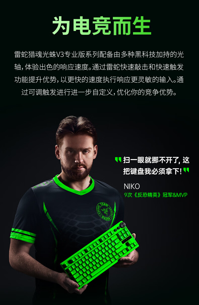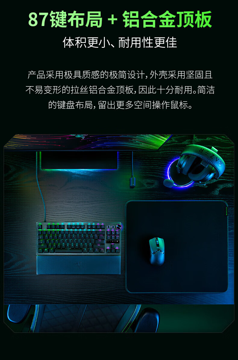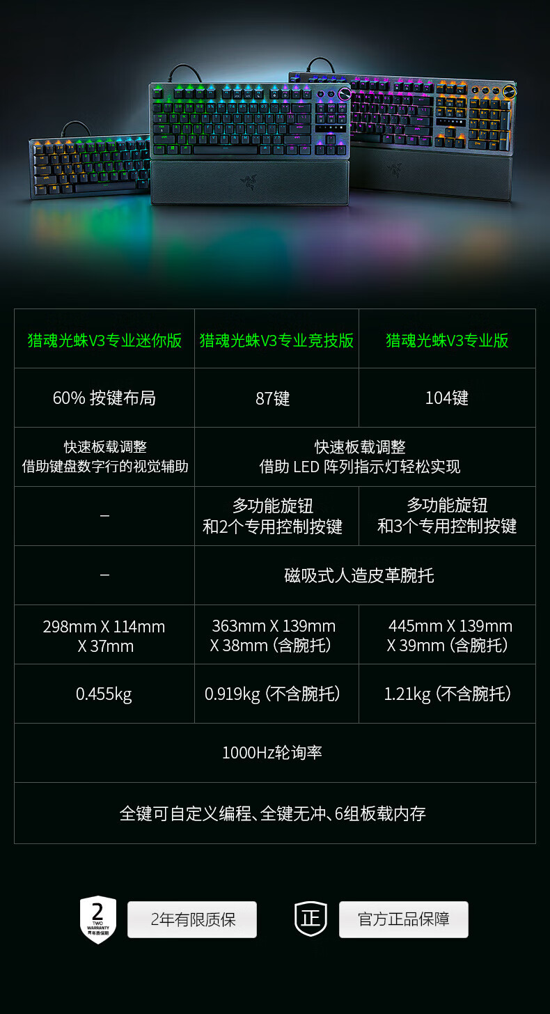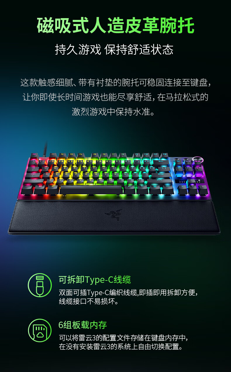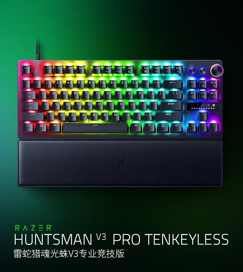 雷蛇(Razer)猎魂光蛛V3专业竞技版 模拟光轴 机械键盘 有线键盘 电竞游戏键盘 87键 RGB幻彩 黑色