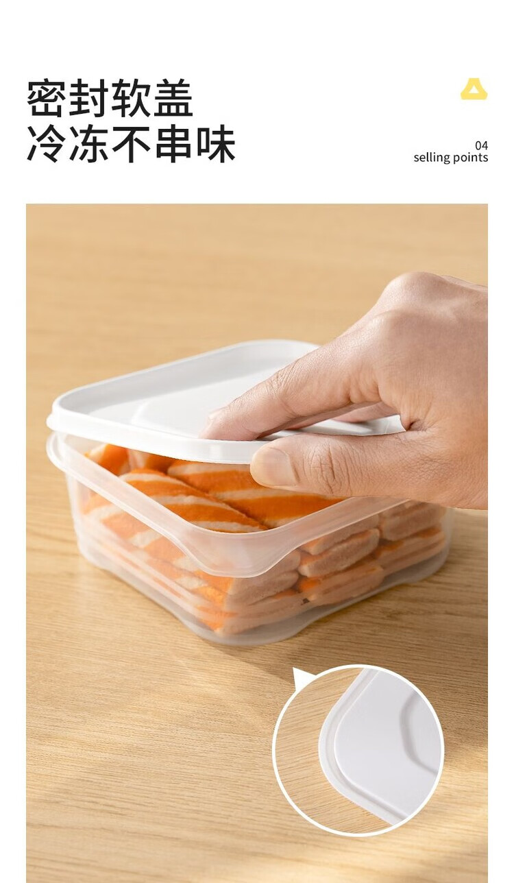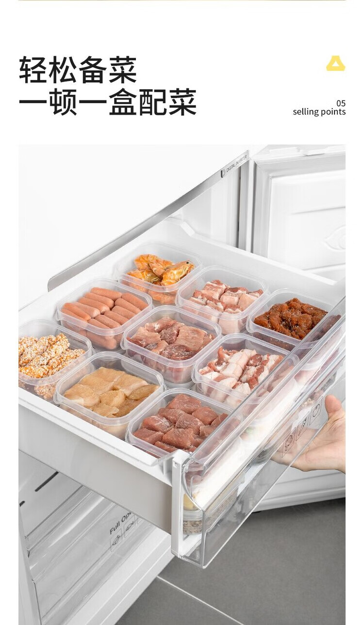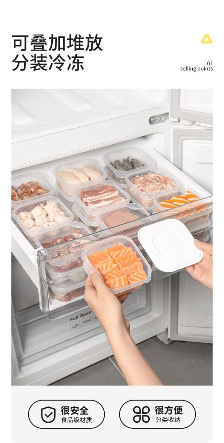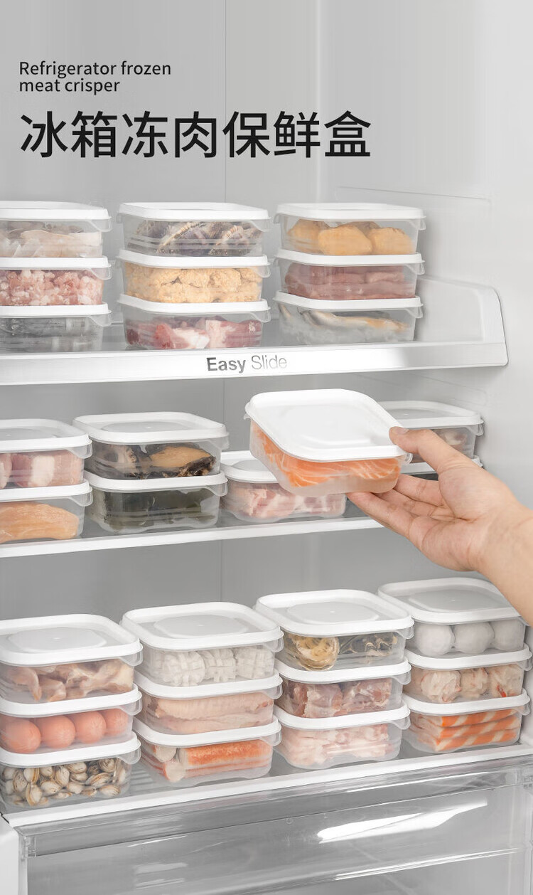 泰禧阁冰箱冻肉分格盒子冷冻收纳盒食品级专用小号保鲜盒冰箱收纳分装盒 白盖【2001ml】装肉约2200克 食品级材质/可微波/可速冻【1个装】