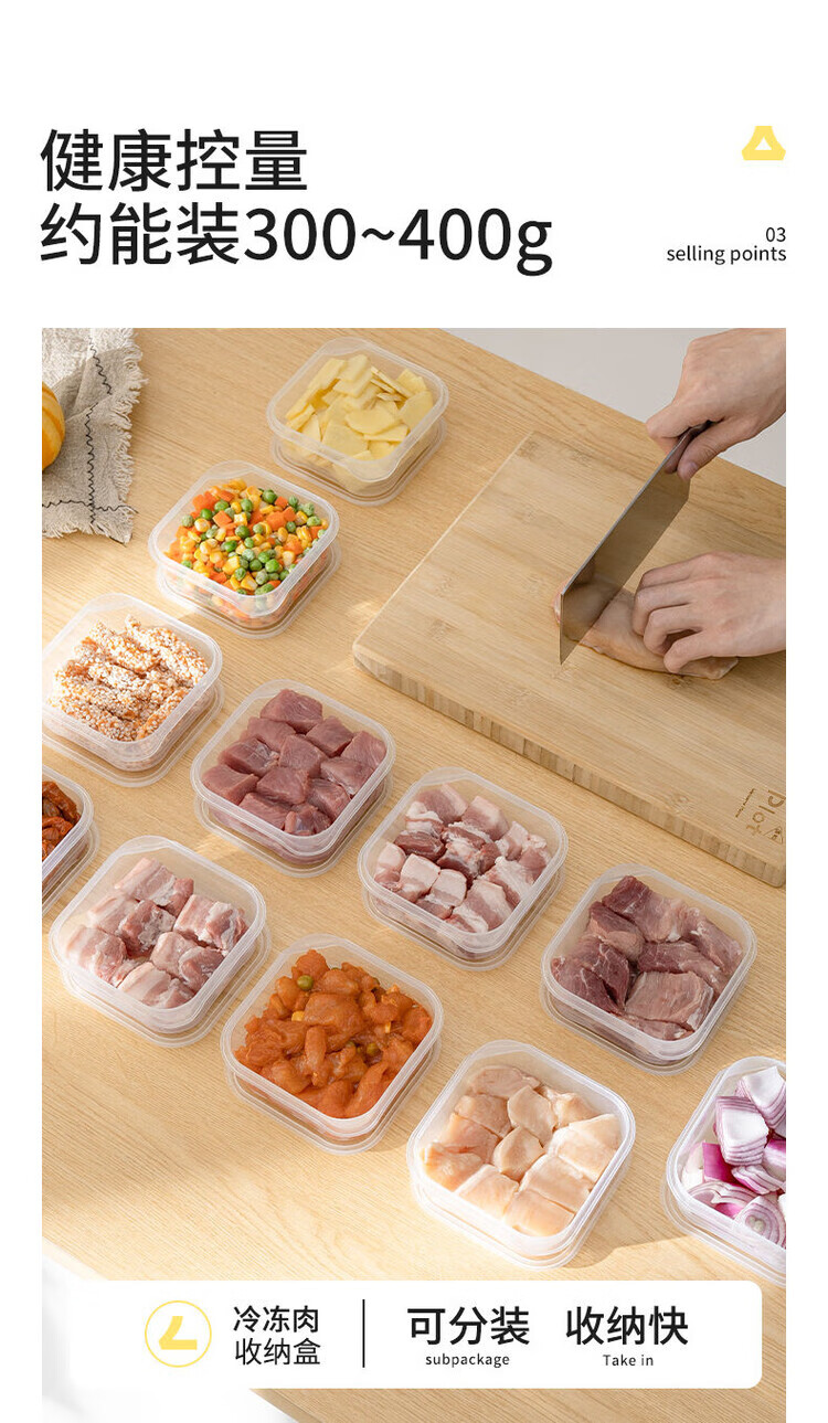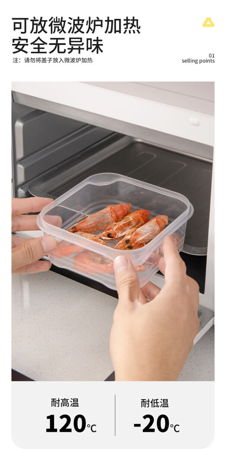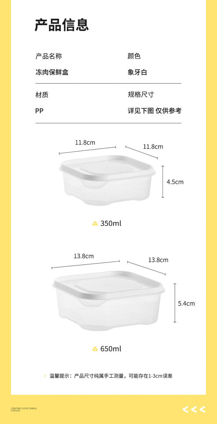 泰禧阁冰箱冻肉分格盒子冷冻收纳盒食品级专用小号保鲜盒冰箱收纳分装盒 白盖【2001ml】装肉约2200克 食品级材质/可微波/可速冻【1个装】