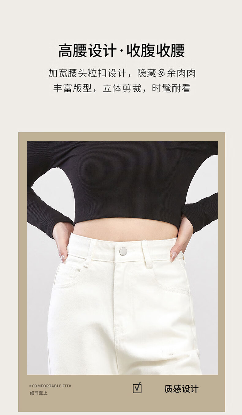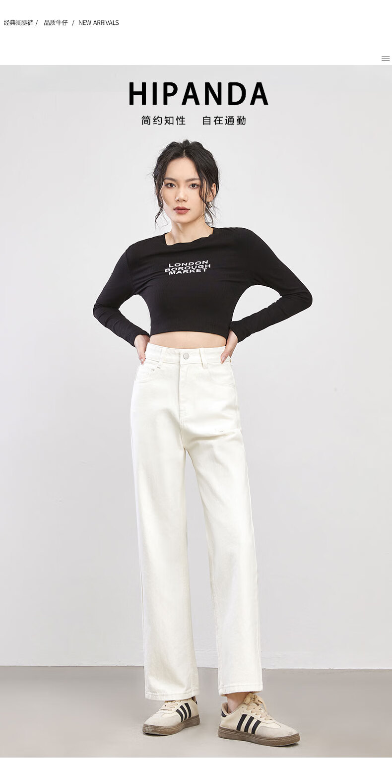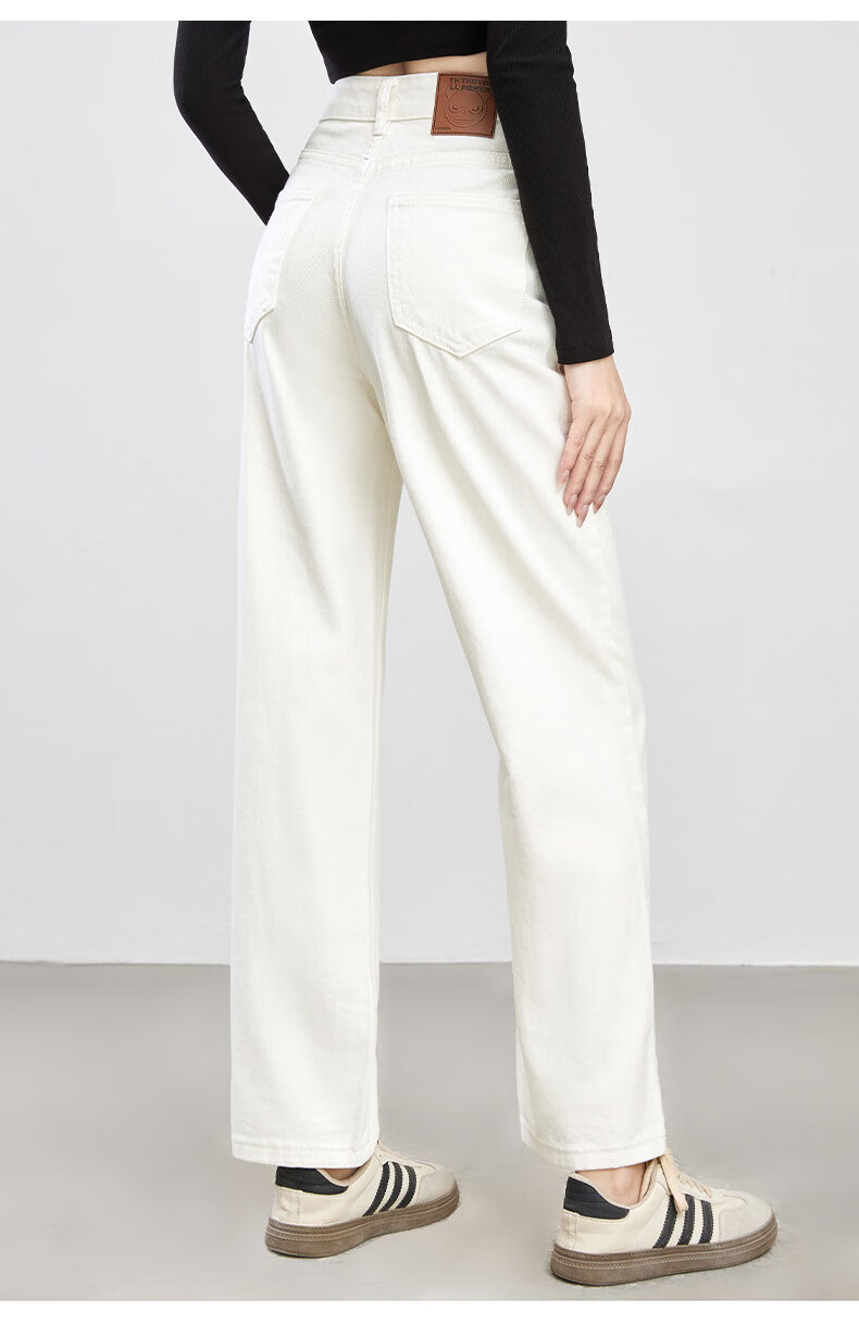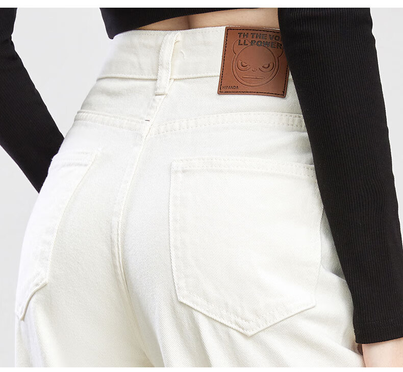 HIPANDA你好熊猫2025年秋冬新款白色高腰直筒牛仔裤女款宽松舒适休闲长裤 白色 XL