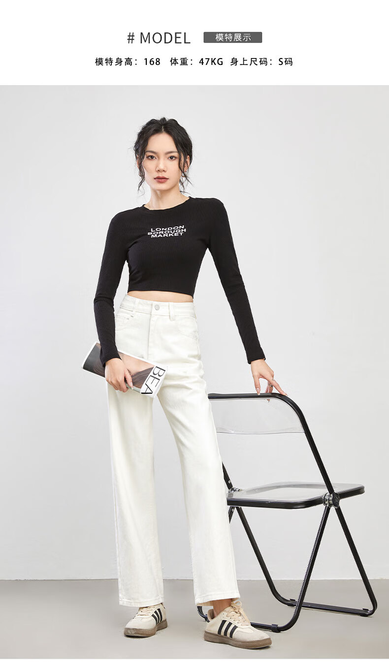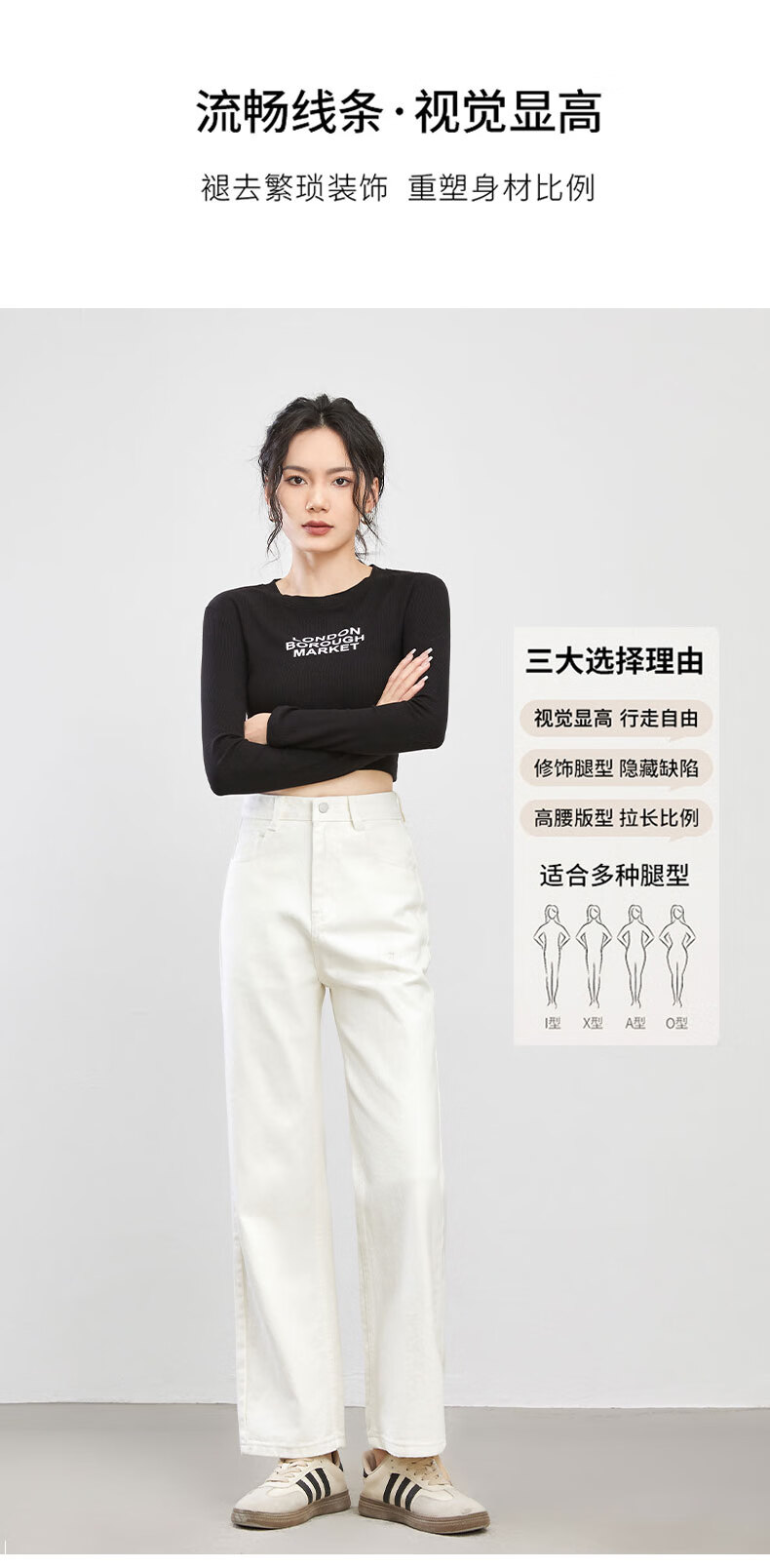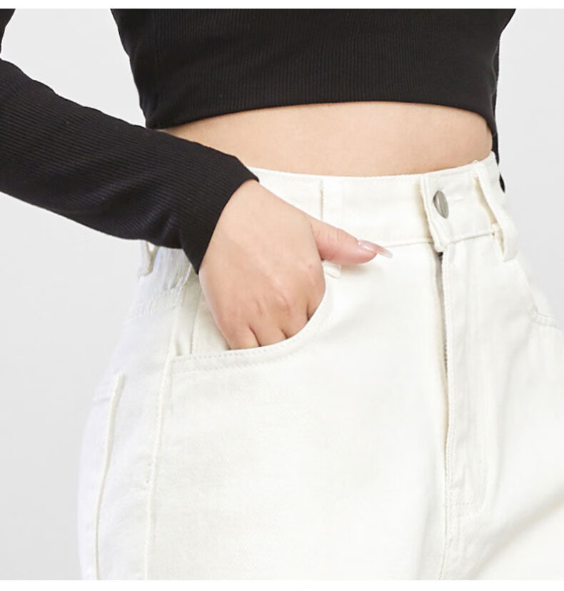 HIPANDA你好熊猫2025年秋冬新款白色高腰直筒牛仔裤女款宽松舒适休闲长裤 白色 XL