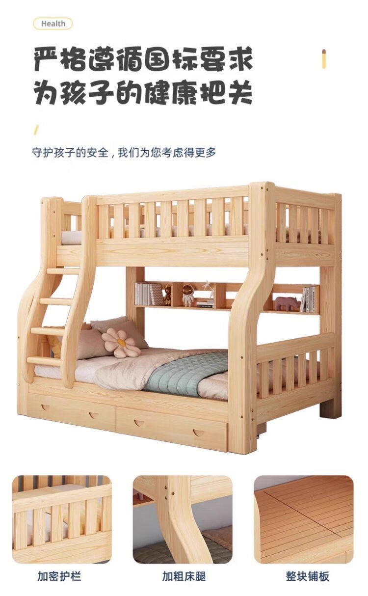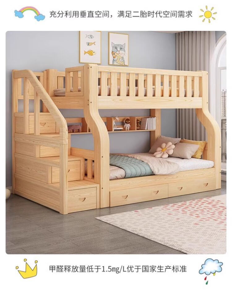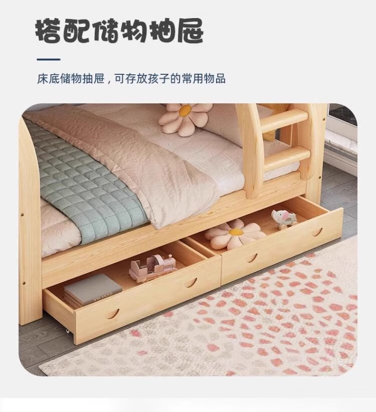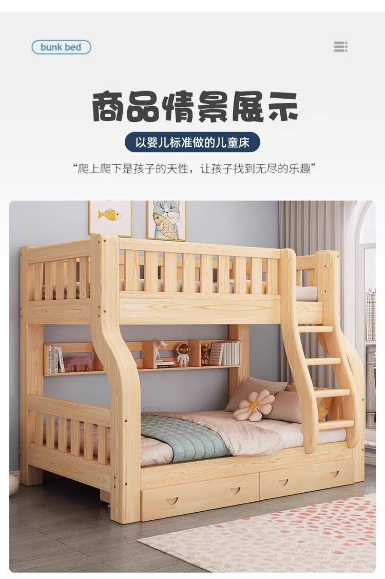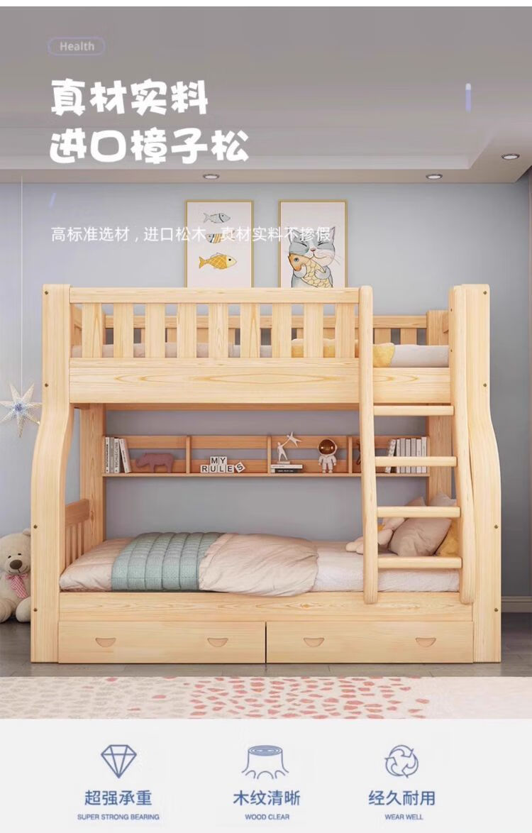 倘然之家上下床双层床多功能双层实木高低儿童床上小户型大人两层子母木床 实木爬梯(裸床)+入户 【加厚加密】上铺80+下铺100cm