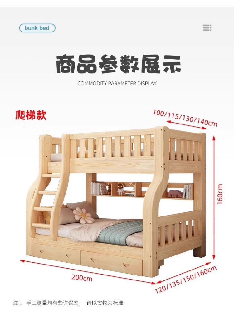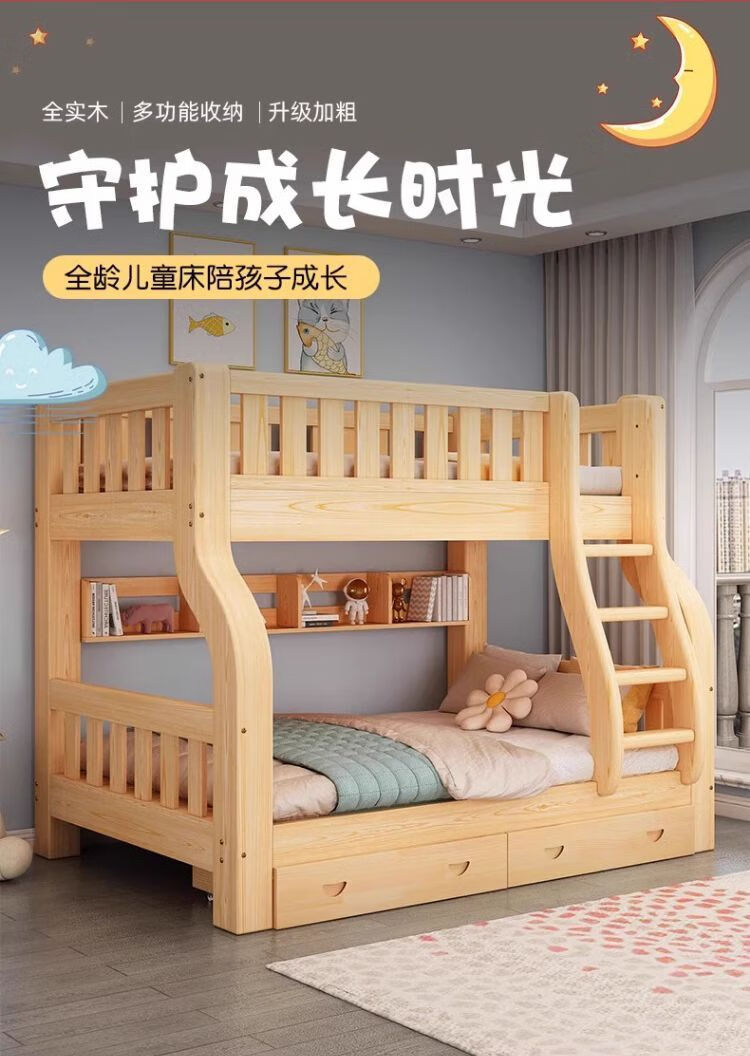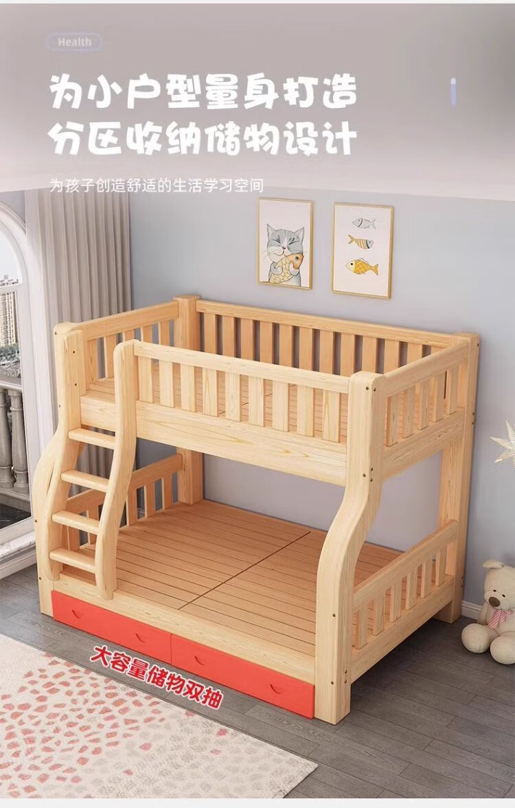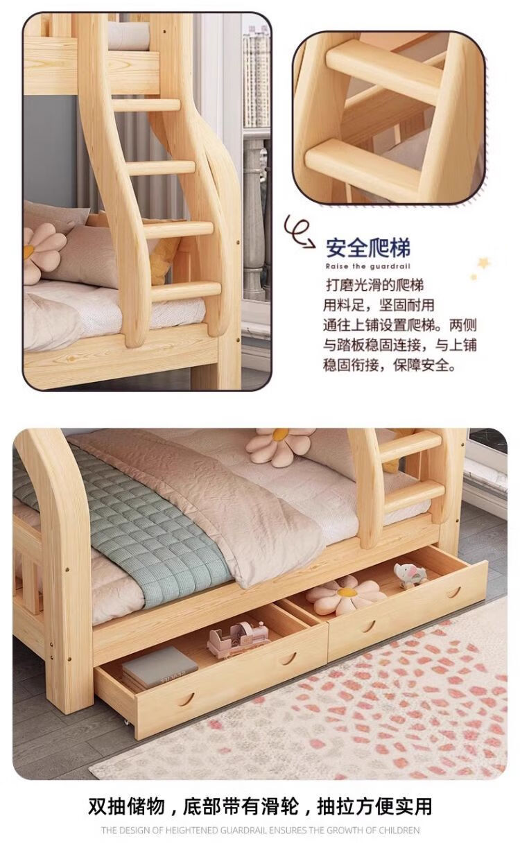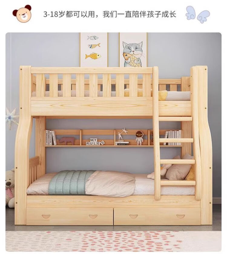 倘然之家上下床双层床多功能双层实木高低儿童床上小户型大人两层子母木床 实木爬梯(裸床)+入户 【加厚加密】上铺80+下铺100cm