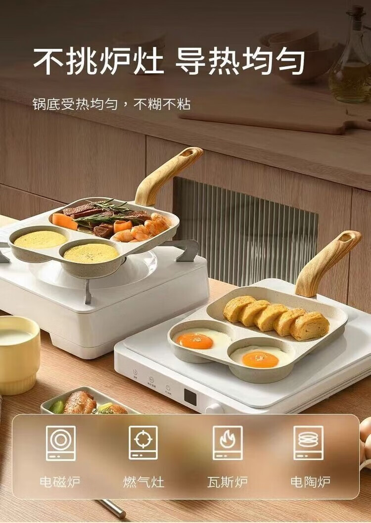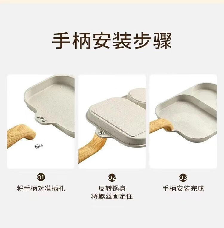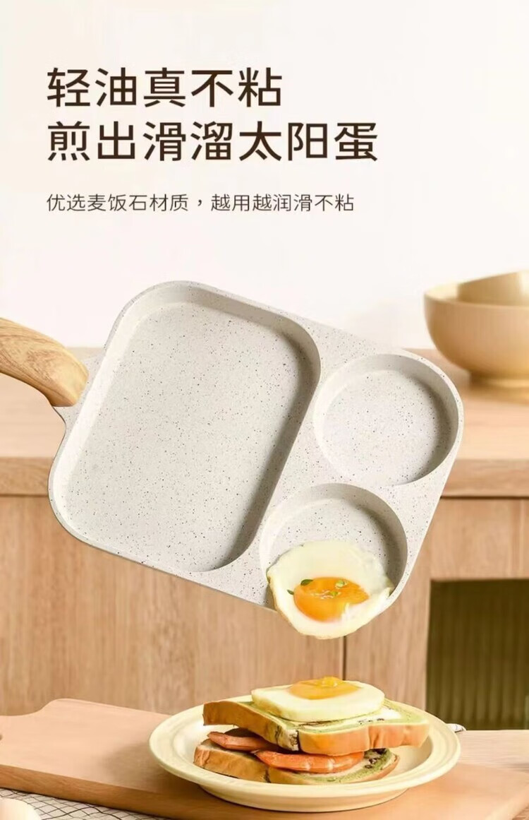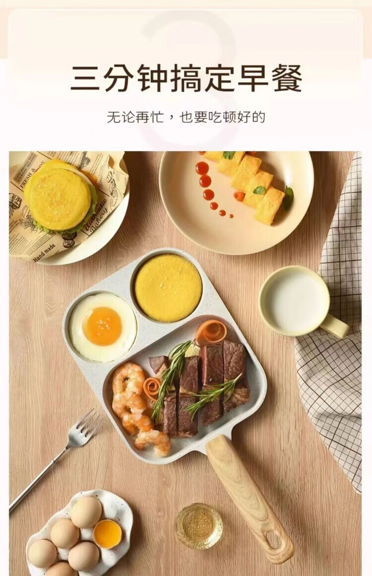 简漾升级煎鸡蛋神器汉堡不粘平底锅家用三合一早餐锅煎饼模具煎牛排锅 加高胶木柄 仅燃气可用三合一早餐锅