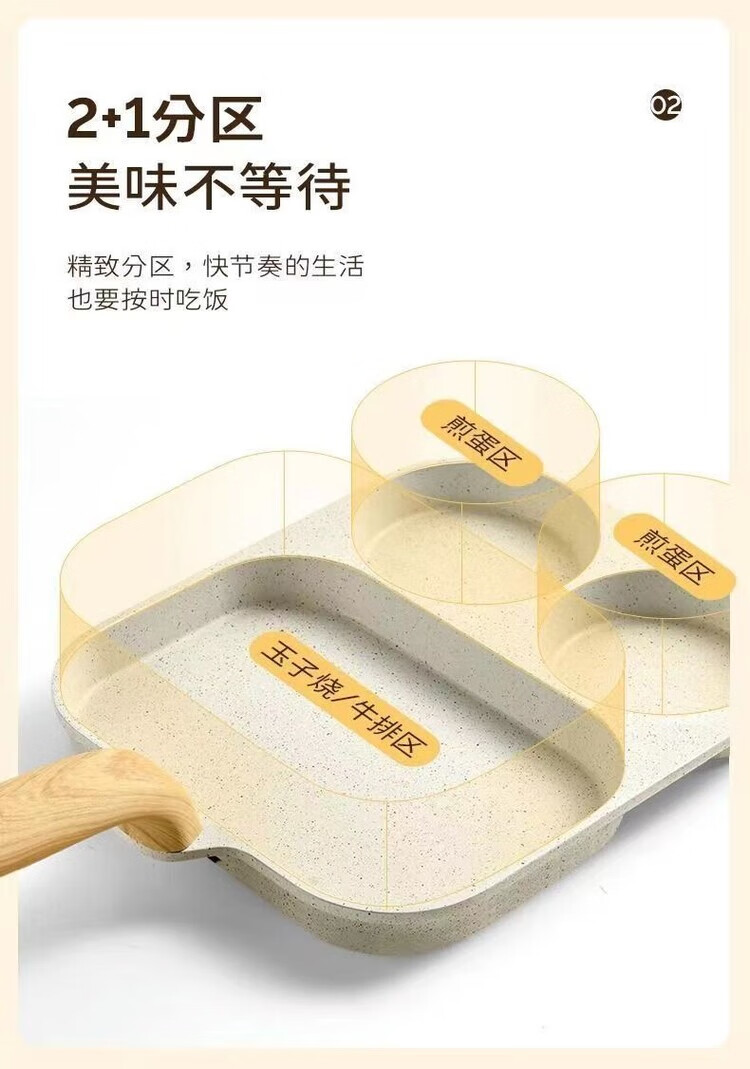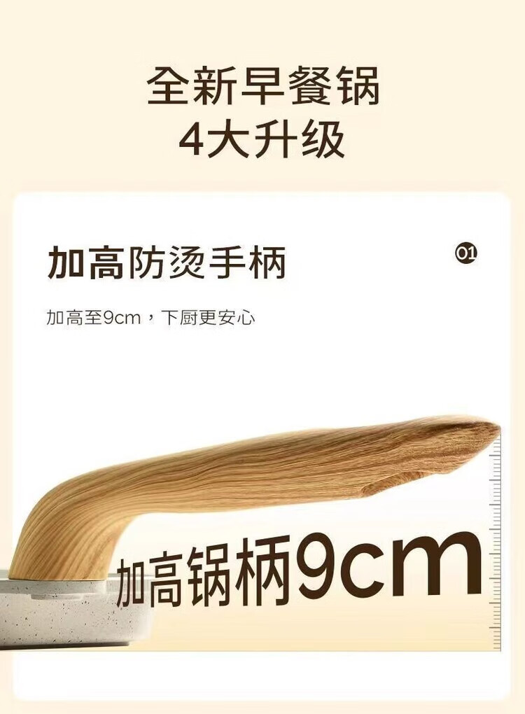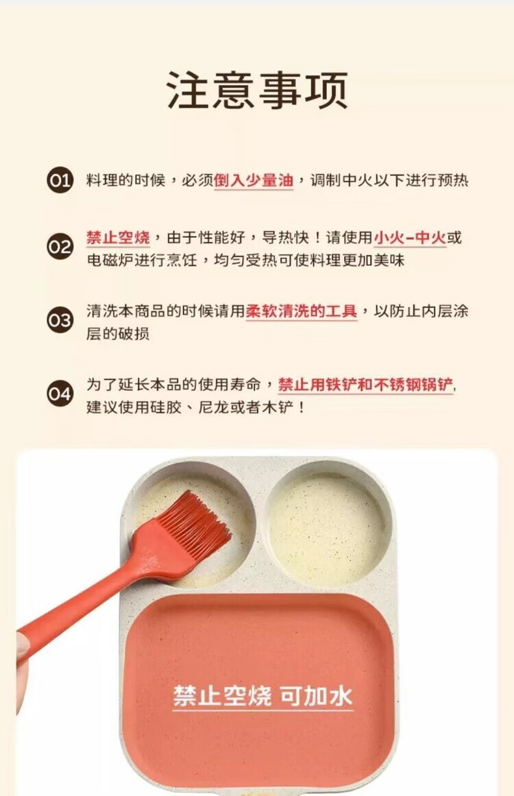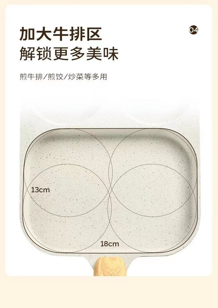 简漾升级煎鸡蛋神器汉堡不粘平底锅家用三合一早餐锅煎饼模具煎牛排锅 加高胶木柄 仅燃气可用三合一早餐锅