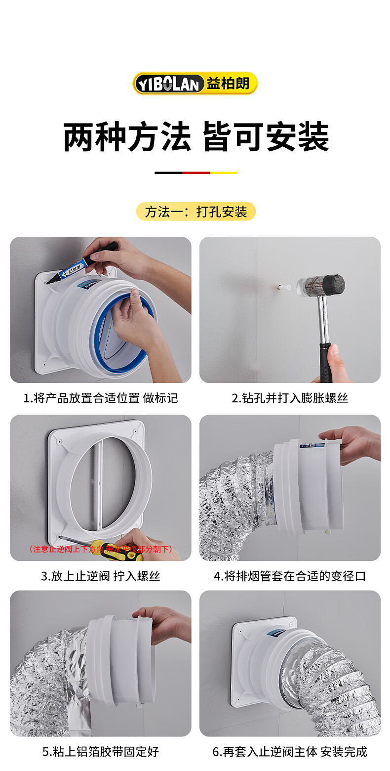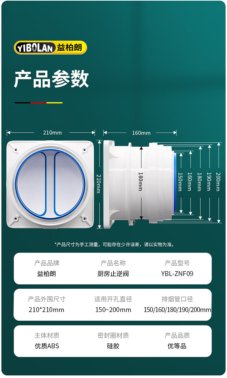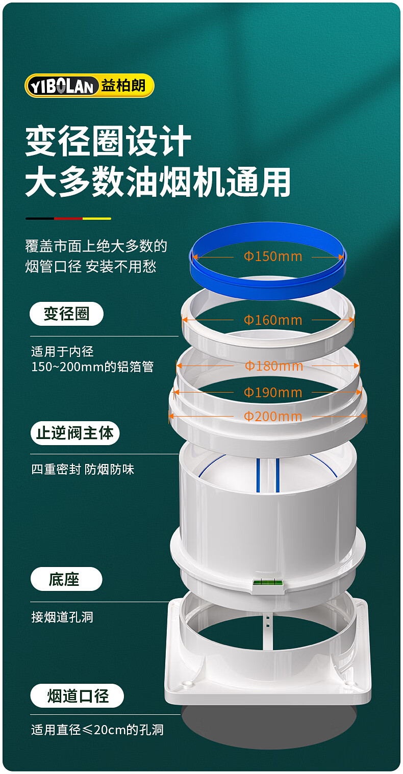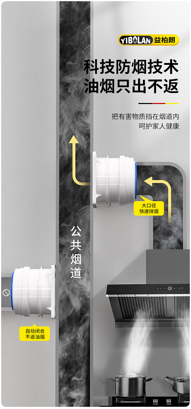 益柏朗抽油烟机止逆阀烟道阀老板厨房专用公共烟道防烟止回阀排烟通用型