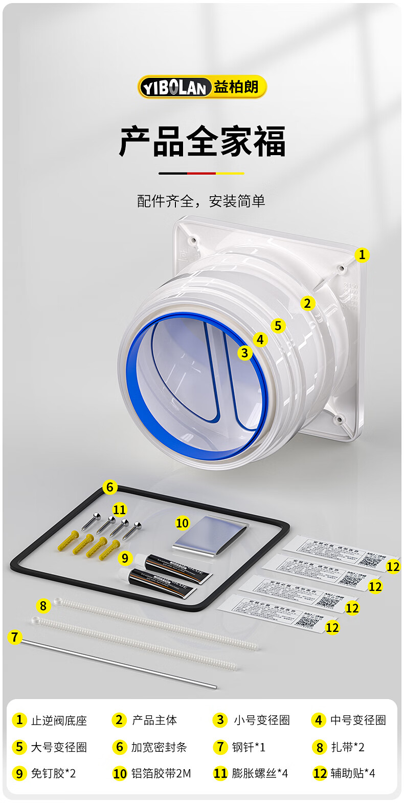 潜水艇(Submarine)油烟机止回阀厨房止逆阀止烟阀卫生间逆止阀烟道防倒灌防烟宝京 【全新款】厨房止逆阀(通用款)