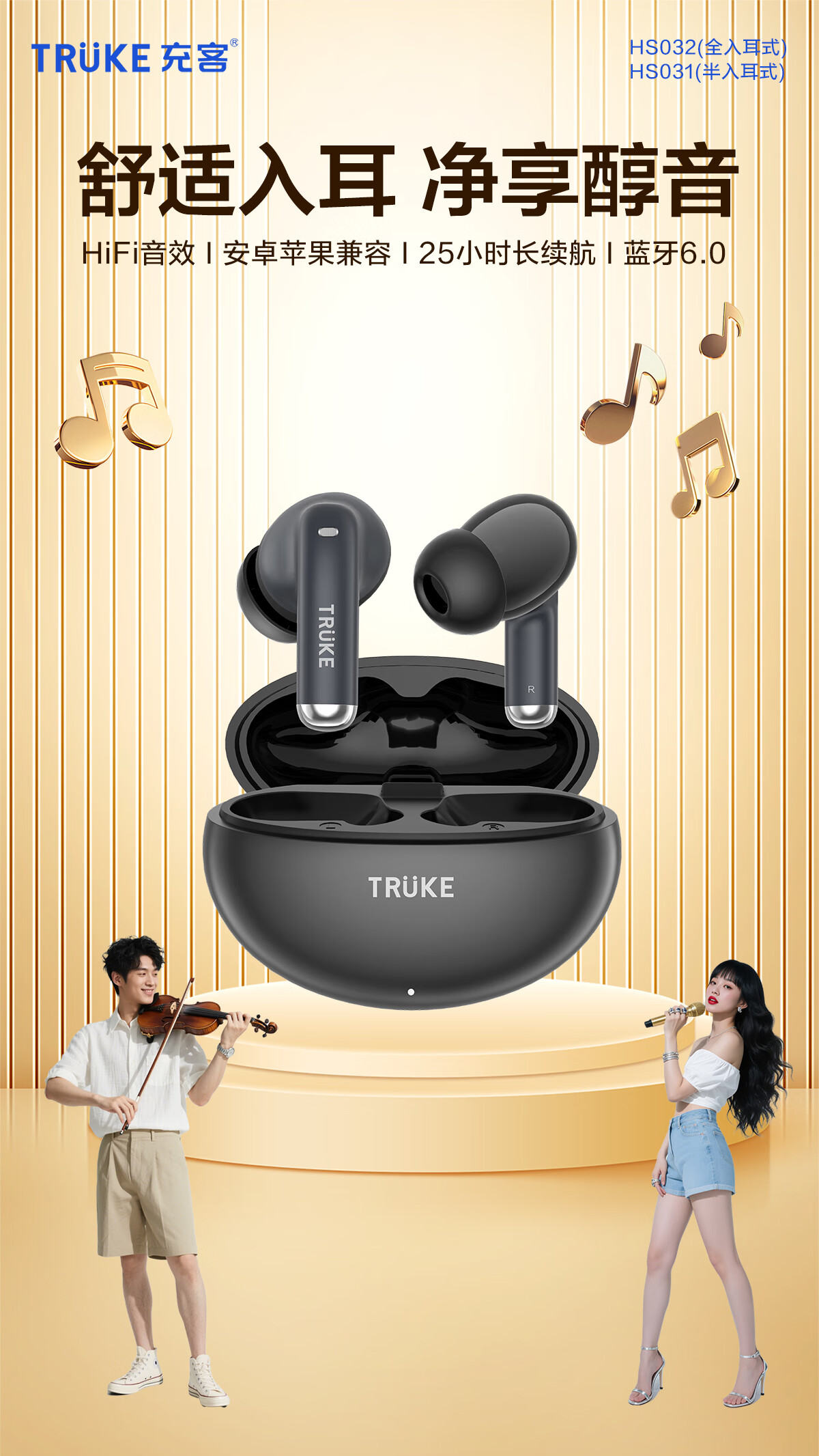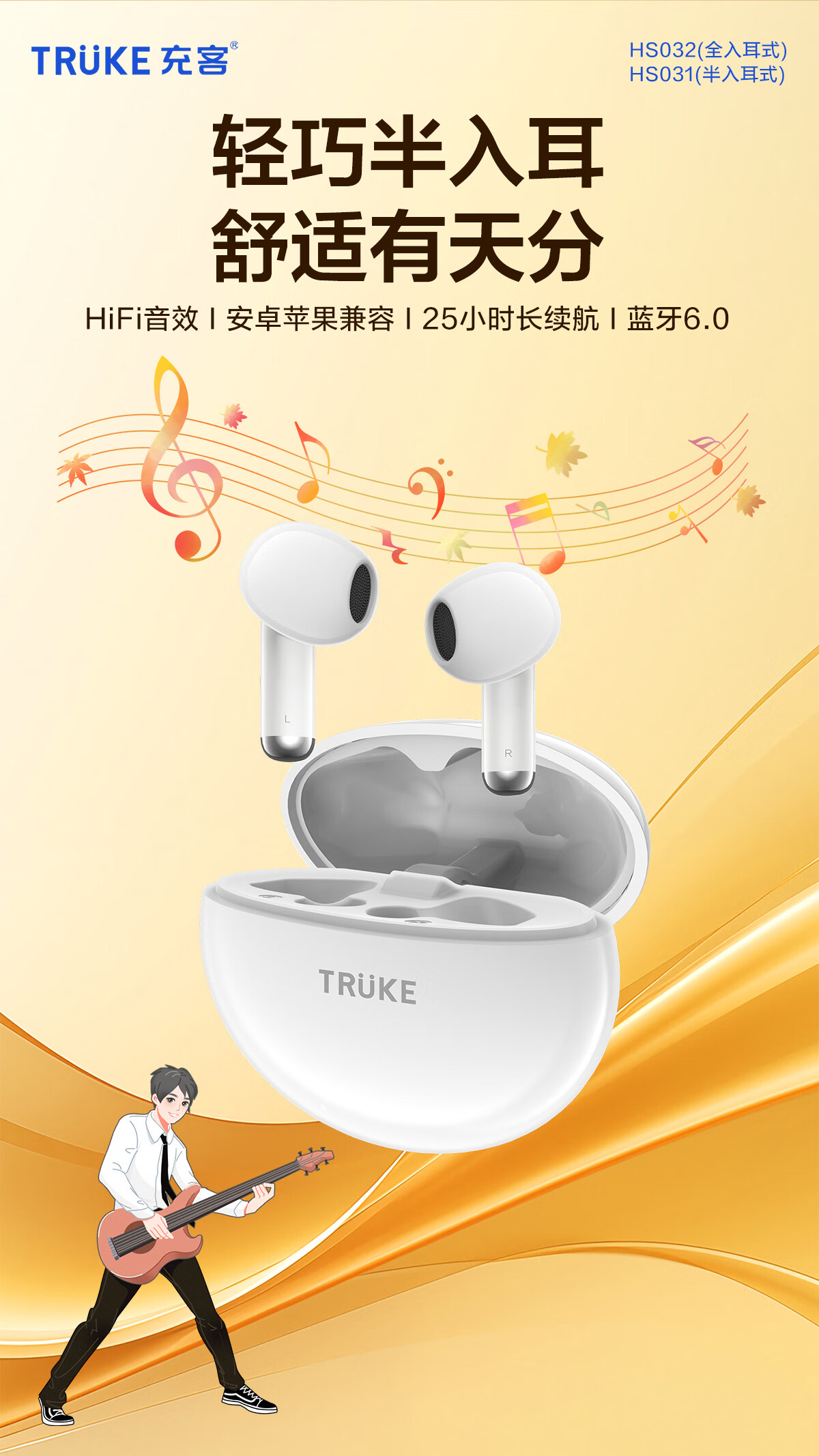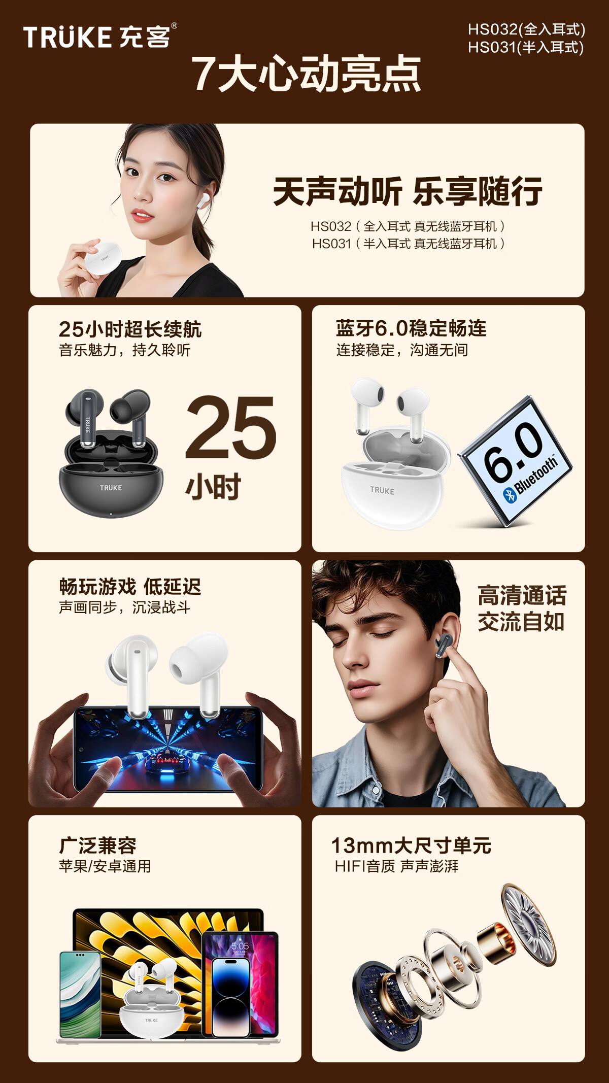 充客蓝牙耳机半入耳式真无线智能降噪HIFI高音质超长续航低延迟游戏跑步运动音乐耳机