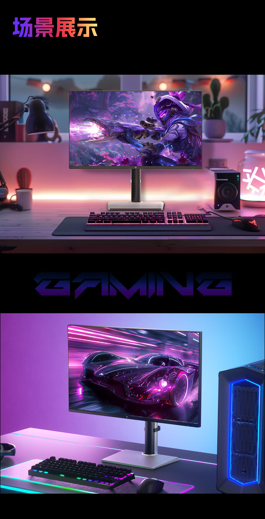 LUCKPRO显示器支架底座 显示屏自动升降旋转调节增高电脑支架 左右横竖屏免打孔通用vesa支架配件 m黑色