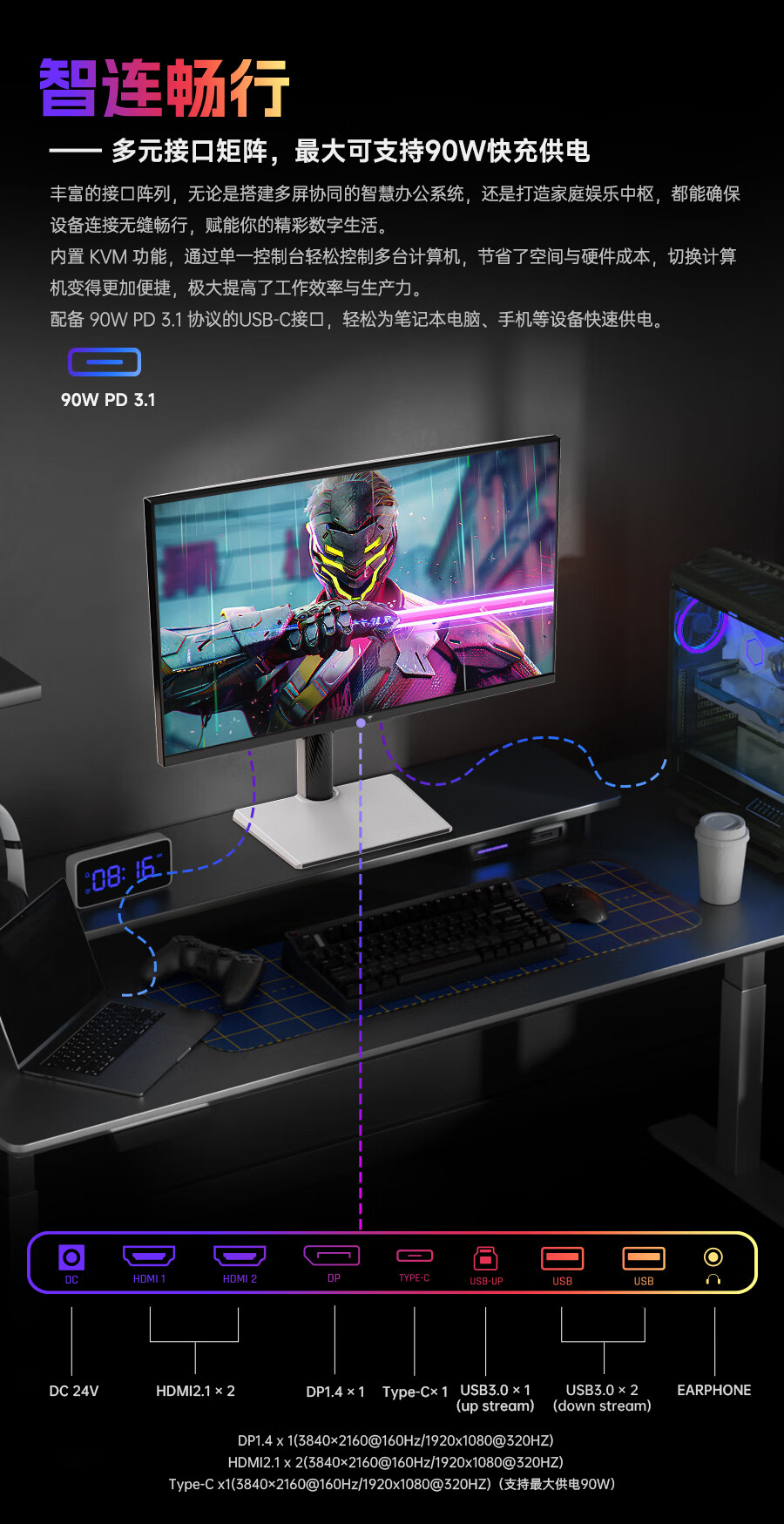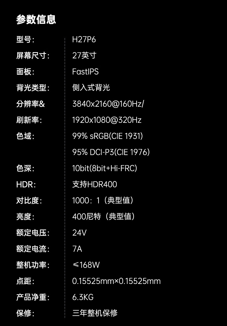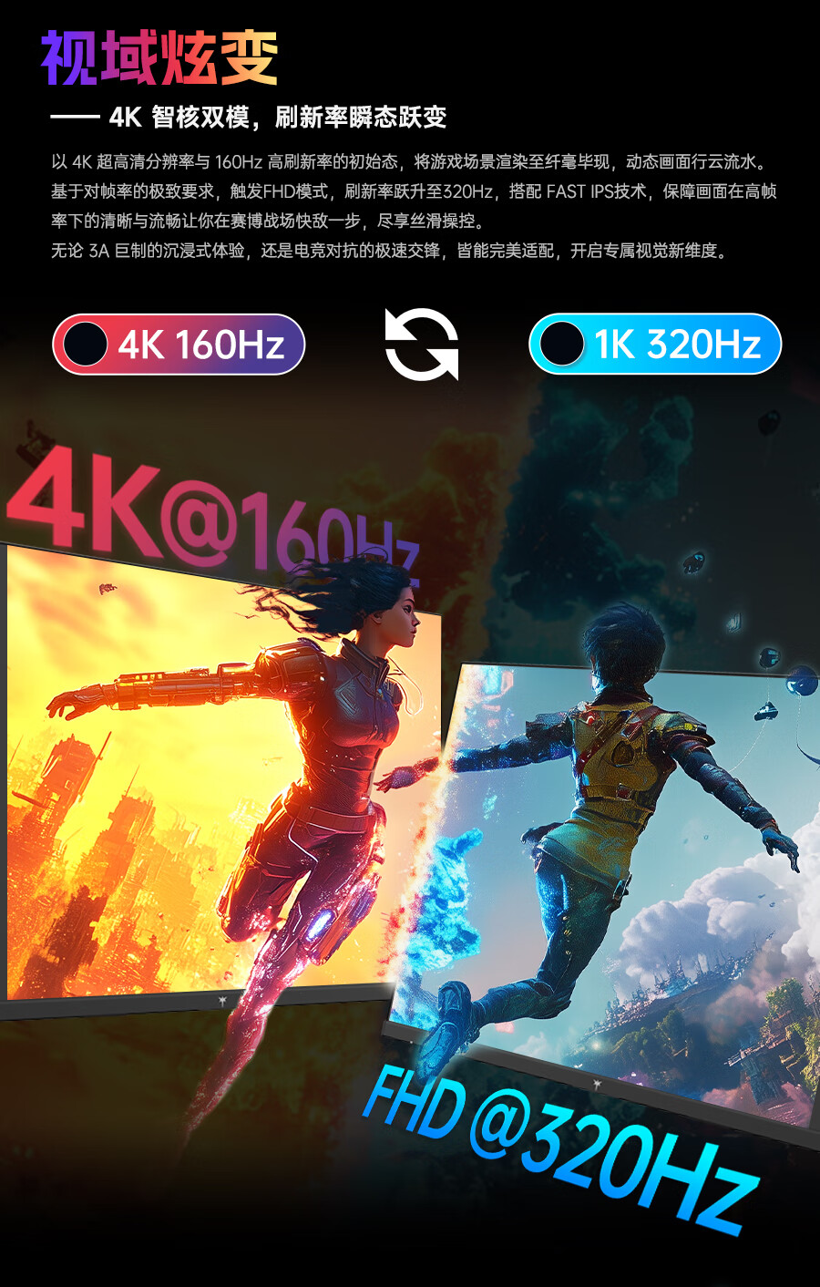 KTC 27英寸4K 160Hz/FHD 320Hz双模Type-c 90w Switch2外接 国家补贴400nit显示屏电脑显示器 H27P6