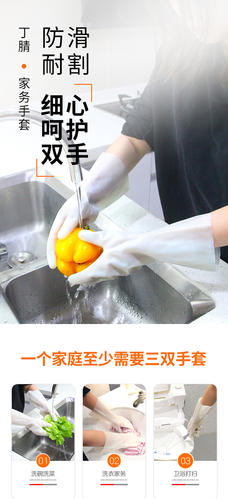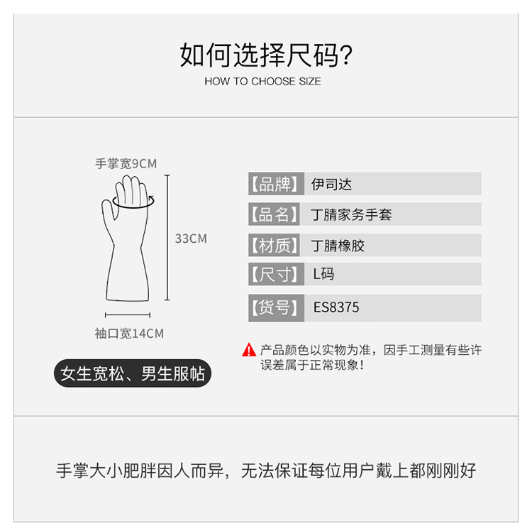 伊司达 家务手套 餐饮厨房劳保丁腈L码*1双无味厚韧橡胶