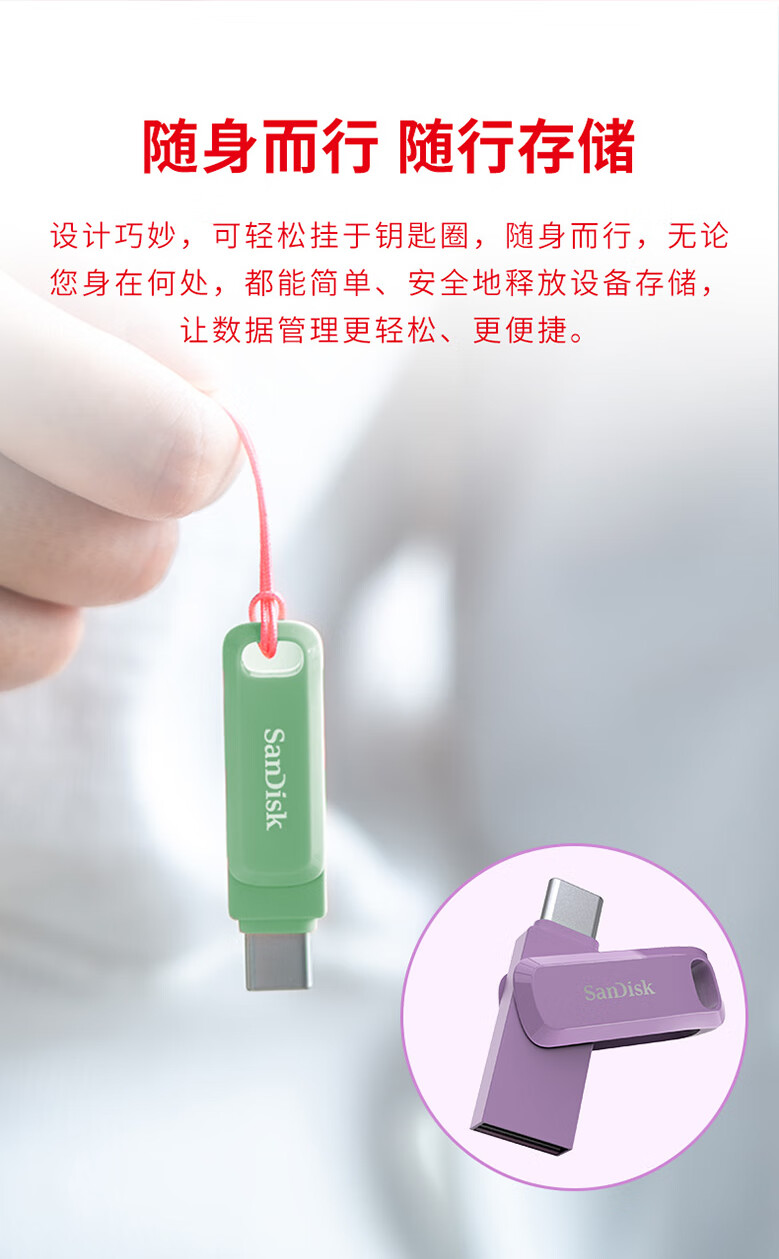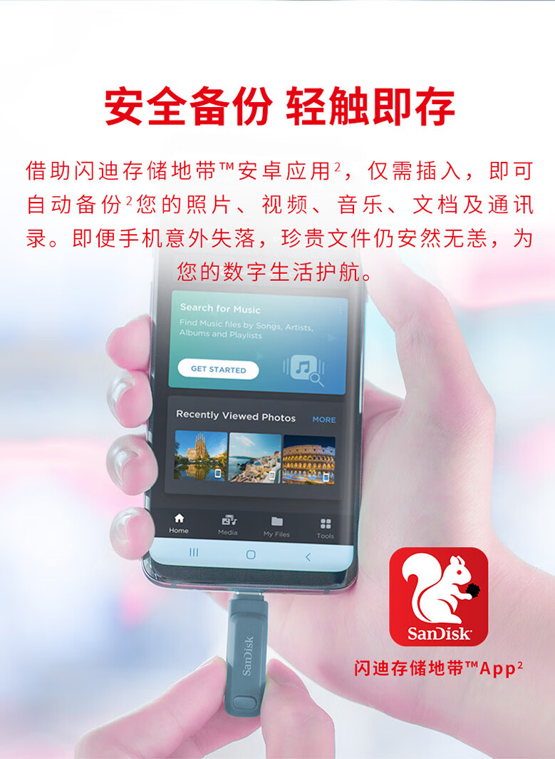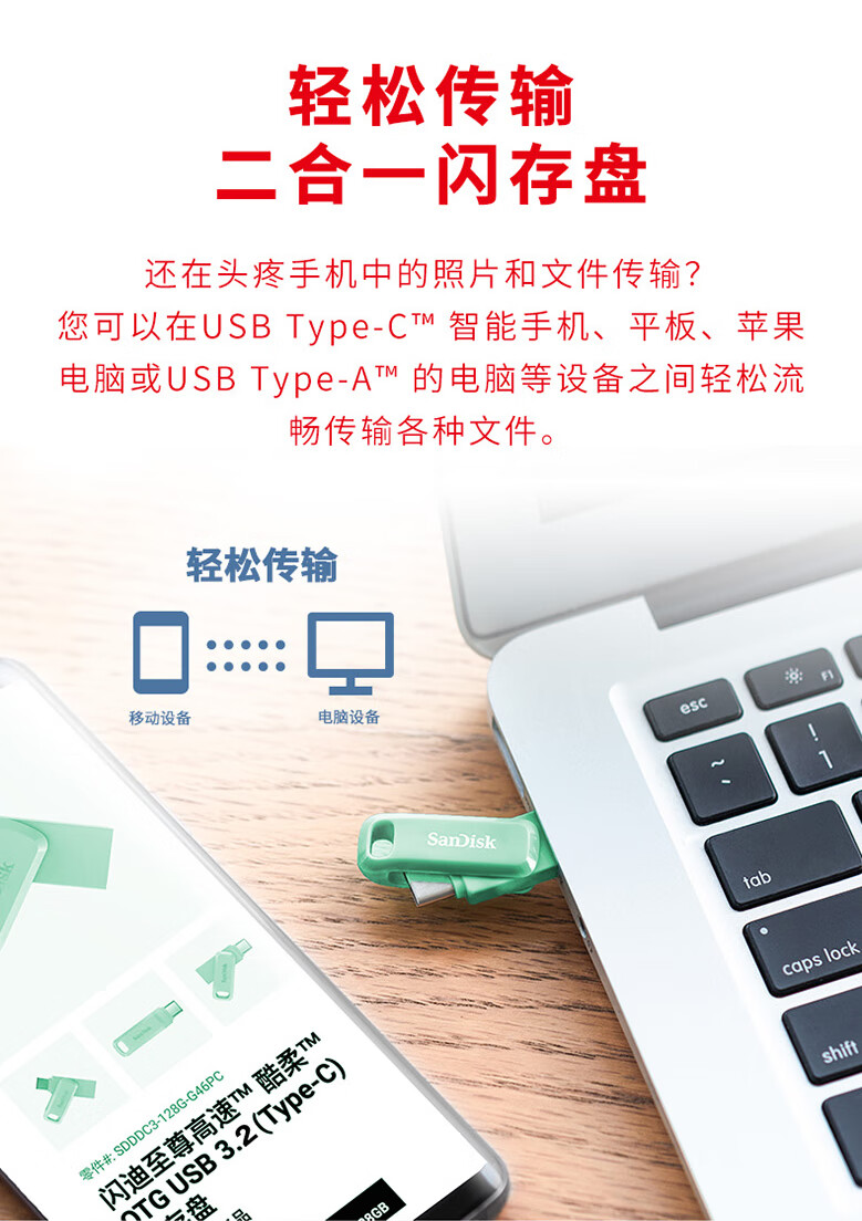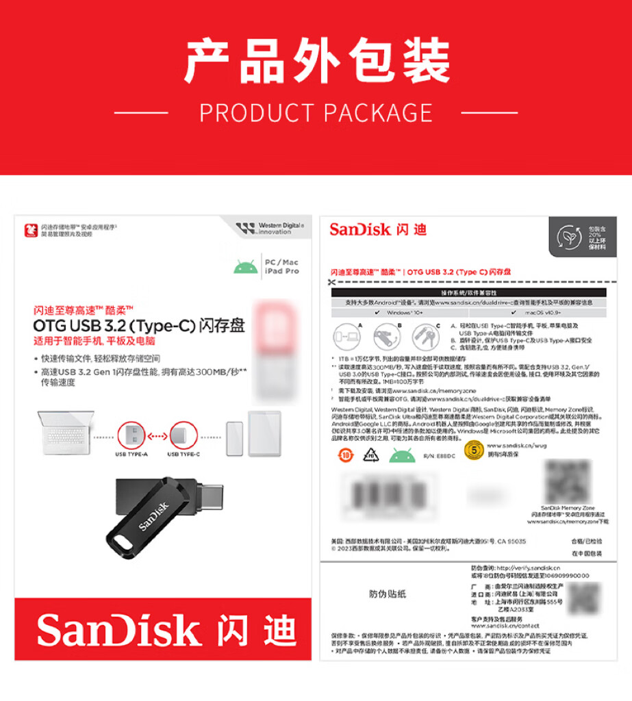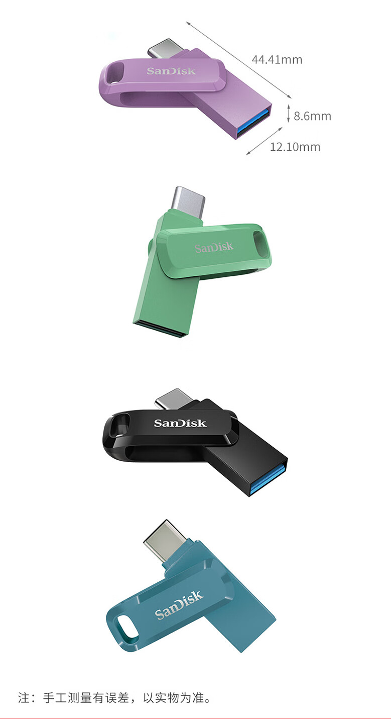 闪迪(SanDisk)64GB Type-C USB3.2 手机U盘DDC3黑色 读速高达300MB/s 自动备份 手机电脑两用 双接口大容量优盘