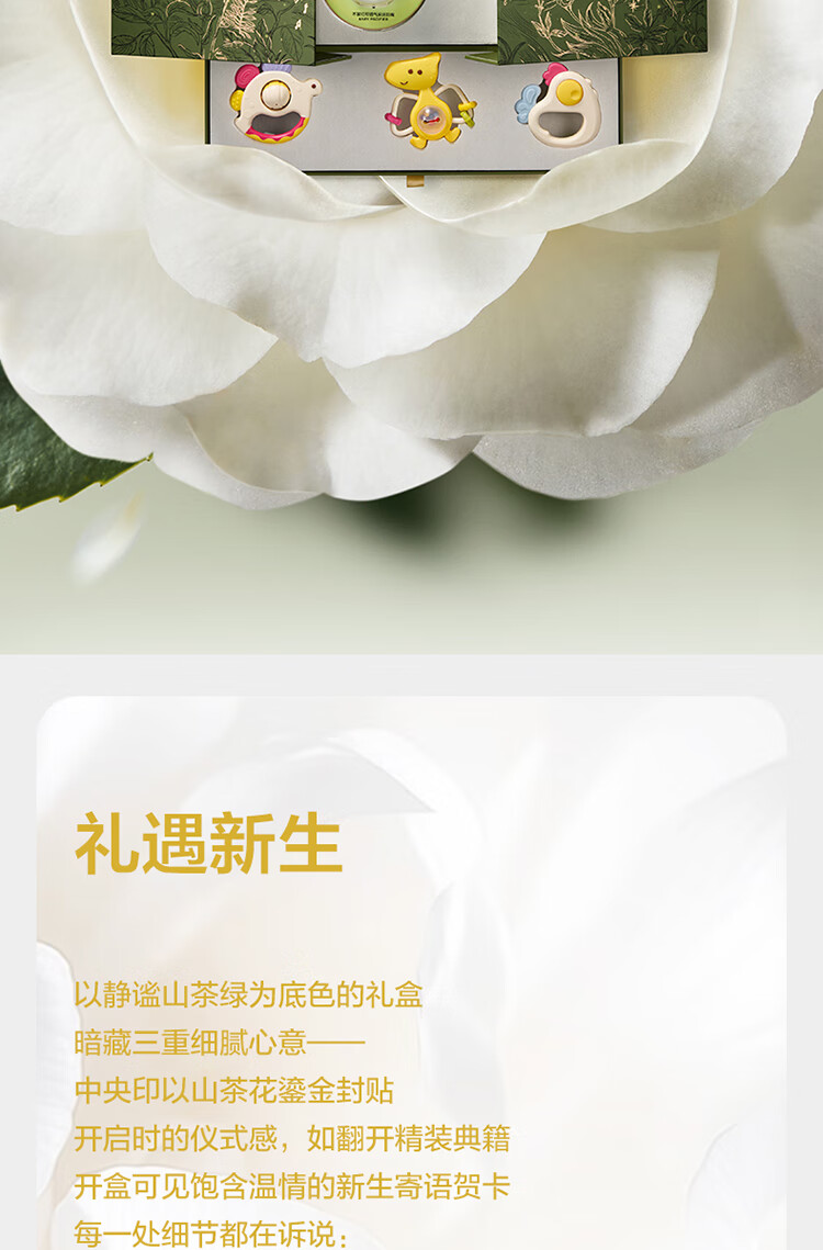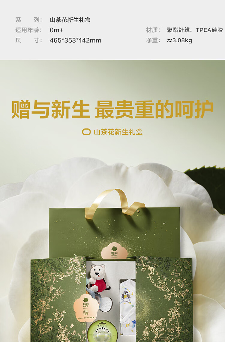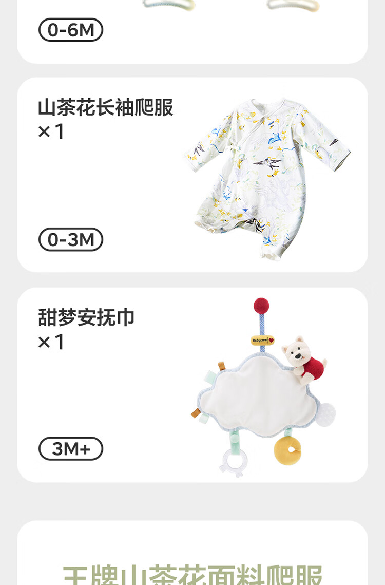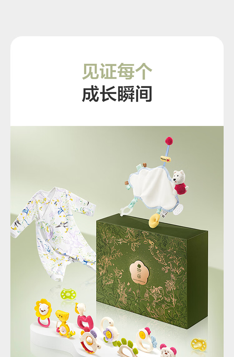 babycare金山茶花新生礼盒新生儿爬服摇铃安抚玩具宝宝见面礼-12件