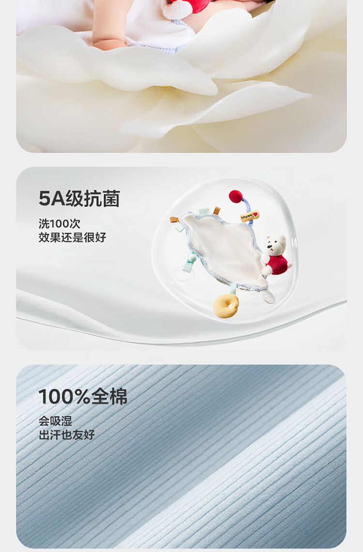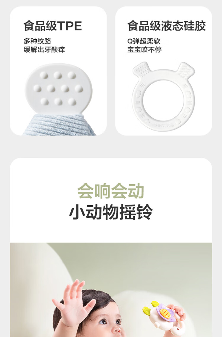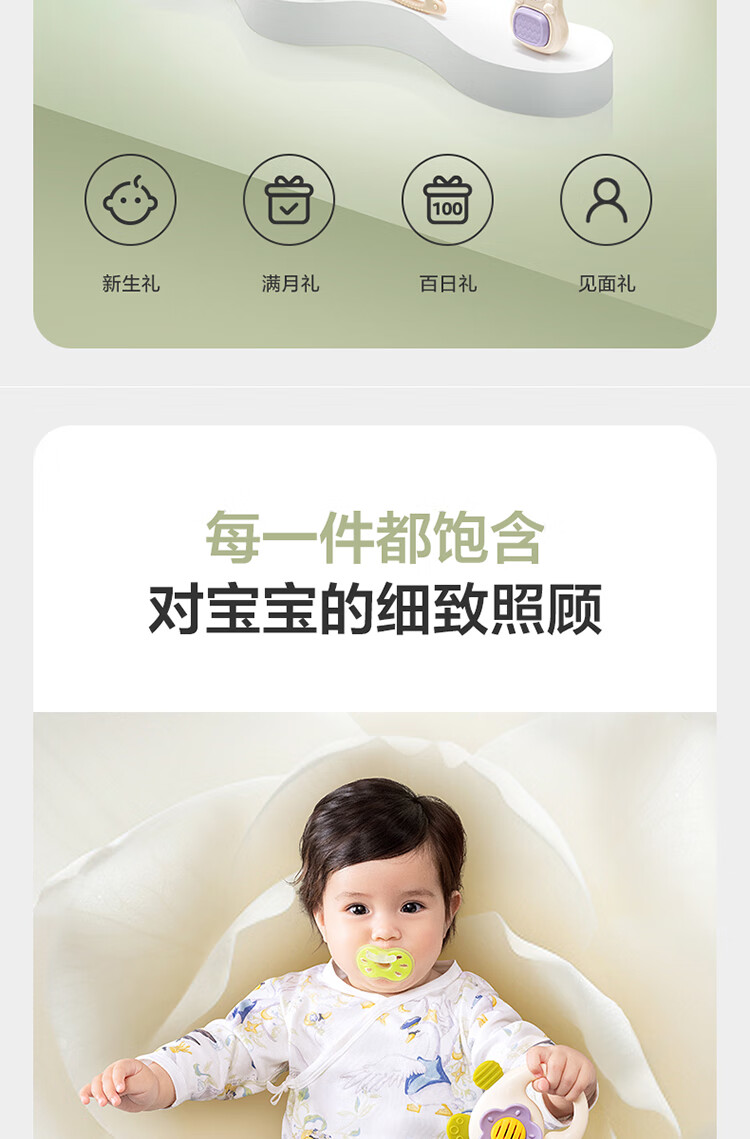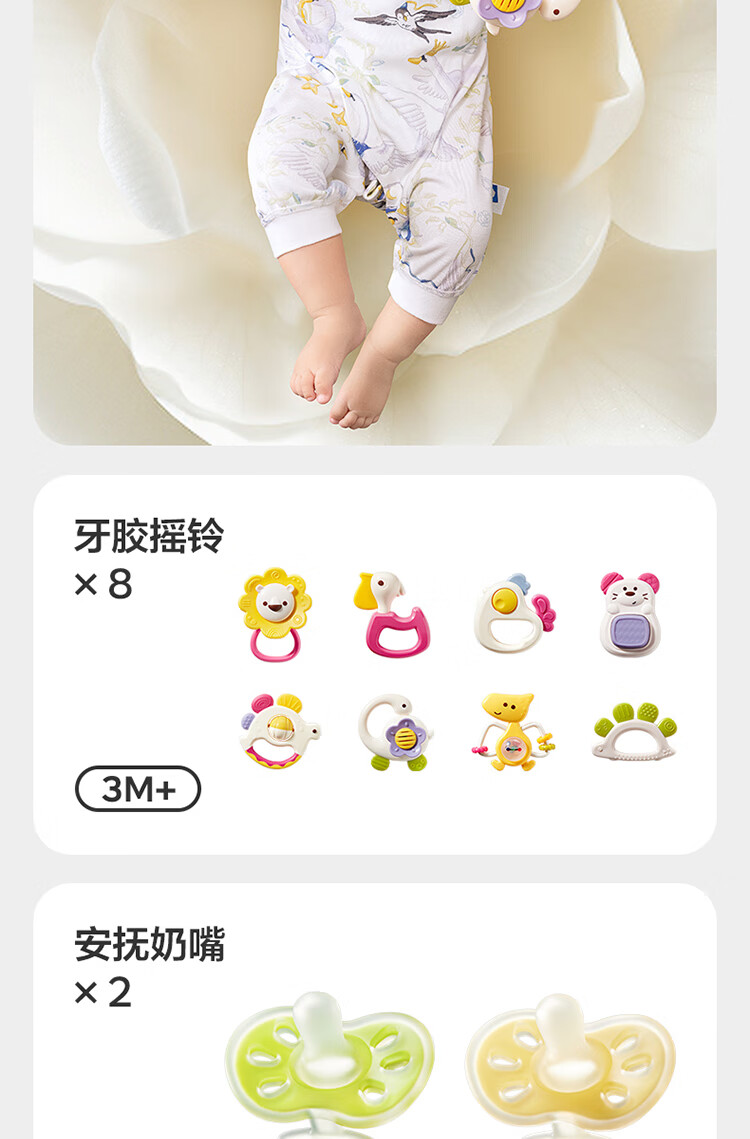 babycare金山茶花新生礼盒新生儿爬服摇铃安抚玩具宝宝见面礼-12件