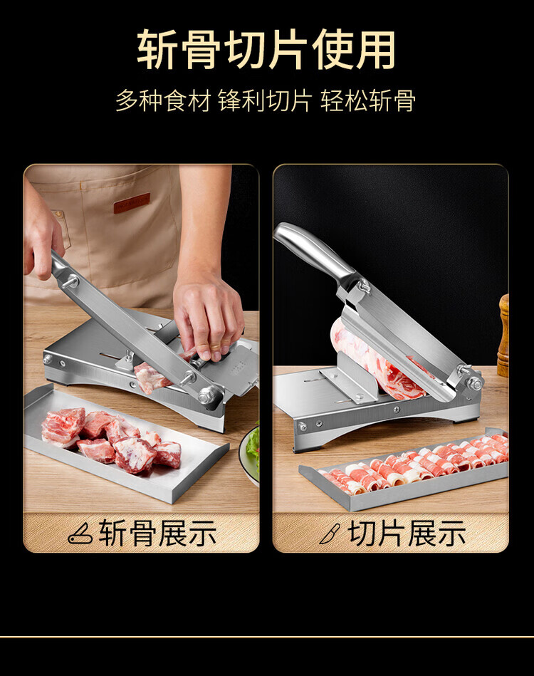 WCZ德国切羊肉卷机切片机家用多功能切肉卷机牛羊肉切卷机刨肉机 【加厚304不锈钢】切骨/切片两用+冻肉袋子30只