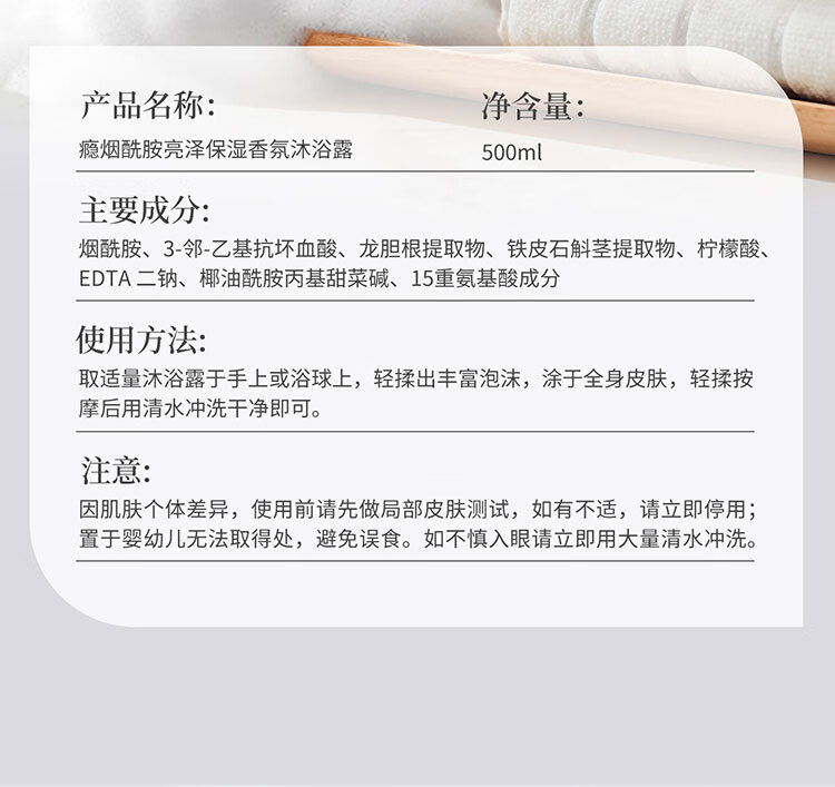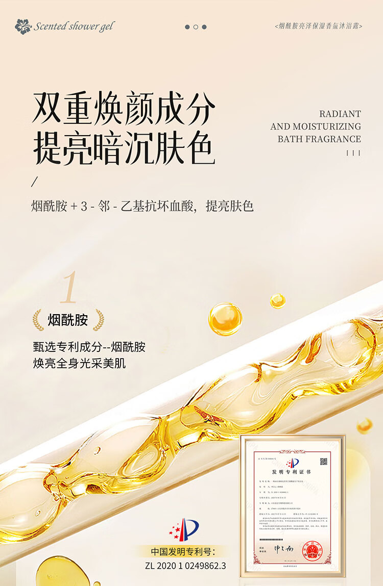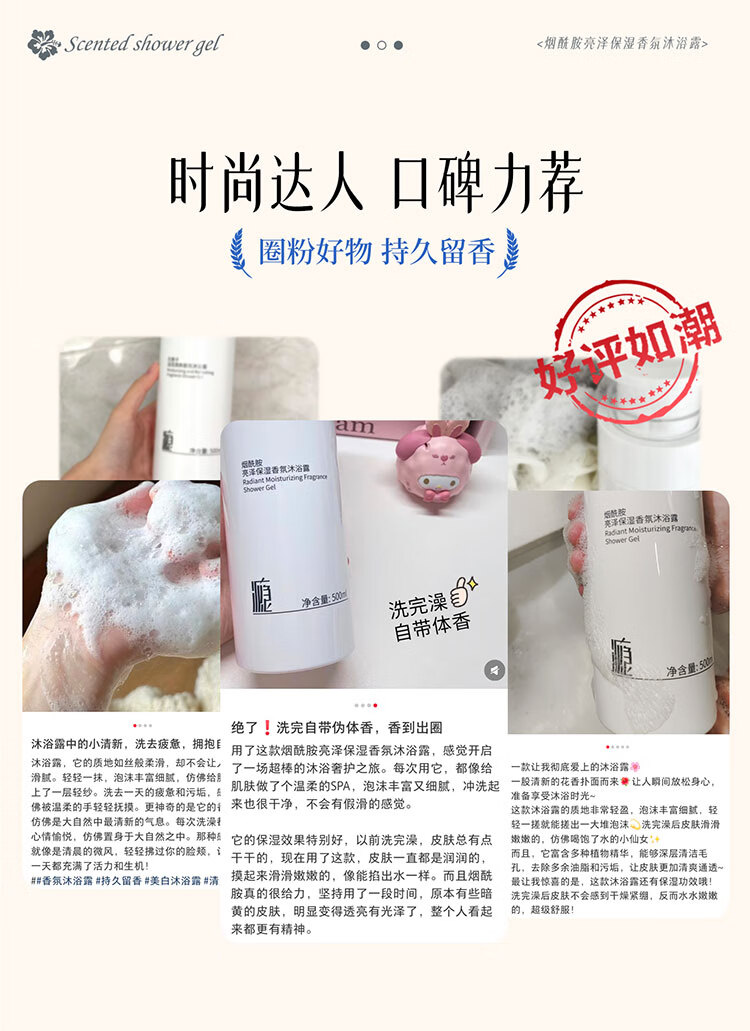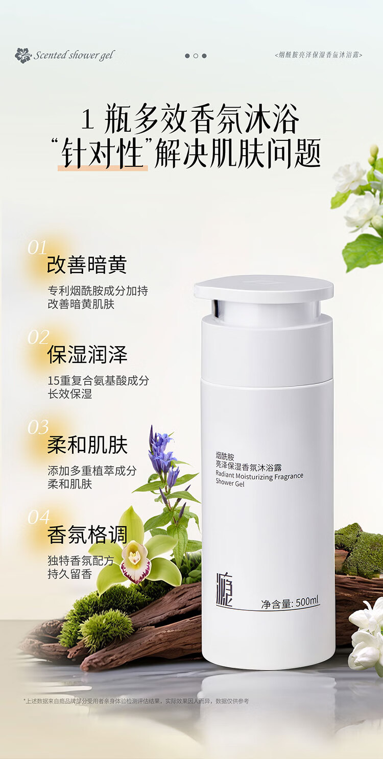 瘾烟酰胺亮泽保湿香氛沐浴露持久留香控油滋润嫩肤沐浴乳500ml