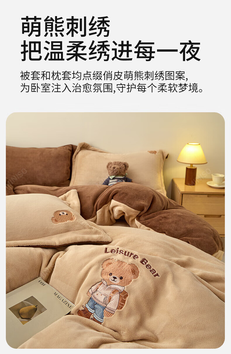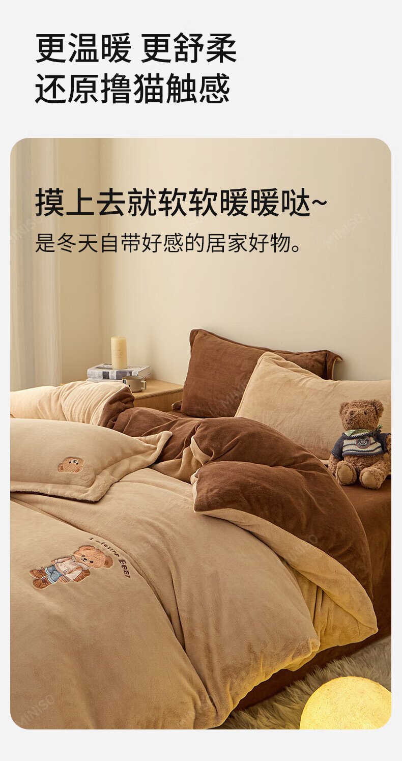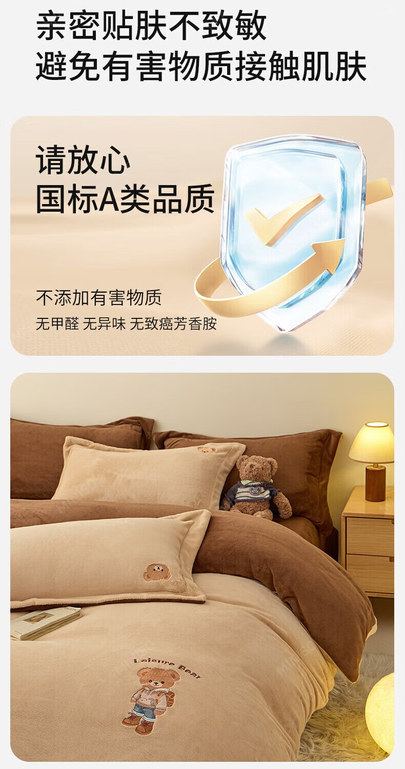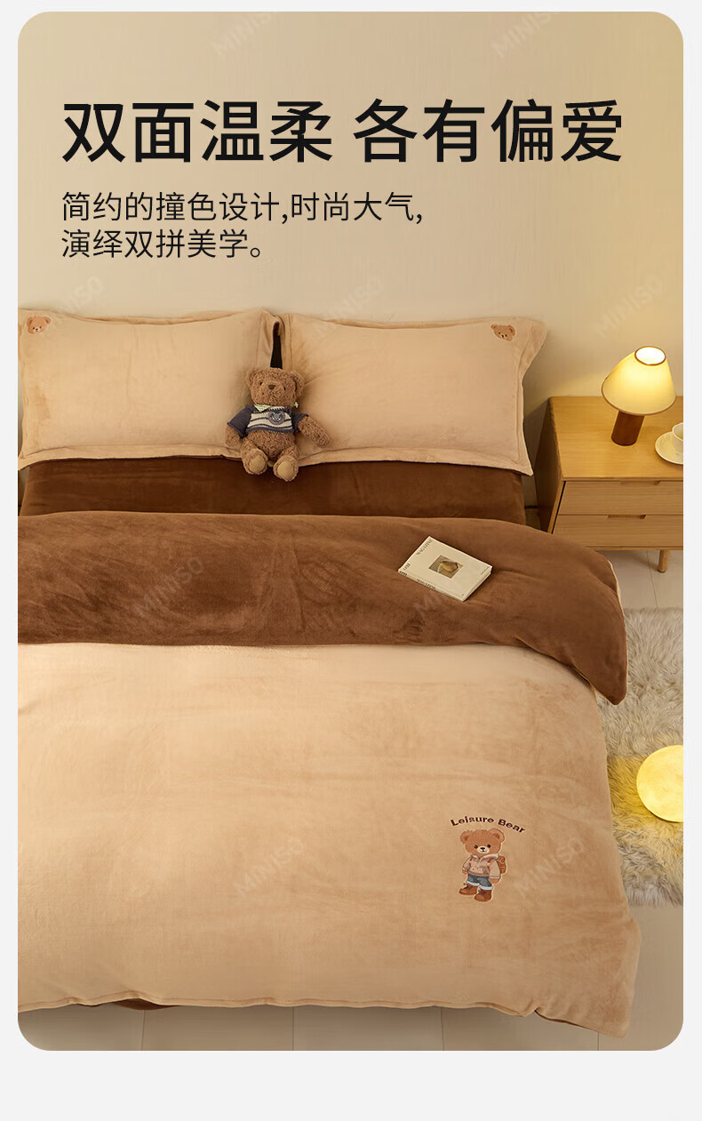 名创优品牛奶绒四件套冬季加厚双面绒珊瑚绒床单被套床笠款学生宿舍三件套 布丁黄+梵星蓝 1.5/1.8 床单款 四件套(被套2.0*2.3m)