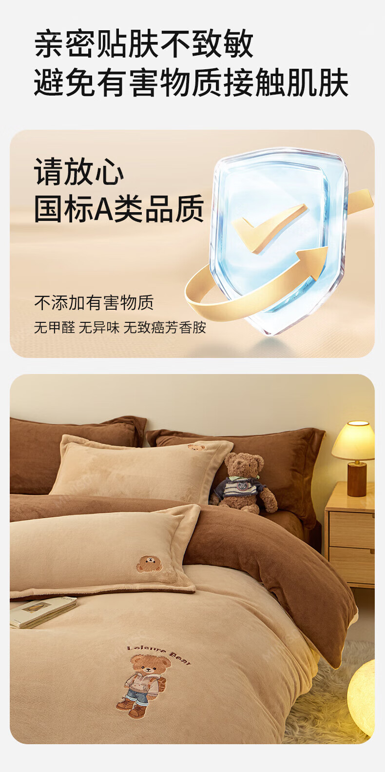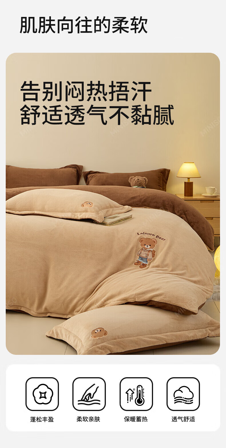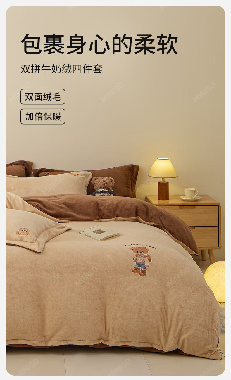 名创优品牛奶绒四件套冬季加厚双面绒珊瑚绒床单被套床笠款学生宿舍三件套 布丁黄+梵星蓝 1.5/1.8 床单款 四件套(被套2.0*2.3m)