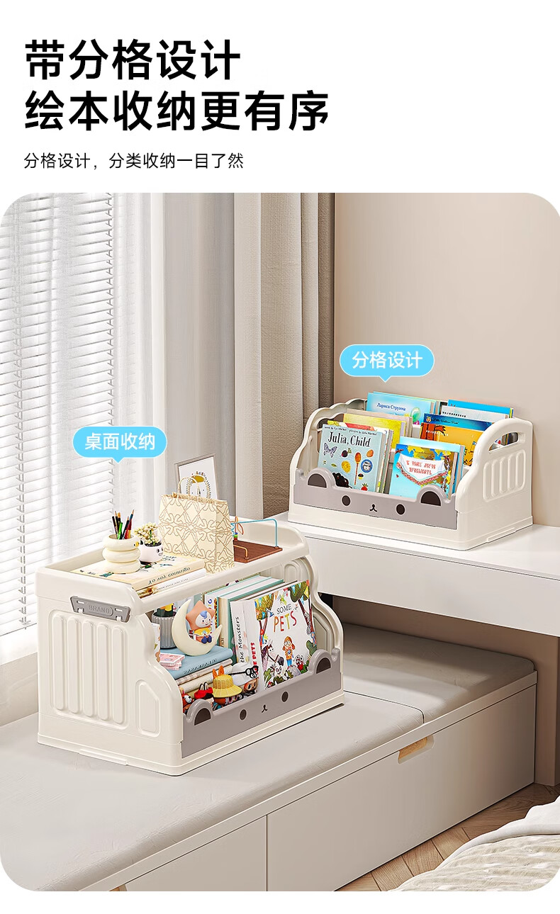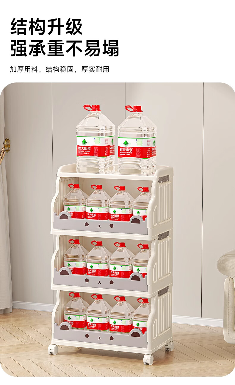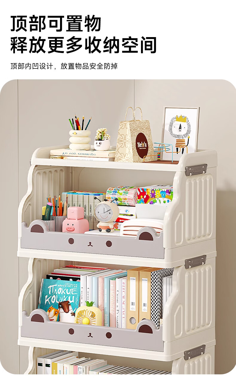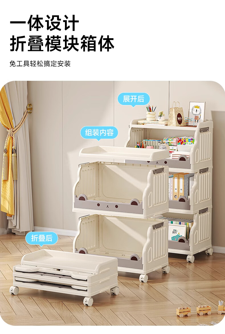 木格格书架可移动小推车收纳架书本文具书包置物架零食小推车收纳分层架 蓝色小号三层【可移动滑轮】