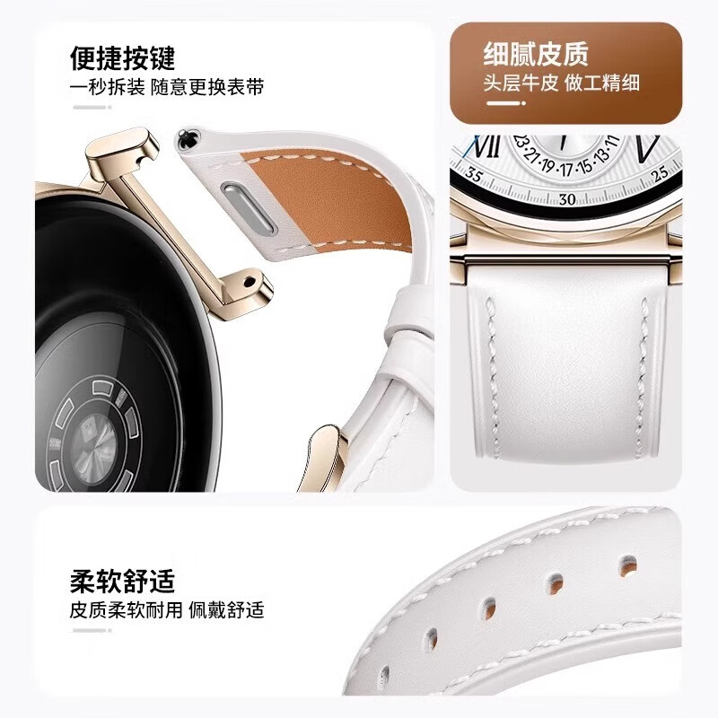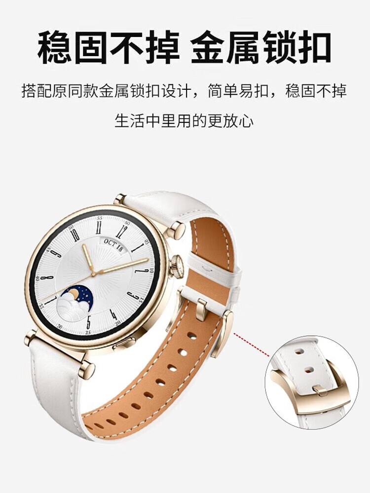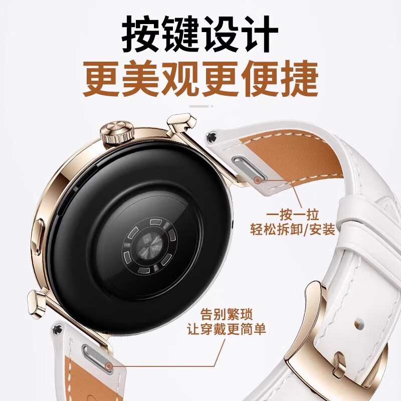 红昭愿适用华为手表表带watch gt6 41mm表盘按压式接口女士款时尚真皮腕带 黑色银扣【按键接口】