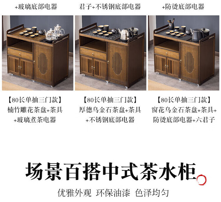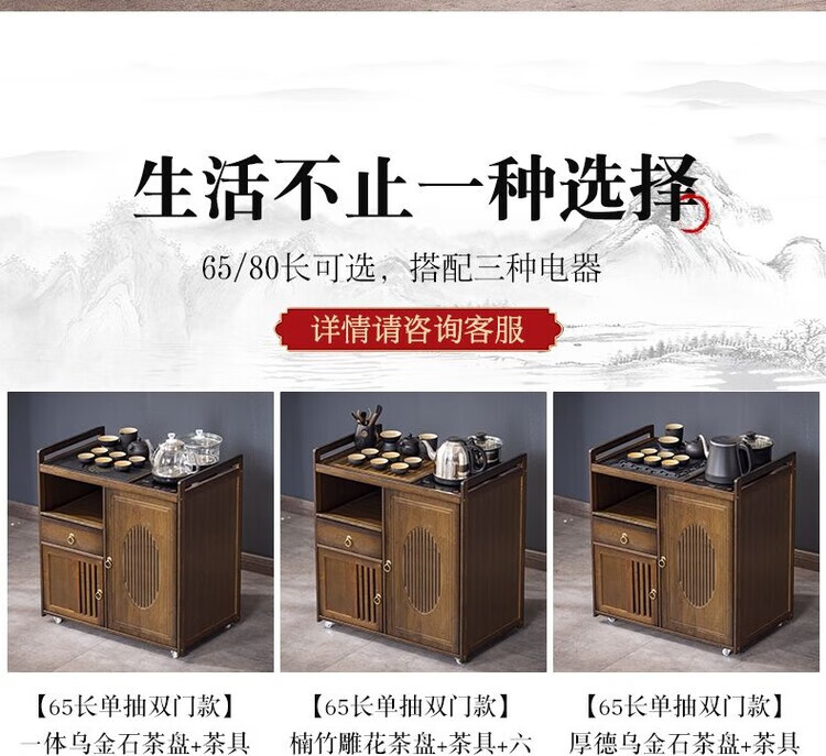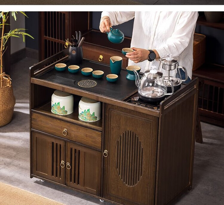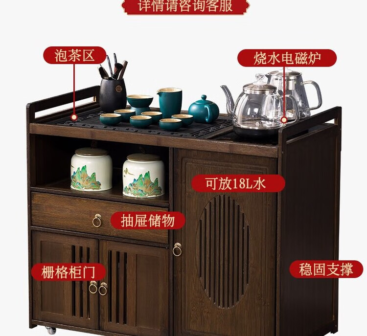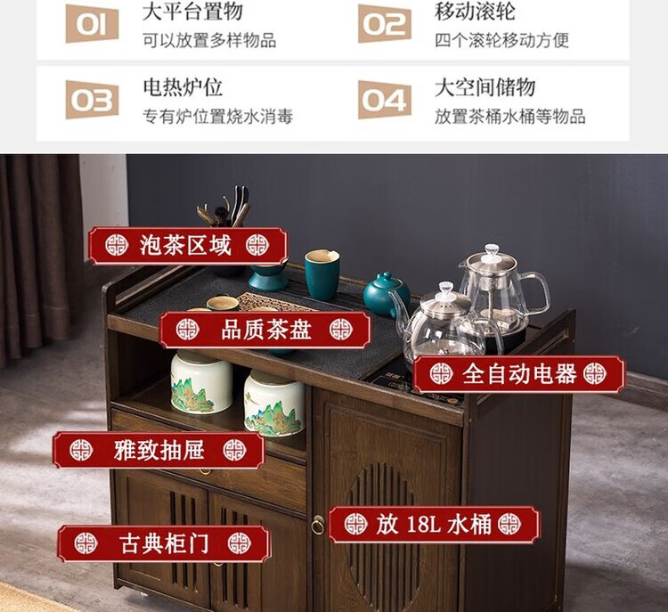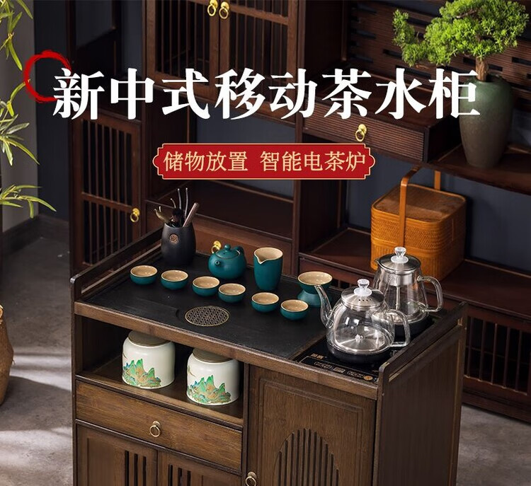 倘然之家客厅沙发边几移动茶桌小茶台茶吧机家用茶几烧水壶一体茶车茶水柜 65款-无盖板