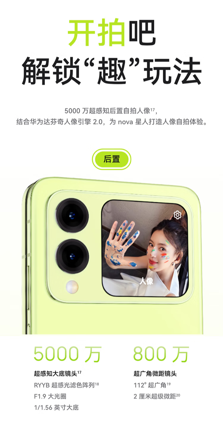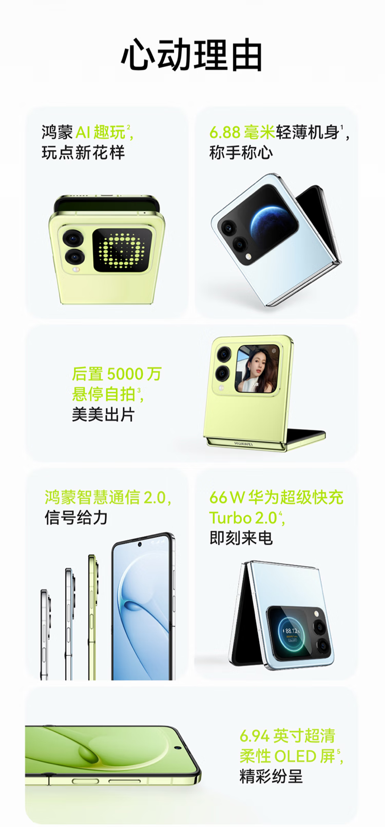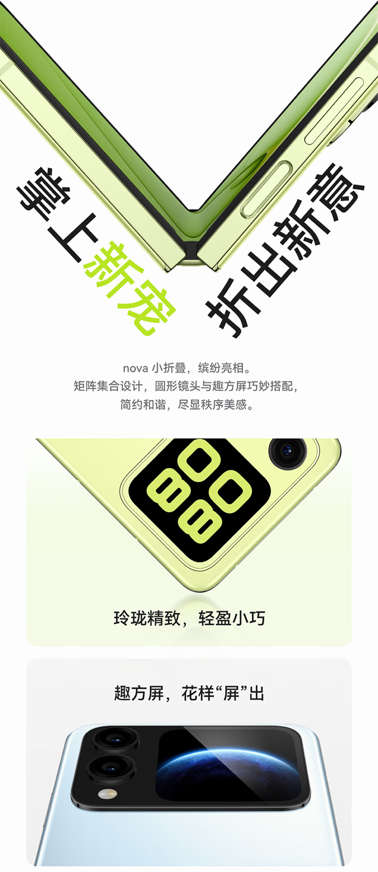 华为 nova Flip S 512GB 向新绿 SGS 120万次弯折 鸿蒙AI趣玩 后置5000万悬停自拍智能手机