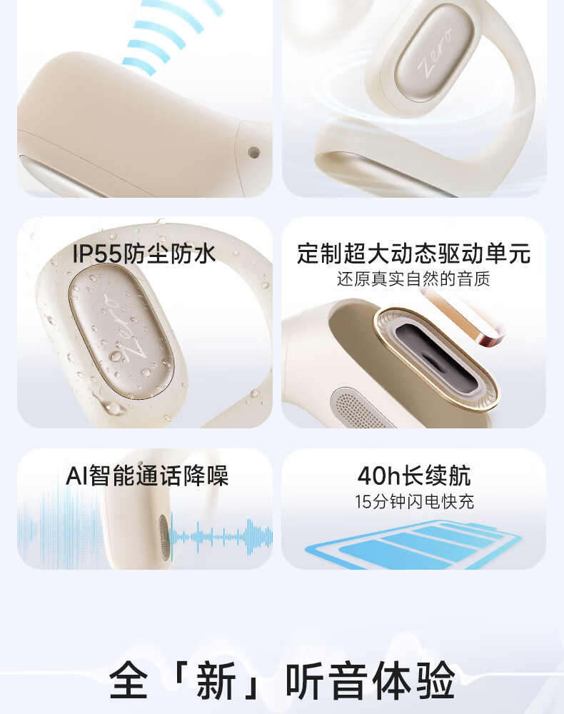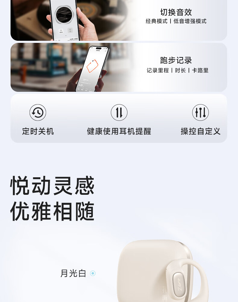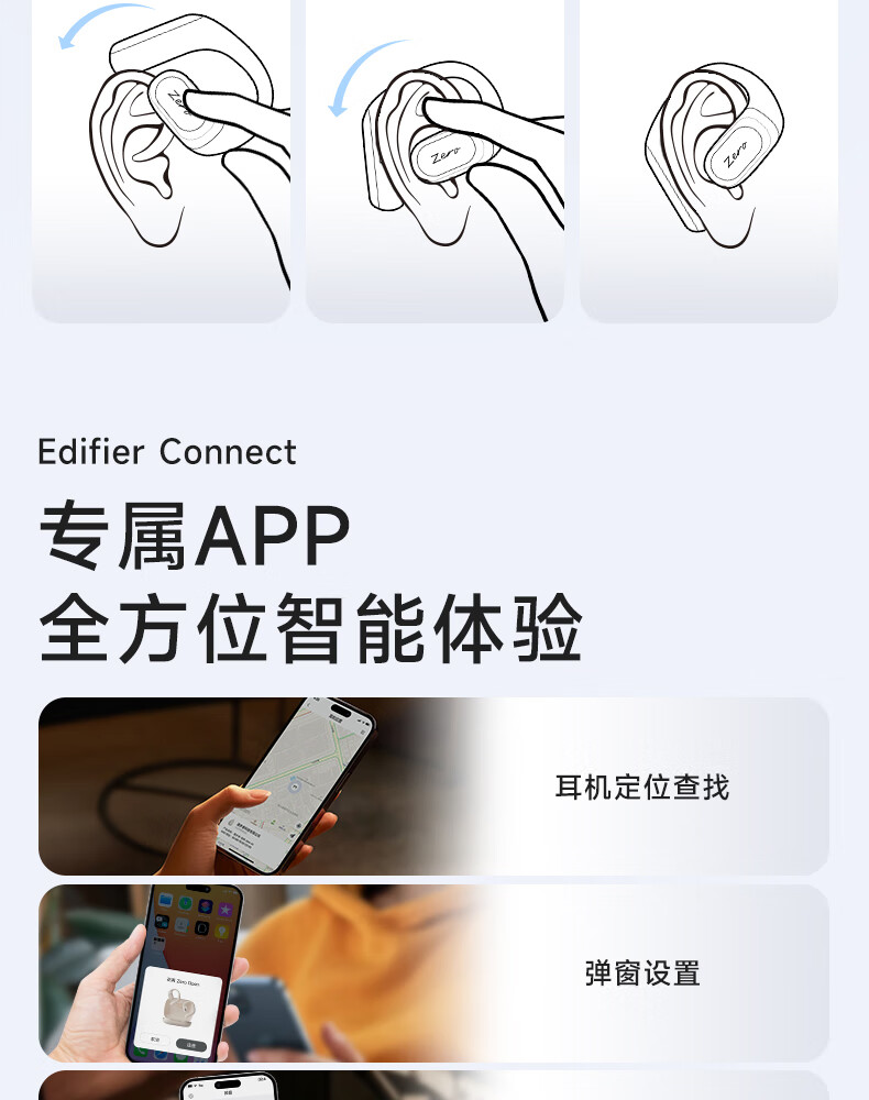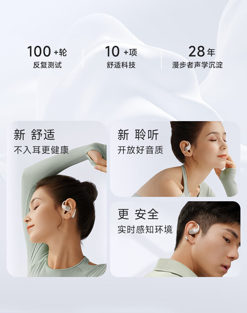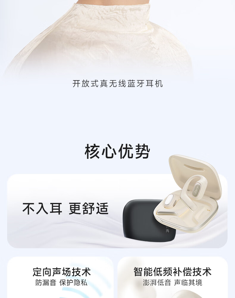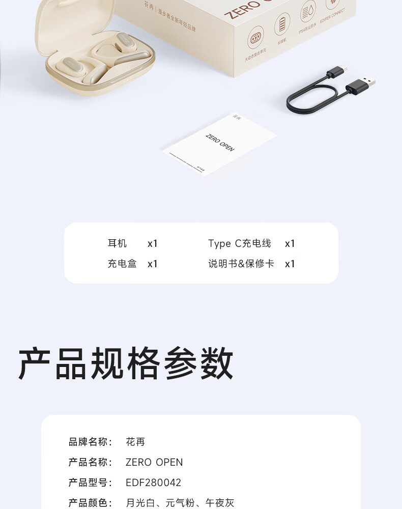 漫步者花再Zero Open 无线蓝牙耳机 挂耳式耳机 长续航 佩戴舒适 月光白 适用苹果华为小米