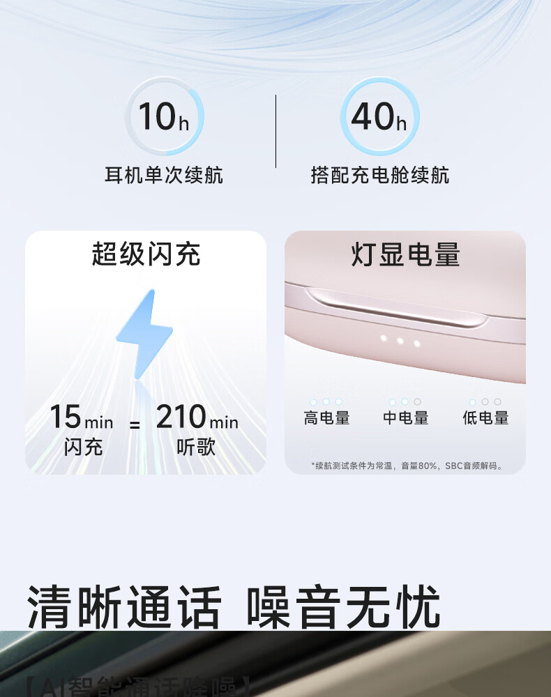 品胜真无线蓝牙耳机入耳式蓝牙5.4长续航音乐低延迟主动降噪耳机 P2适用苹果17华为小米手机 白色【主动降噪|入耳式】