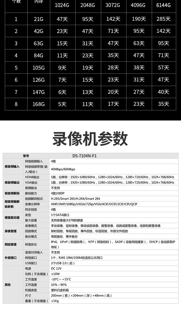 HIKVISION海康威视网络硬盘录像机4路高清监控主机支持6T硬盘NVR手机远程DS-7104N-F1