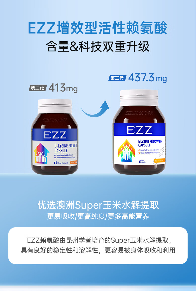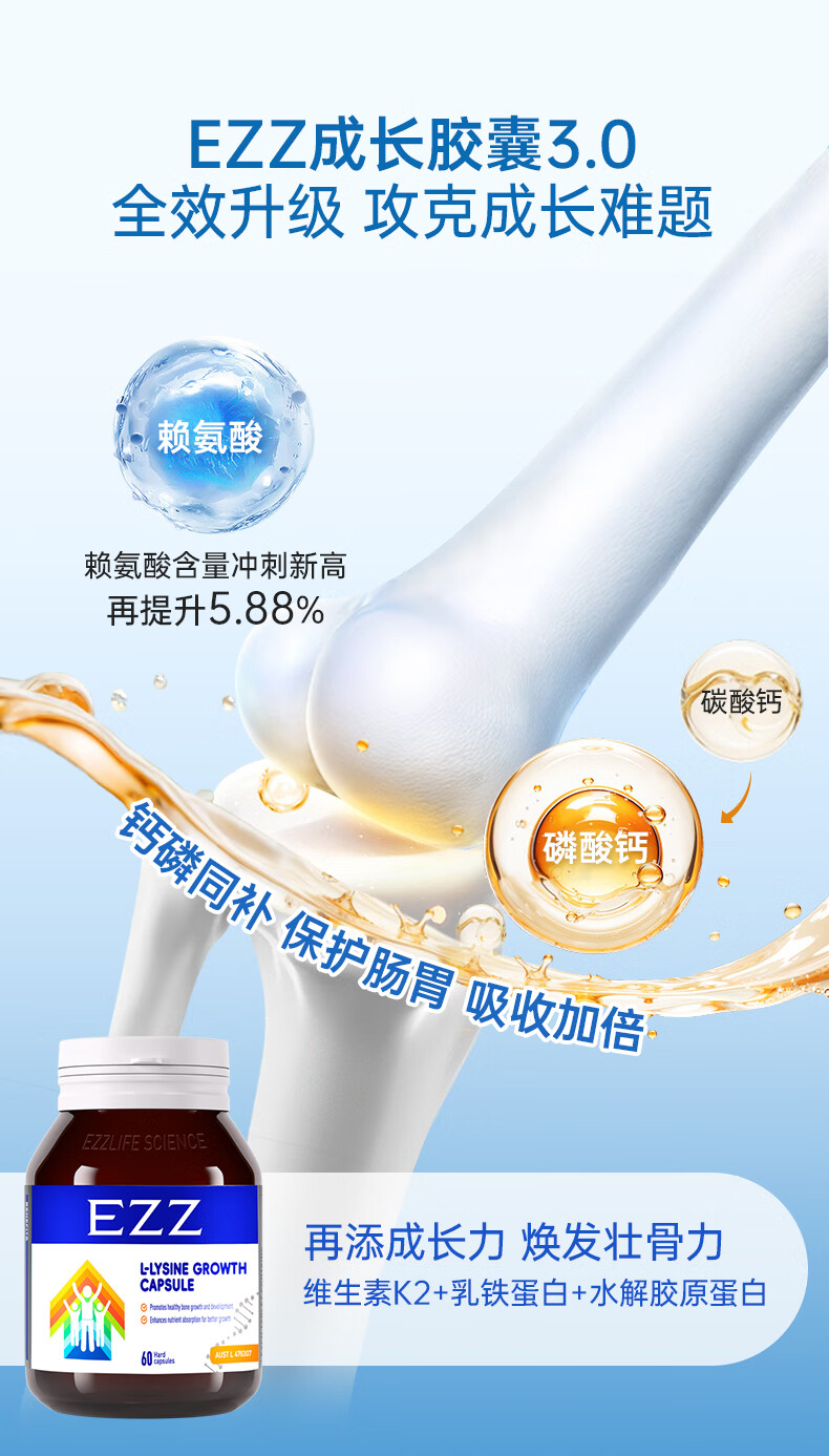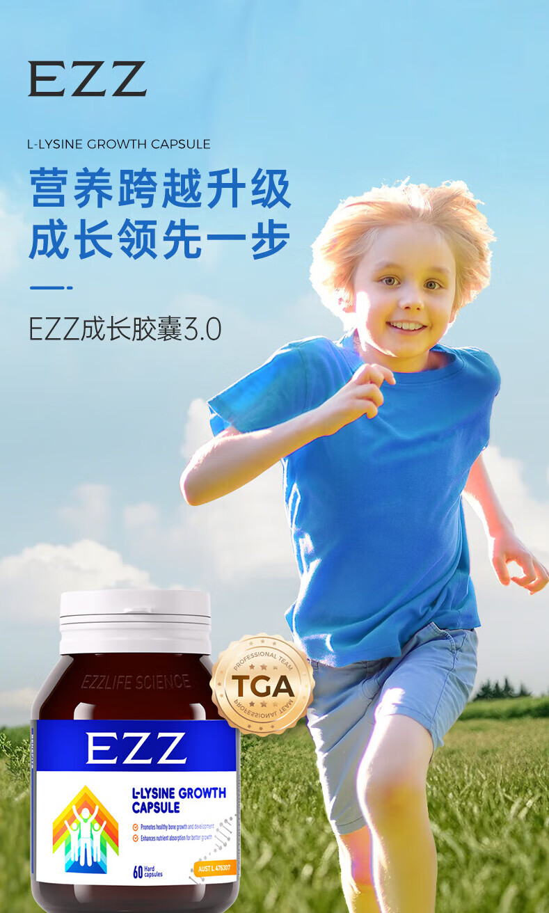 EZZ 赖氨酸成长胶囊3.0 60粒 儿童青少年 澳洲成长丸 抖音同款 6岁+