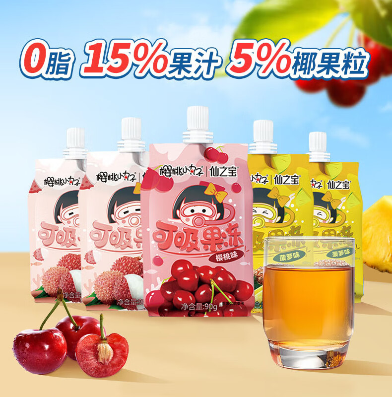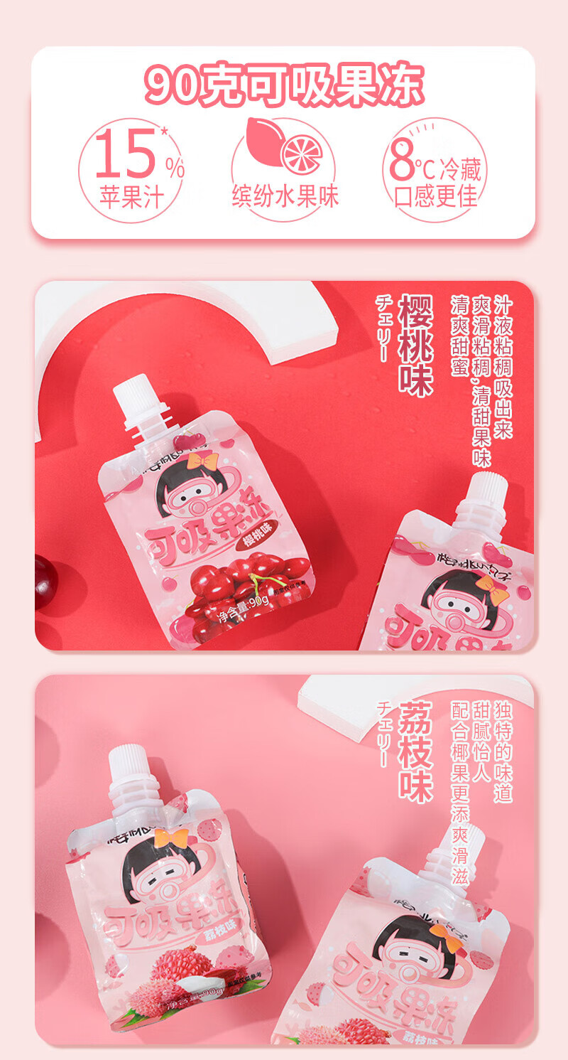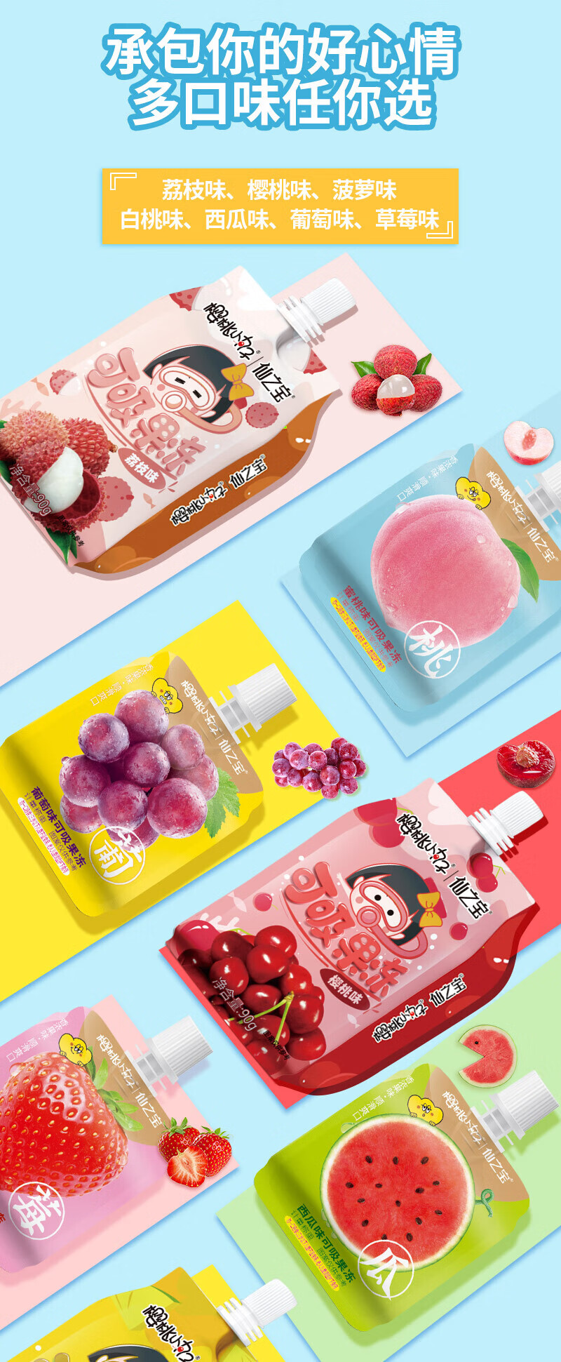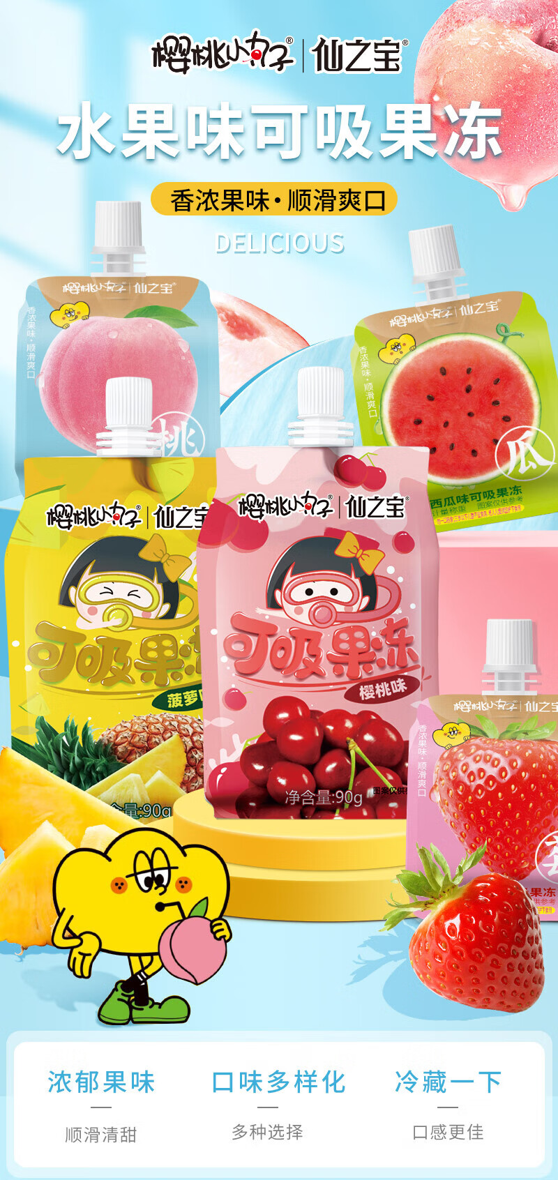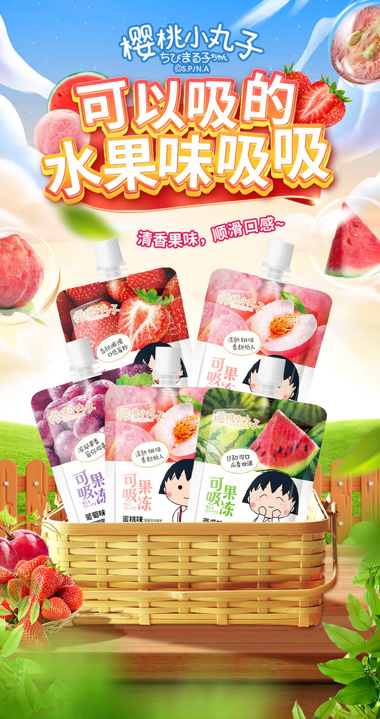 樱桃小丸子可吸吸果冻儿童零食休闲食品0脂健康多口味下午茶小朋友生日礼物 【混合4口味】60g*12袋(720g)