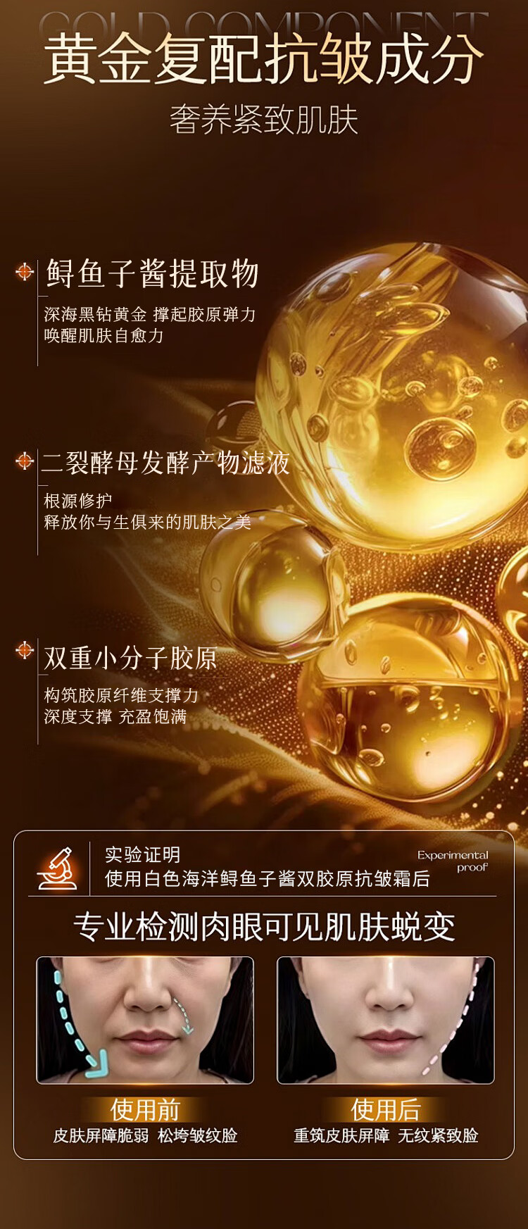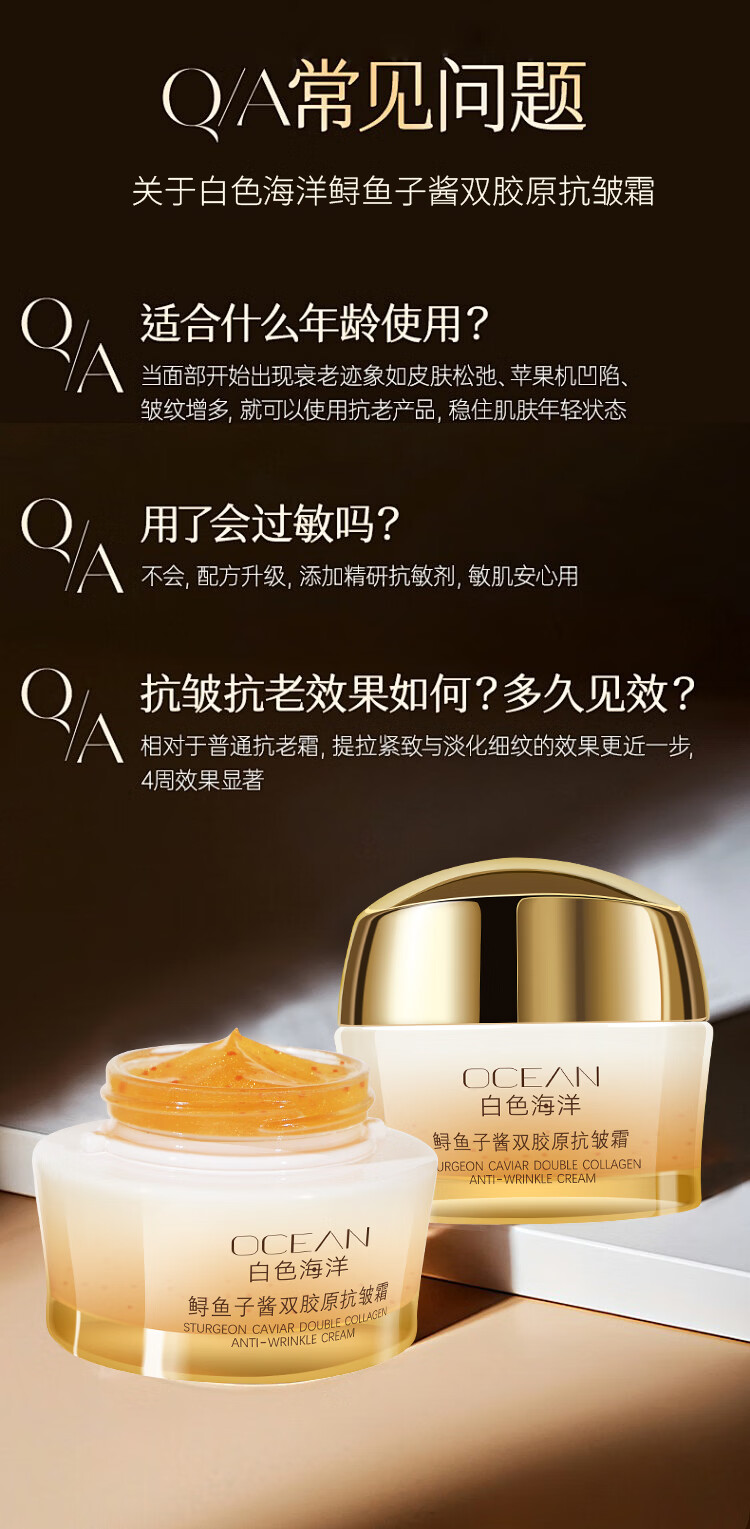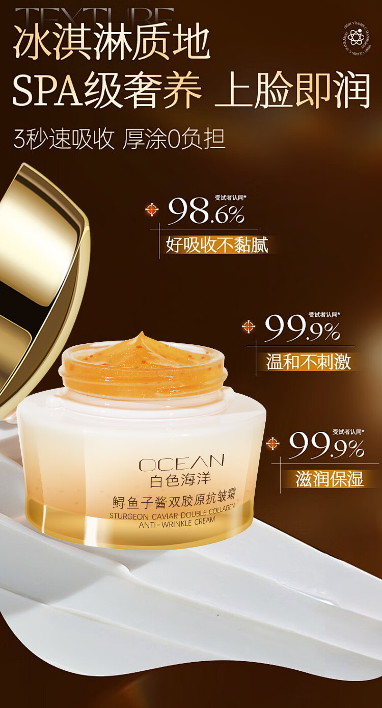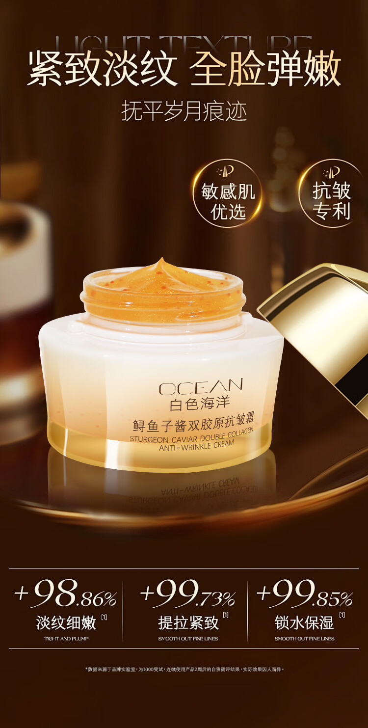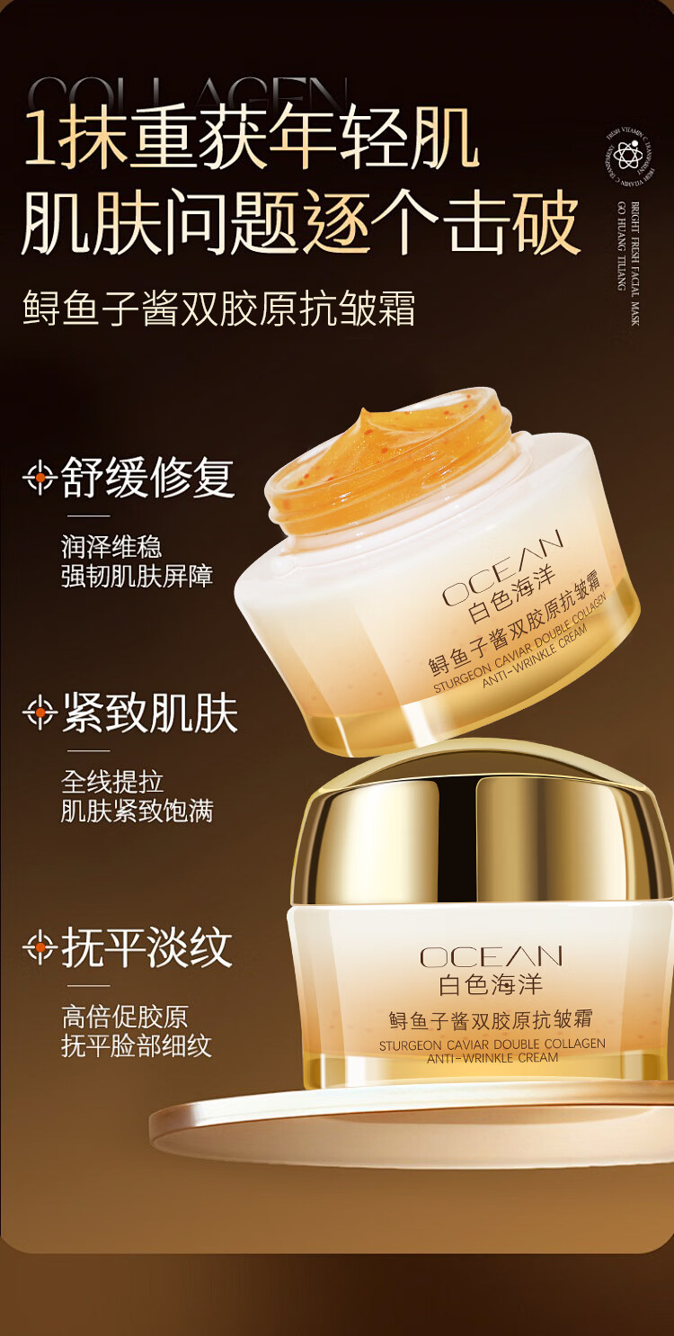 白色海洋鲟鱼子酱双胶原抗皱紧致精华面霜滋乳膏补水保湿面霜贵妇膏50g
