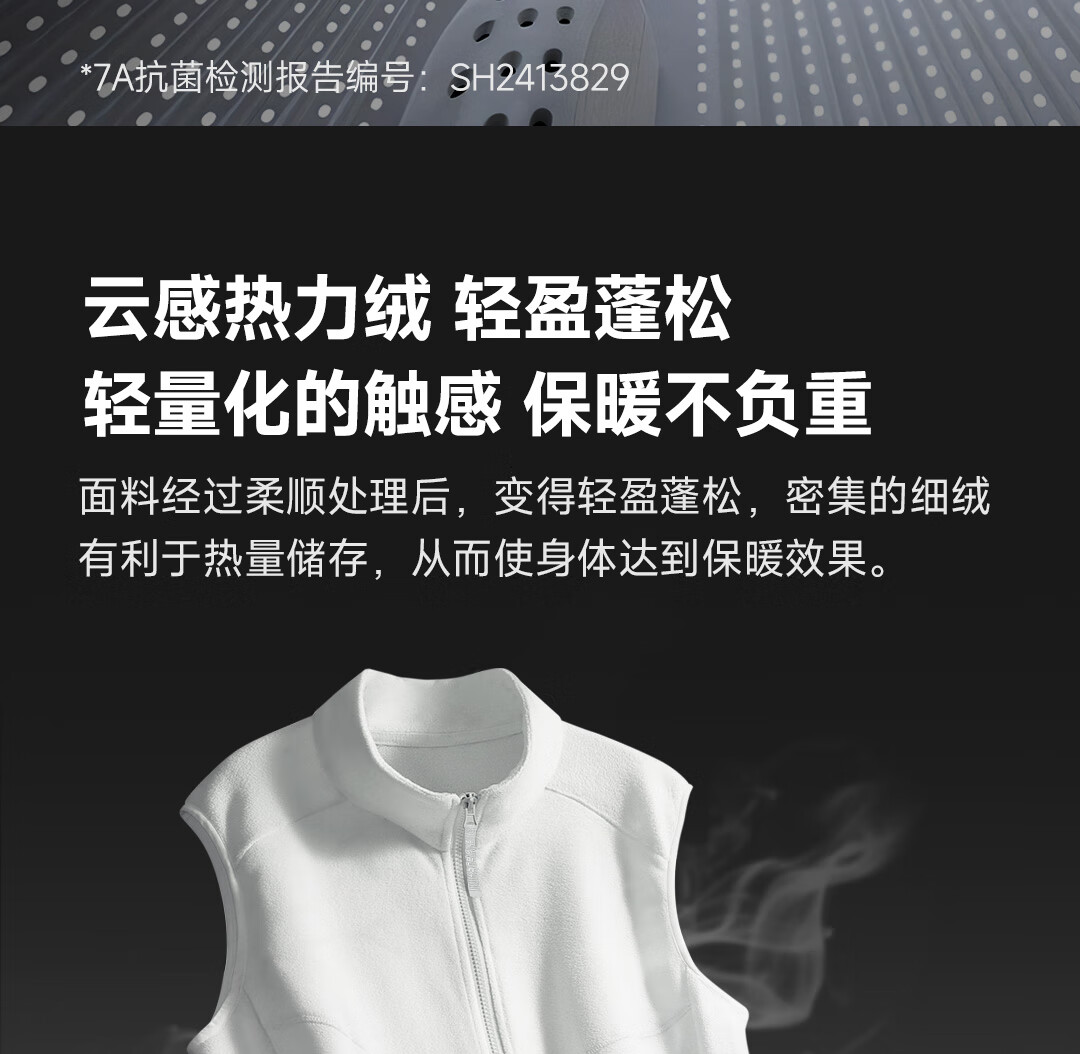 素湃云感热力绒马甲抓绒保暖背心立领男女秋冬无袖外套 暮云灰 M