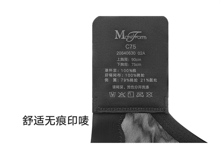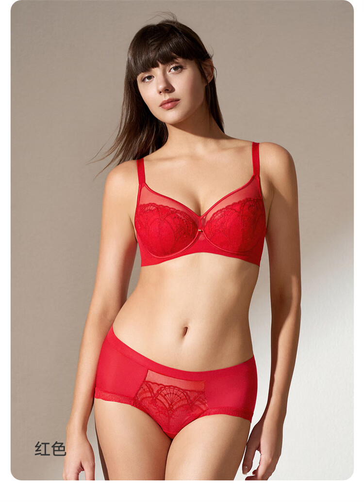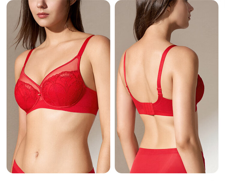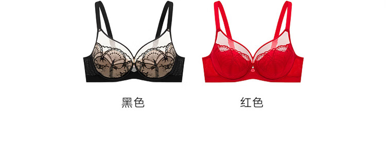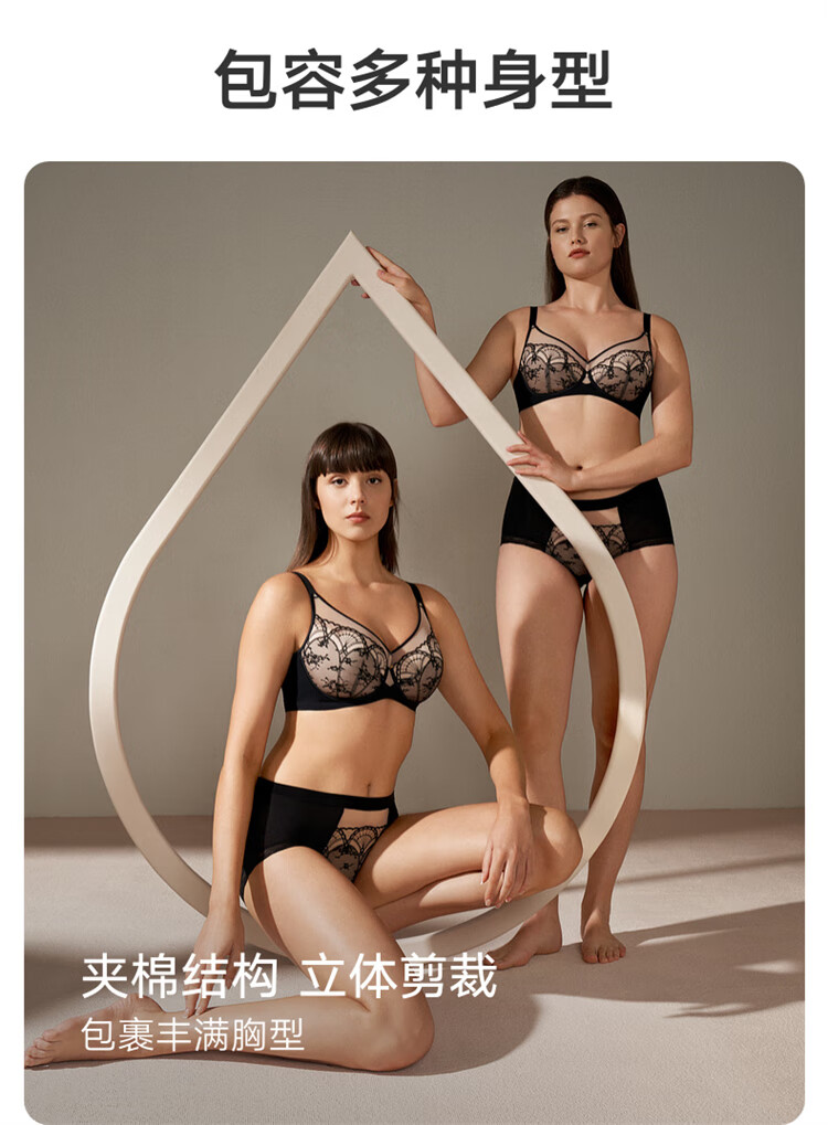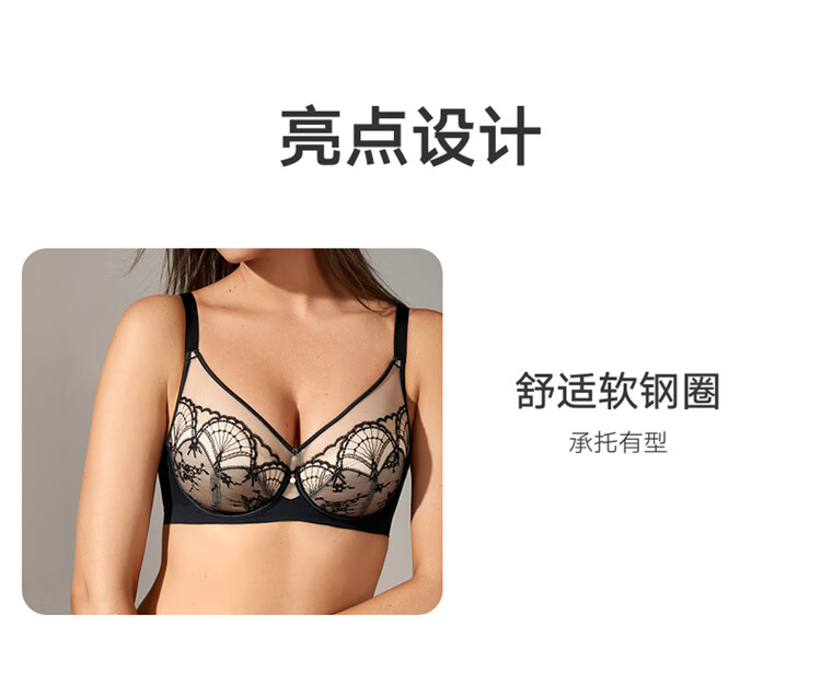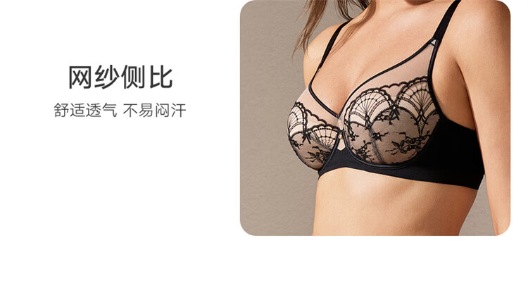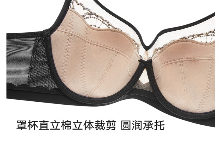 曼妮芬曼妮芬女士轻薄大胸显小文胸大杯防凸点内衣性感刺绣胸罩