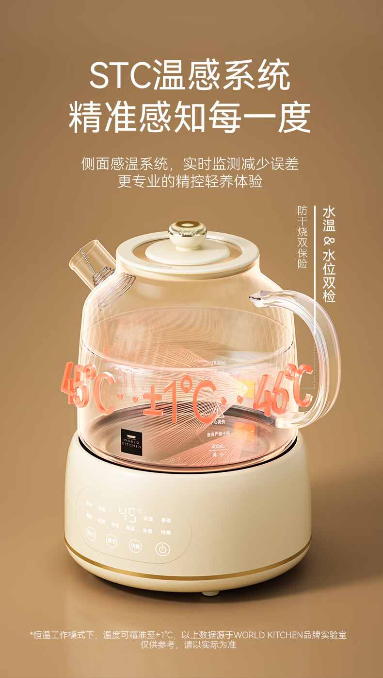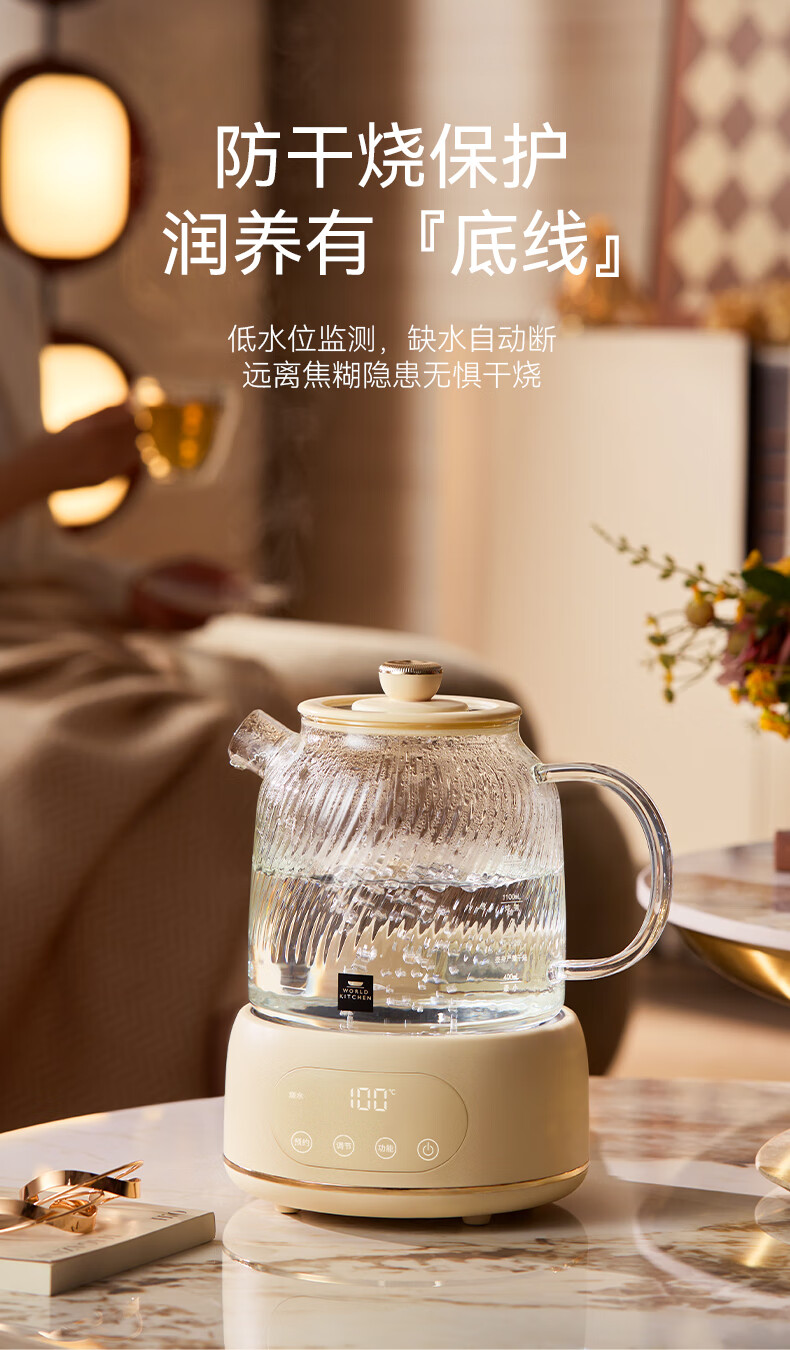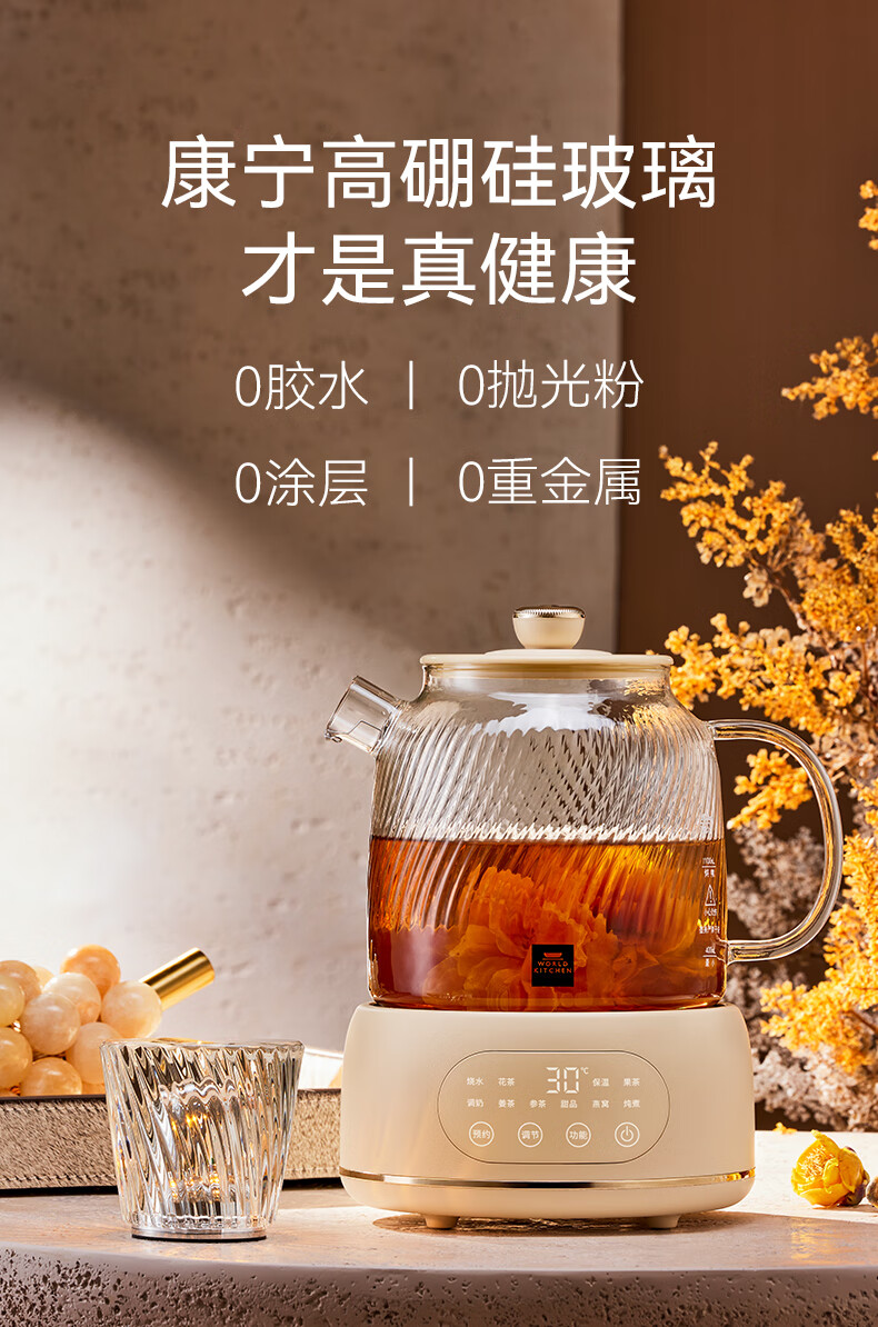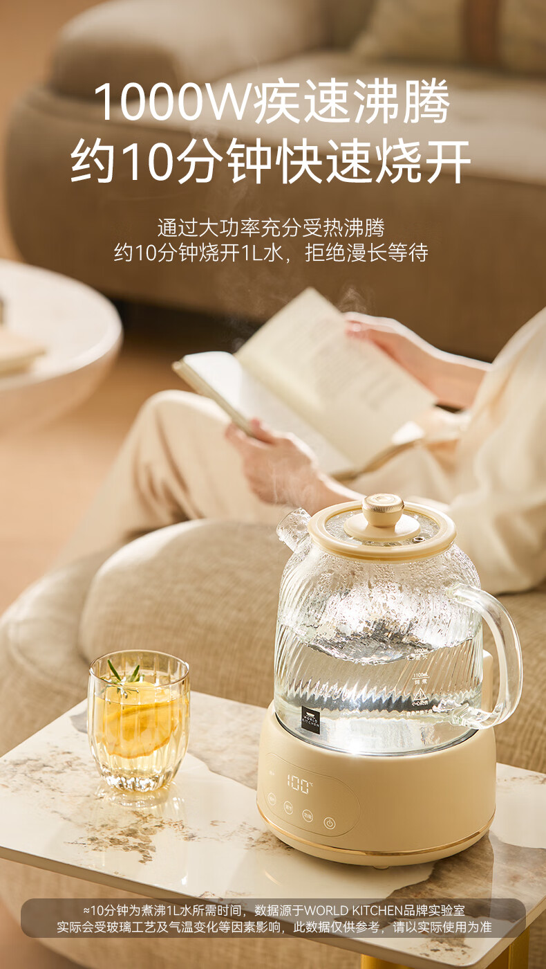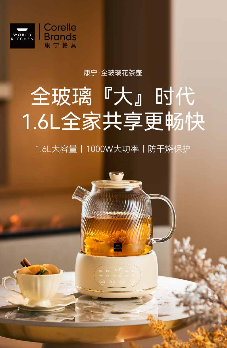 World Kitchen美国康宁全玻璃养生壶恒温壶烧水壶热水壶家用多功能办公室煮茶器煮茶壶电热水壶1.6L(基础款)