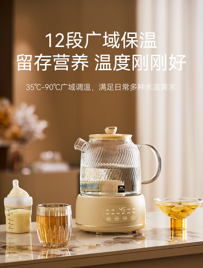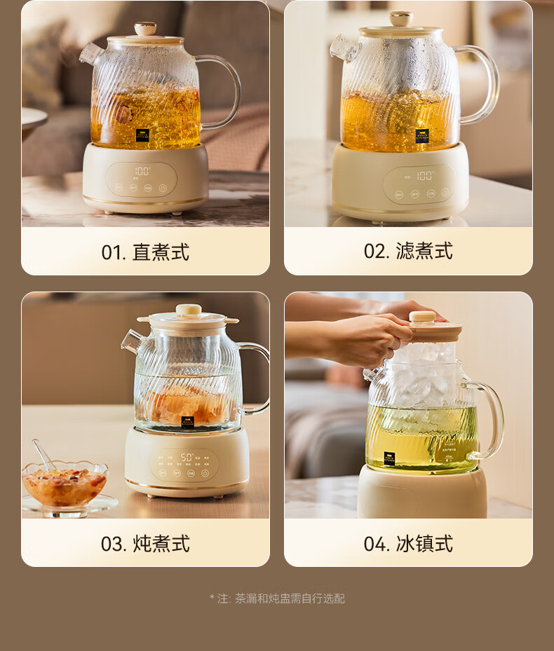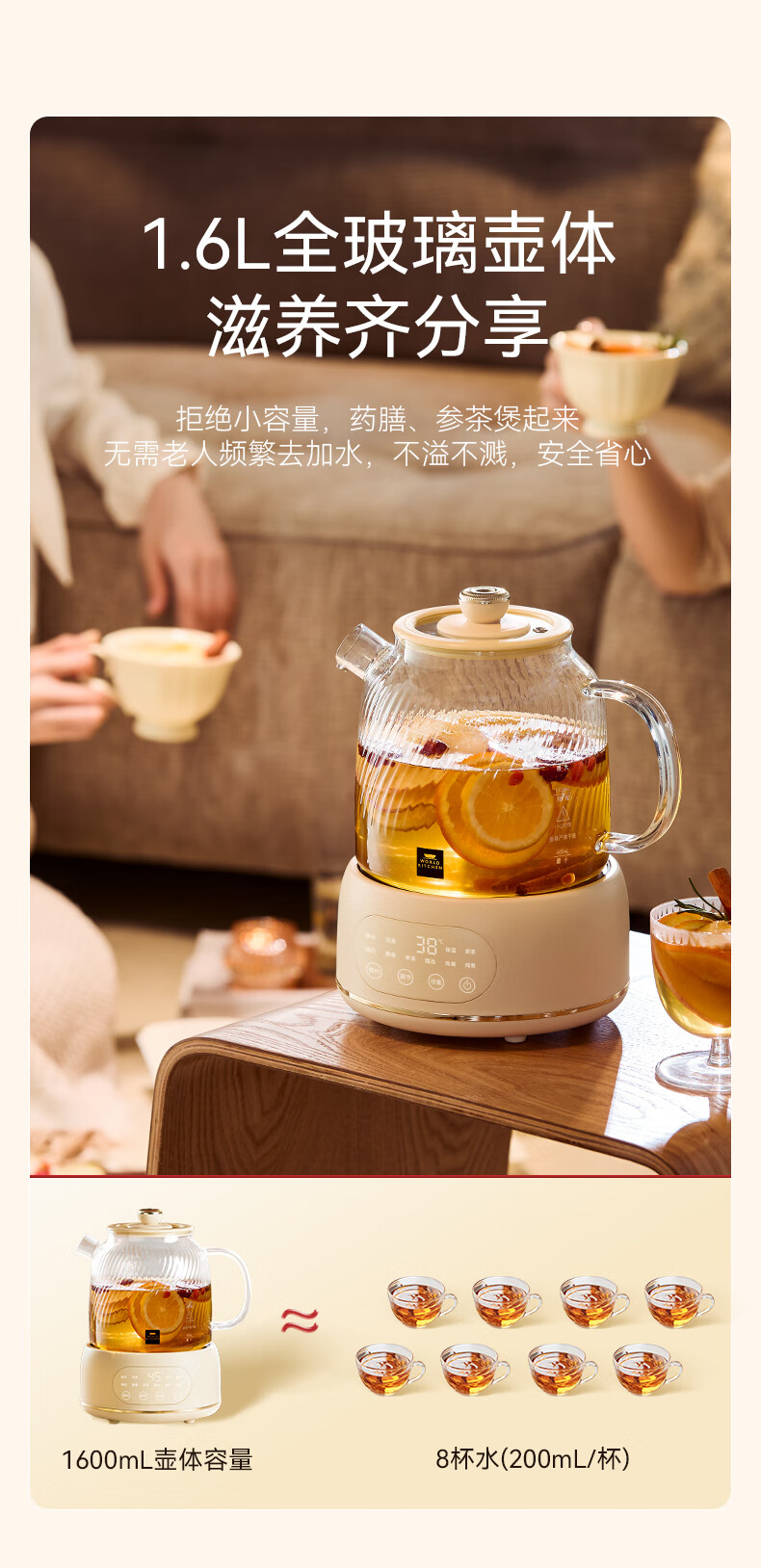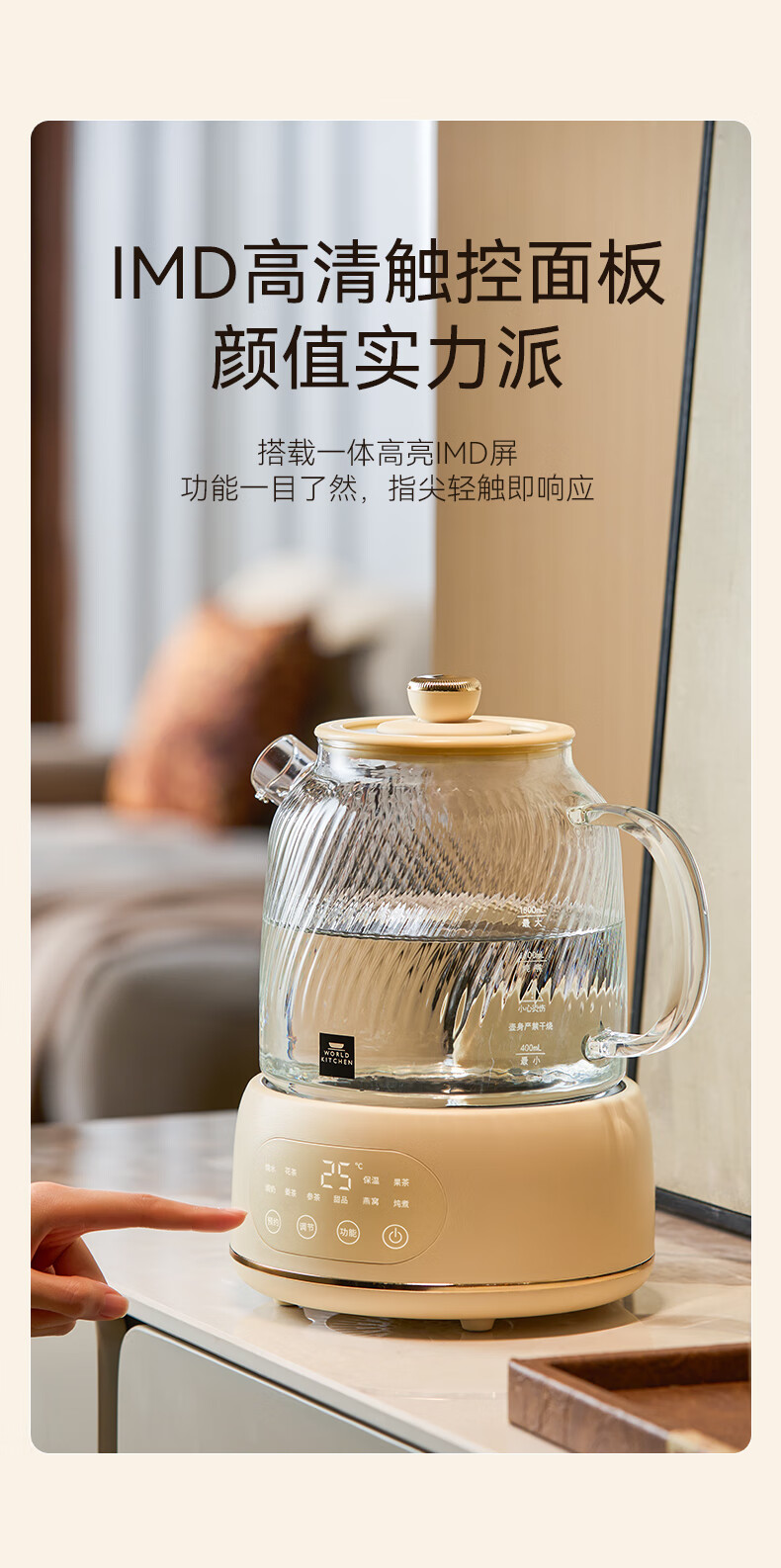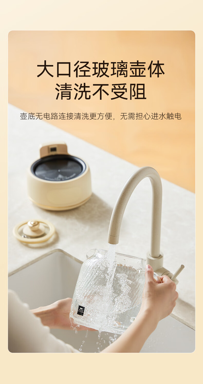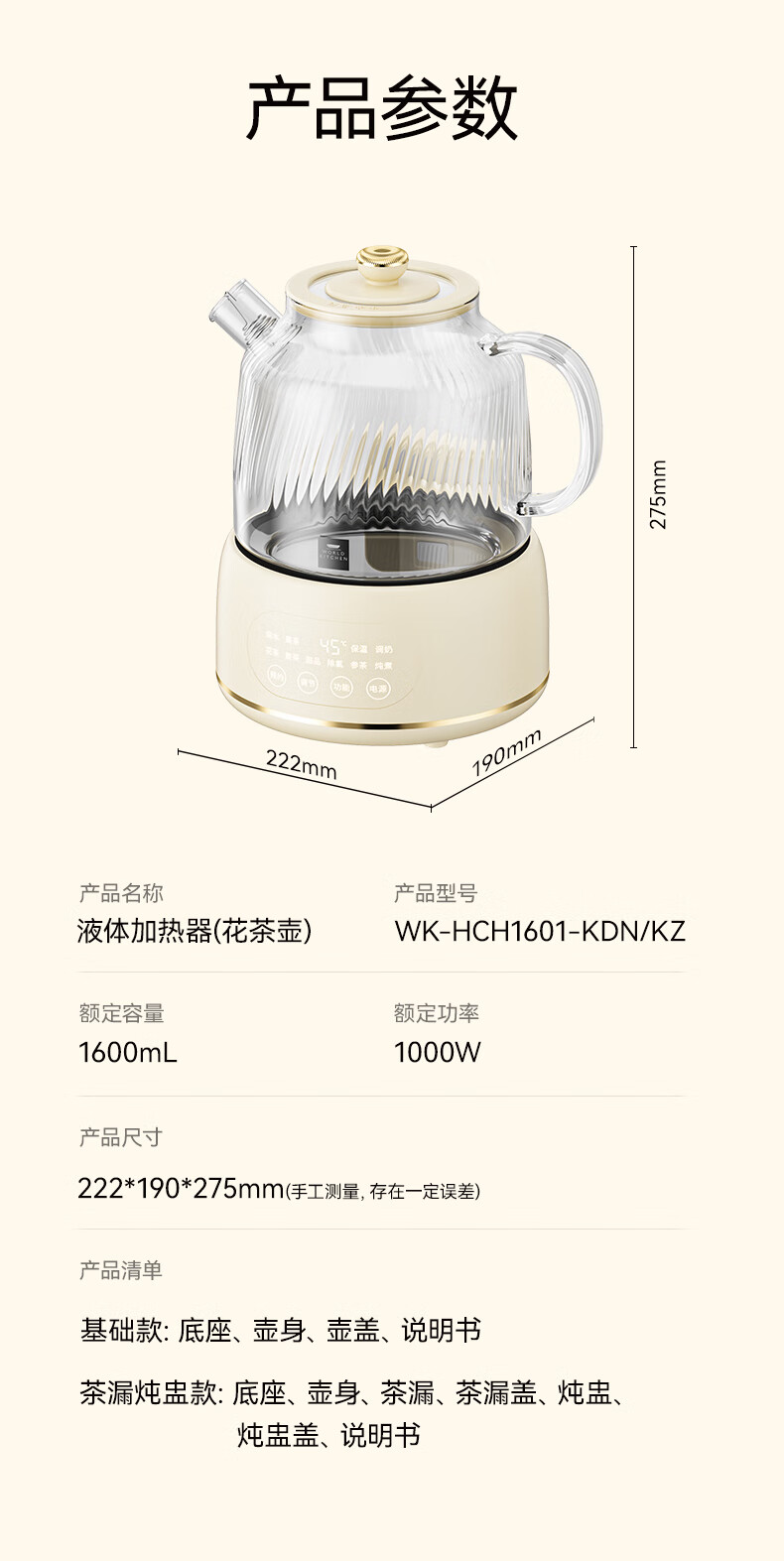 World Kitchen美国康宁全玻璃养生壶恒温壶烧水壶热水壶家用多功能办公室煮茶器煮茶壶电热水壶1.6L(基础款)