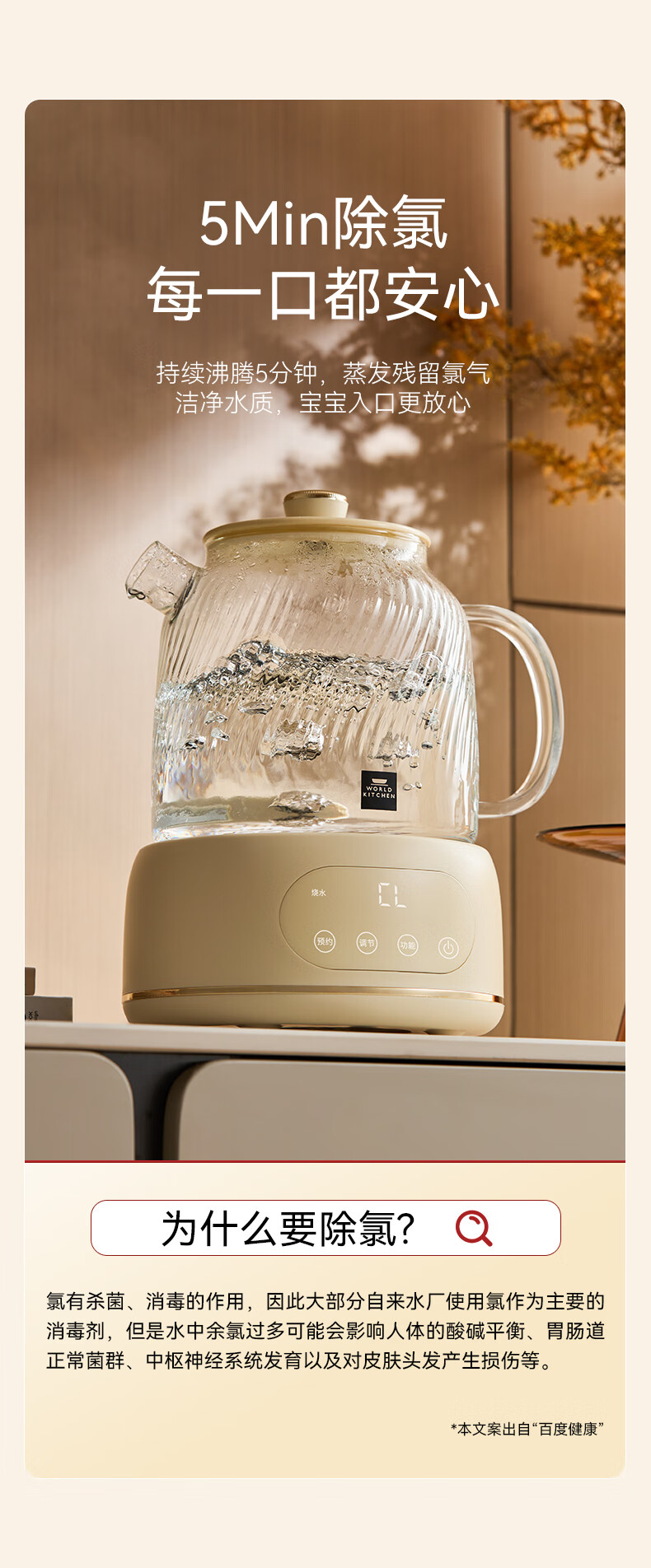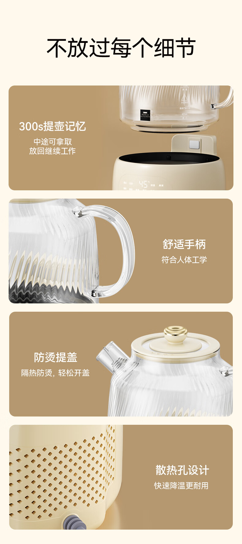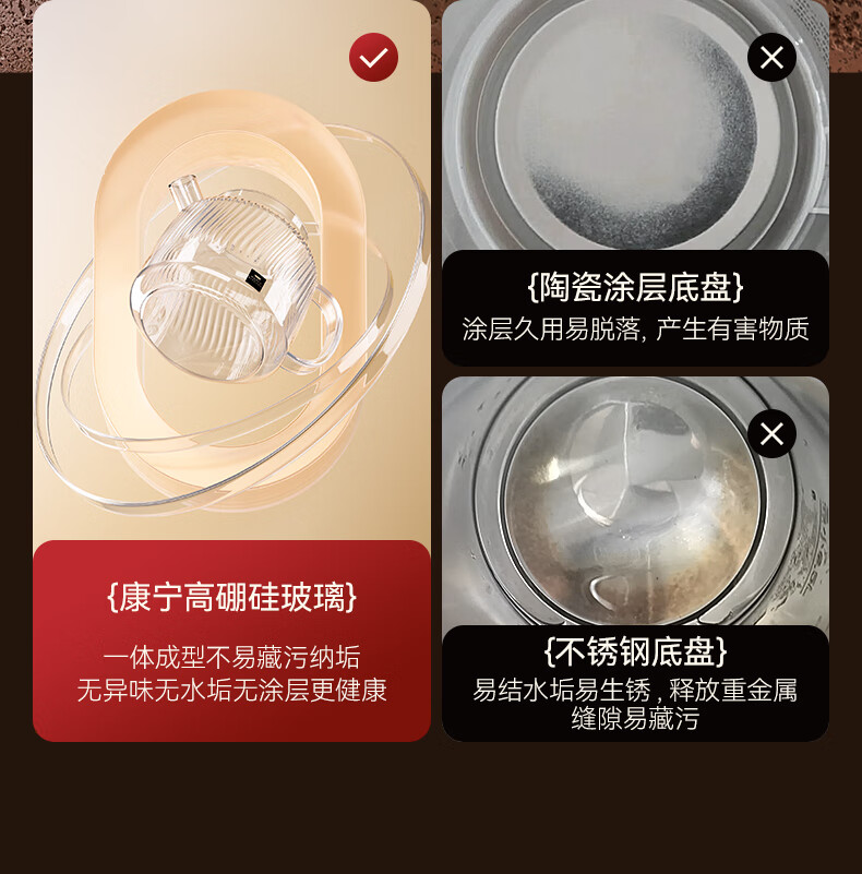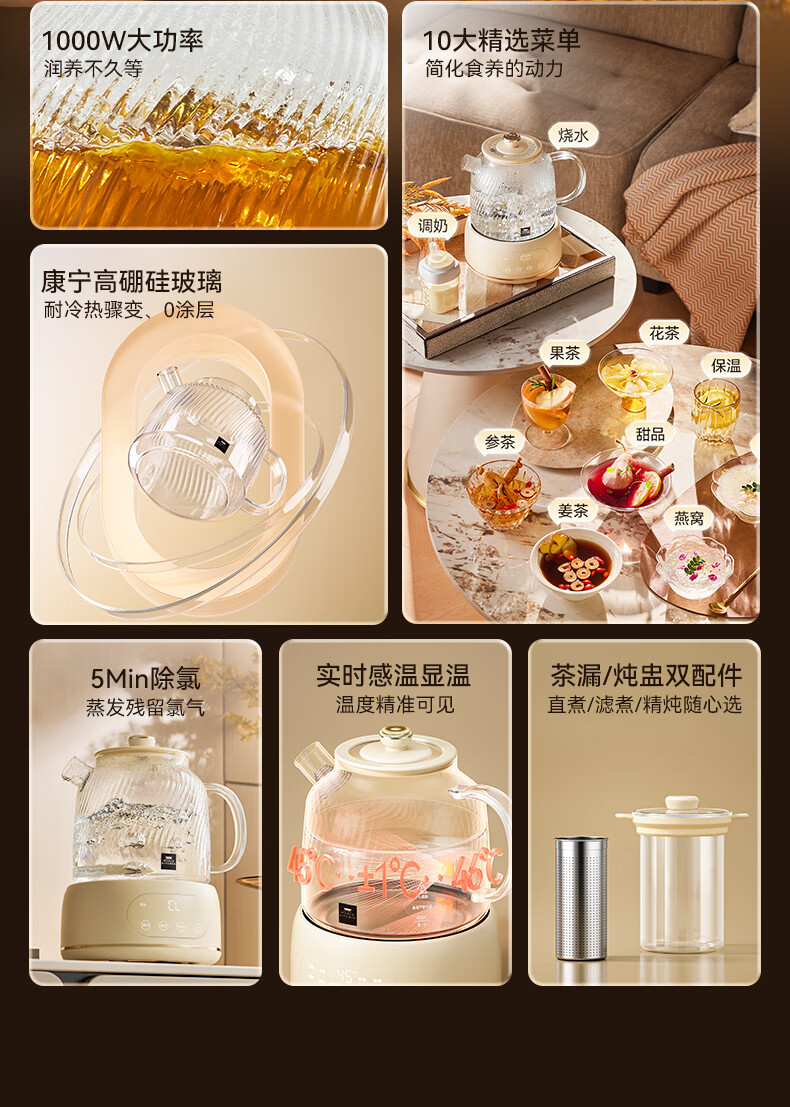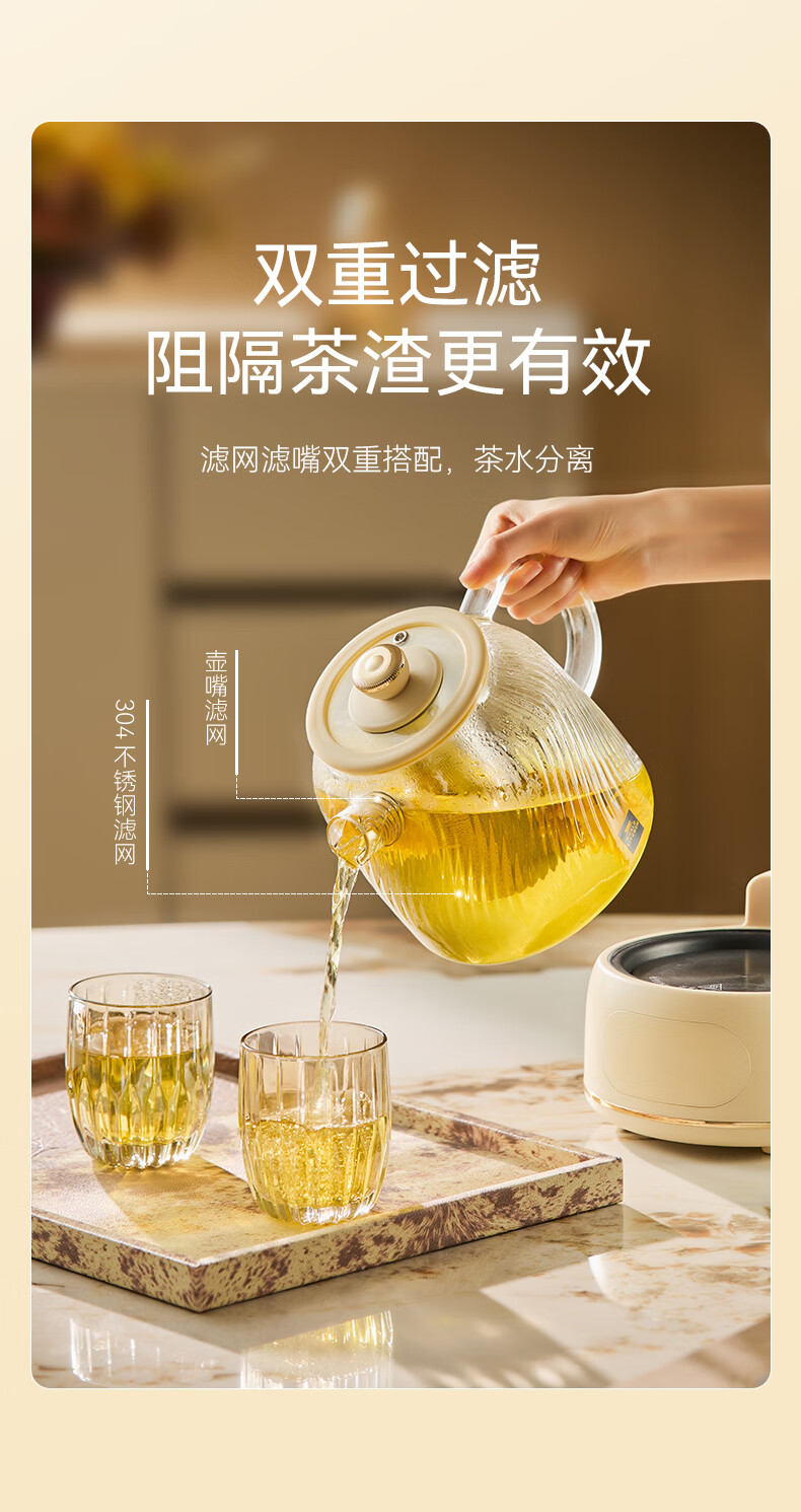World Kitchen美国康宁全玻璃养生壶恒温壶烧水壶热水壶家用多功能办公室煮茶器煮茶壶电热水壶1.6L(基础款)