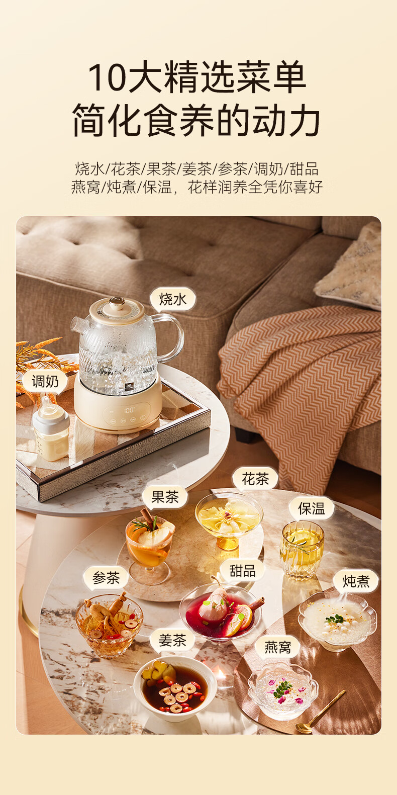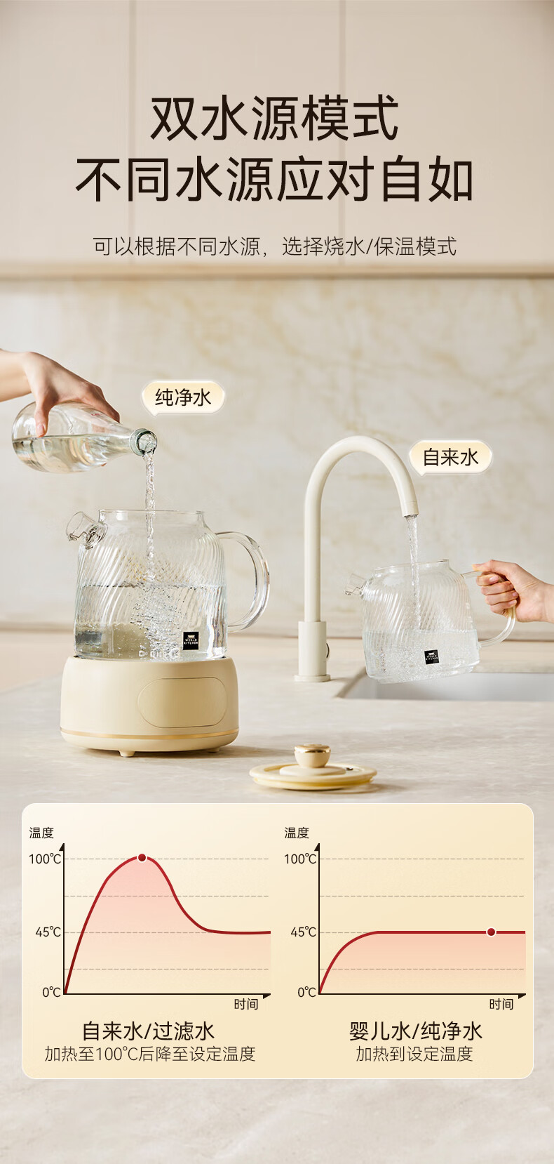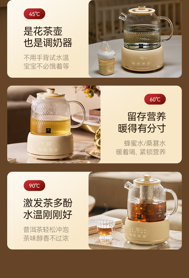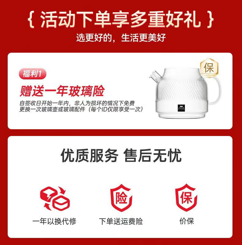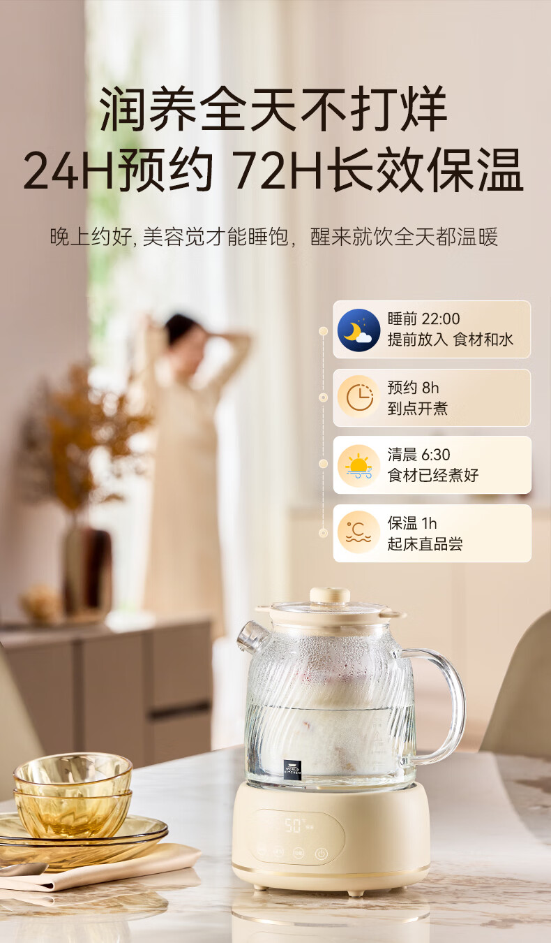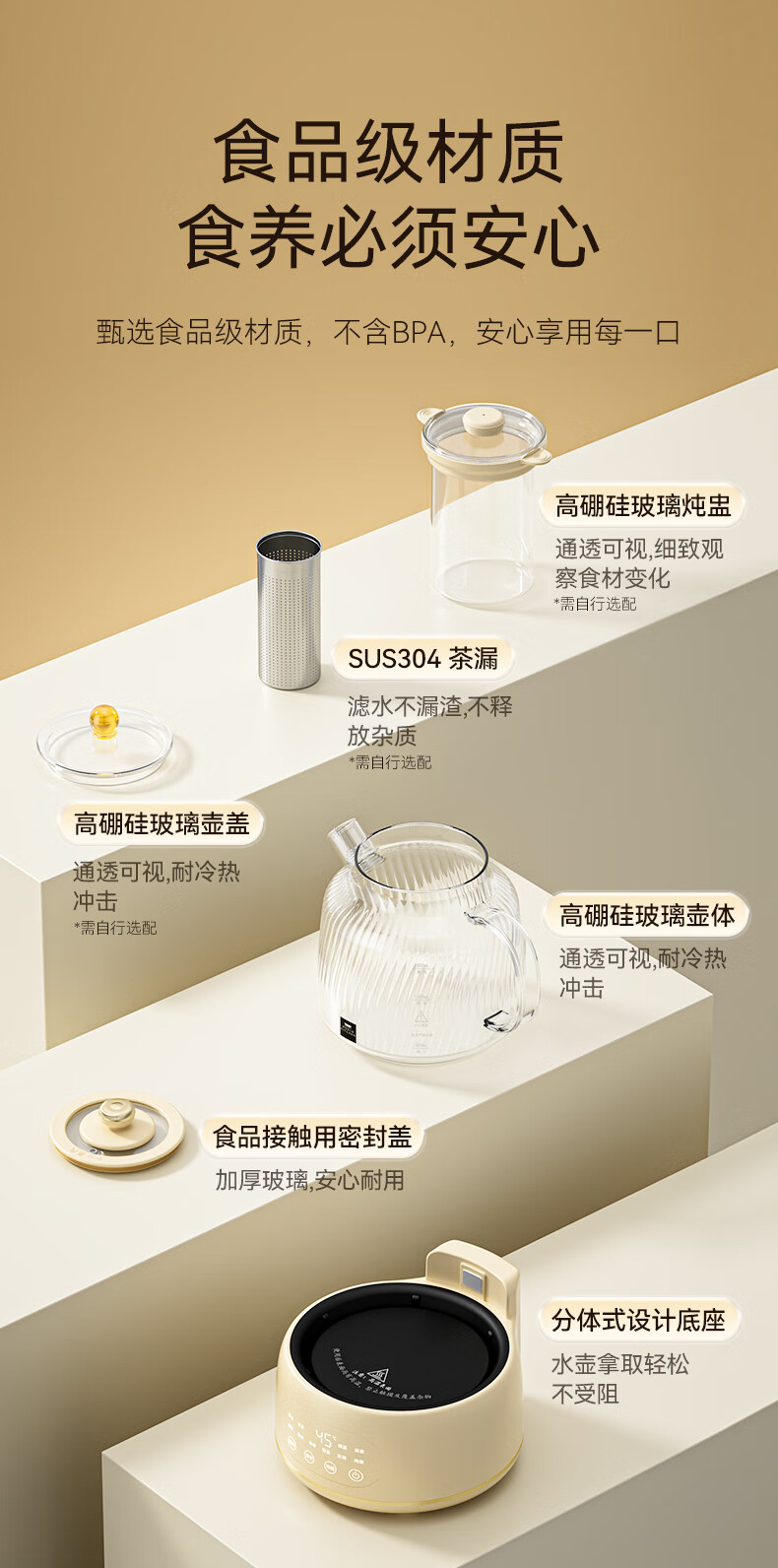 World Kitchen美国康宁全玻璃养生壶恒温壶烧水壶热水壶家用多功能办公室煮茶器煮茶壶电热水壶1.6L(基础款)